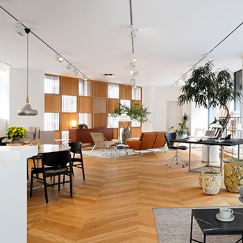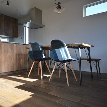 落ち着いた色味が人気のウォールナットをフレンチヘリンボーンに仕立てたフローリングです。 張り方を一工夫することで、プライベートな空間に華やかさをプラス。