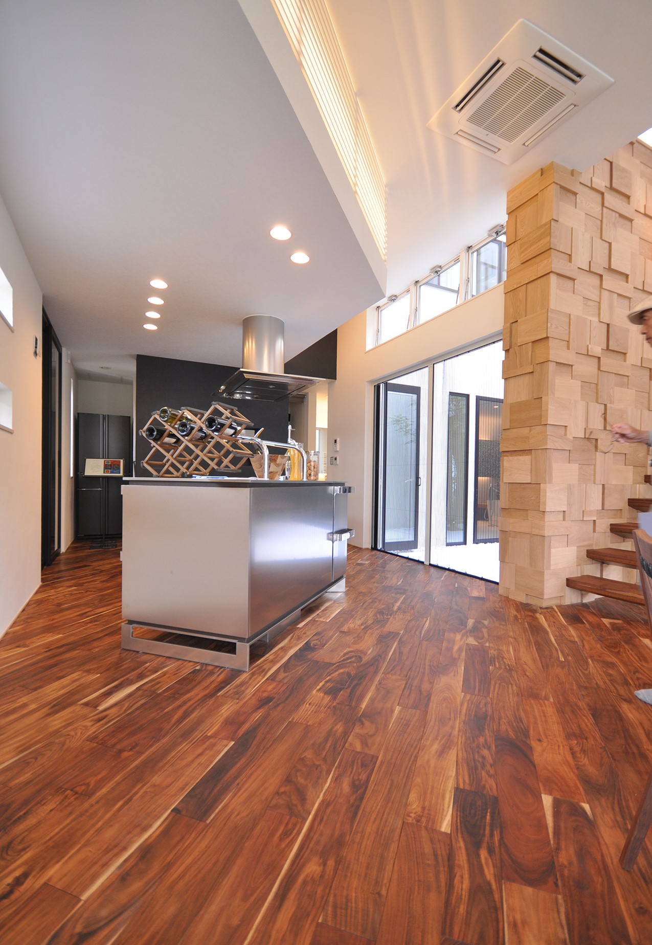LDK部分に国産のクリを、階段部分にはクリの雰囲気に合わせてアッシュをご採用いただきました。クリの木目の美しさを存分に味わえます。