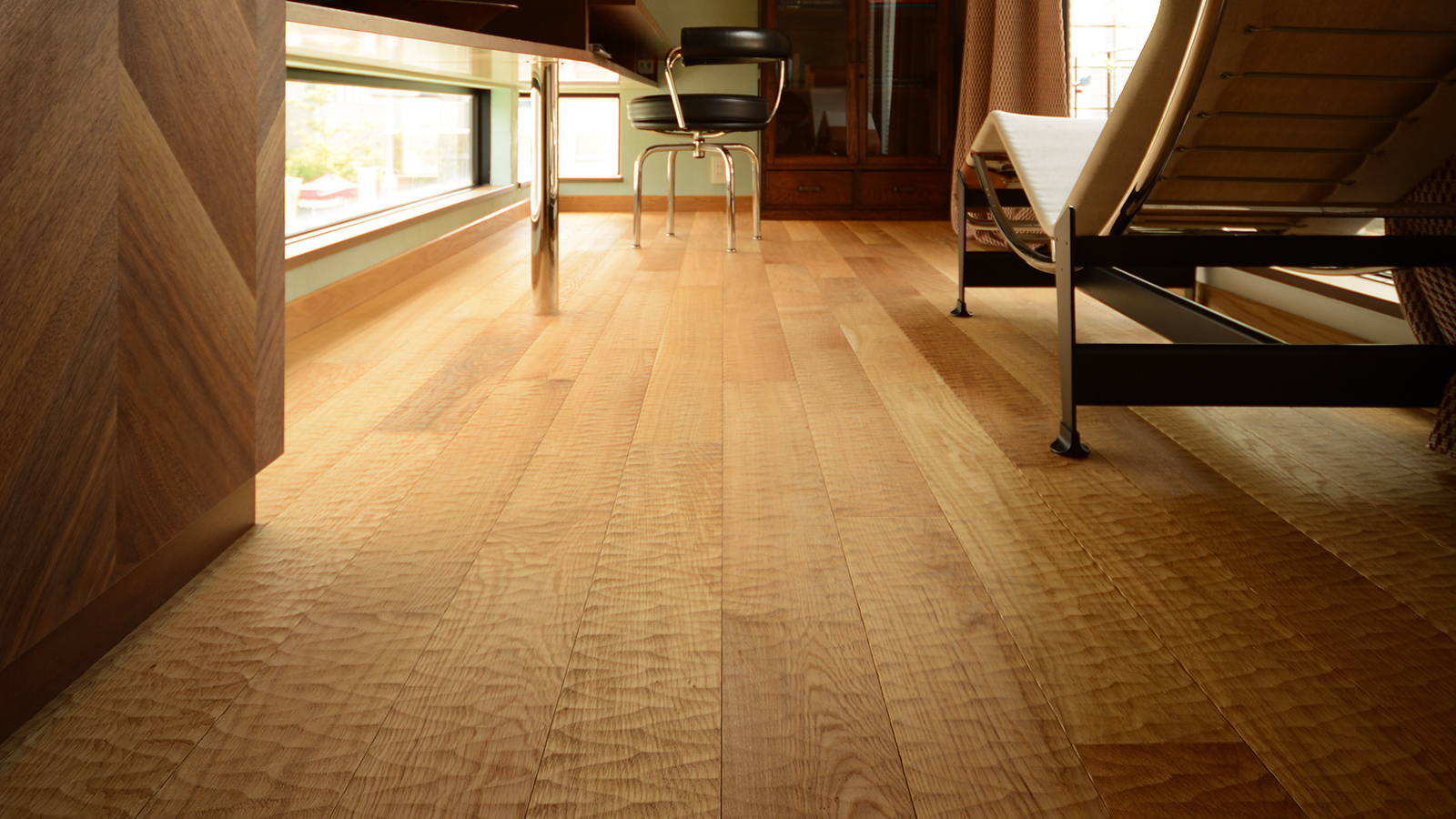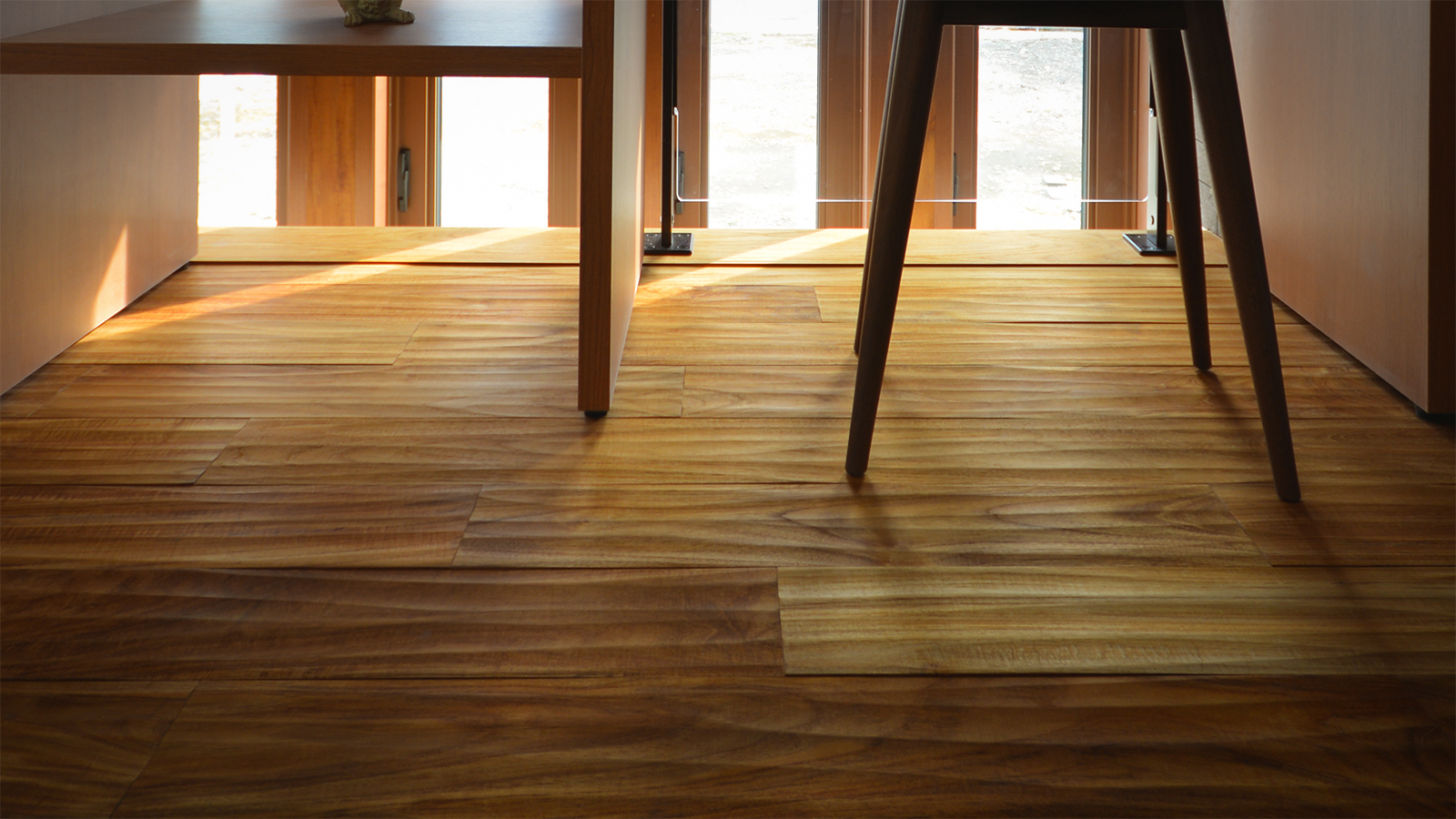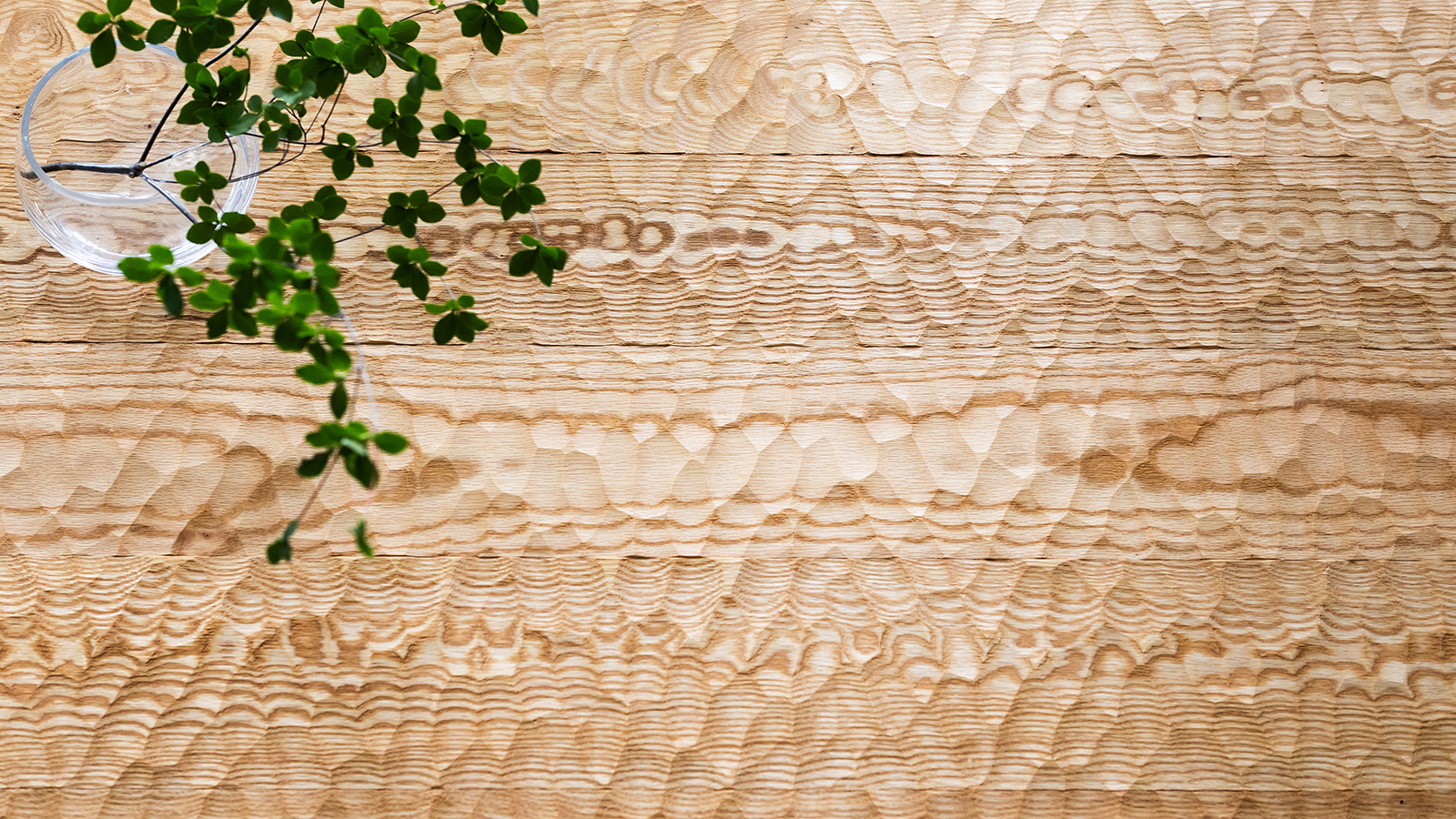 そんな表面加工は、さわり心地も抜群。ボコボコと踏み応えのあるものや、さらっとやさしい質感のものなど、まるでテクスチャーのように表情が豊かです。木肌から溢れるぬくもりを、歩いてさわって感じとってみてください。