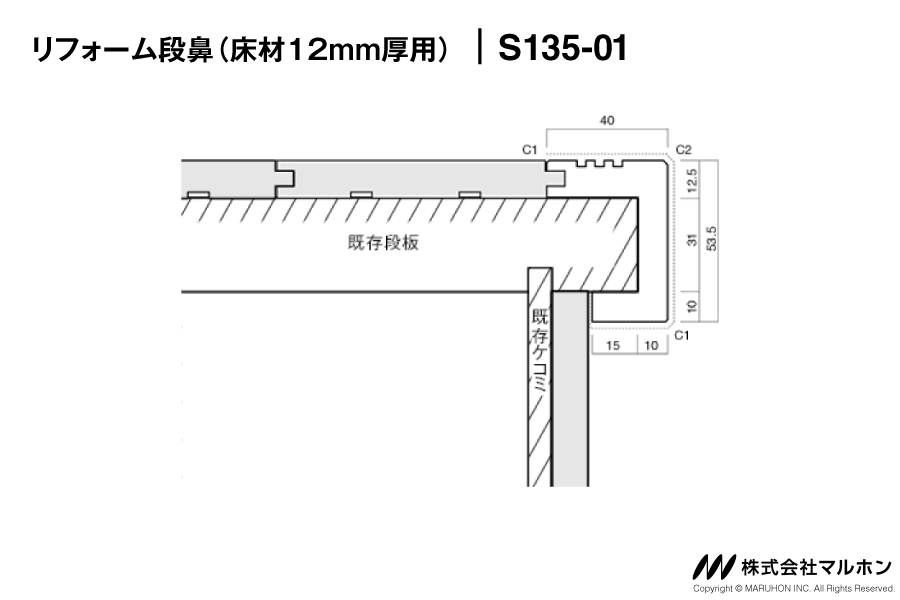 | サイズ(mm) | 床材12mm厚用 40×53.5×1000 |