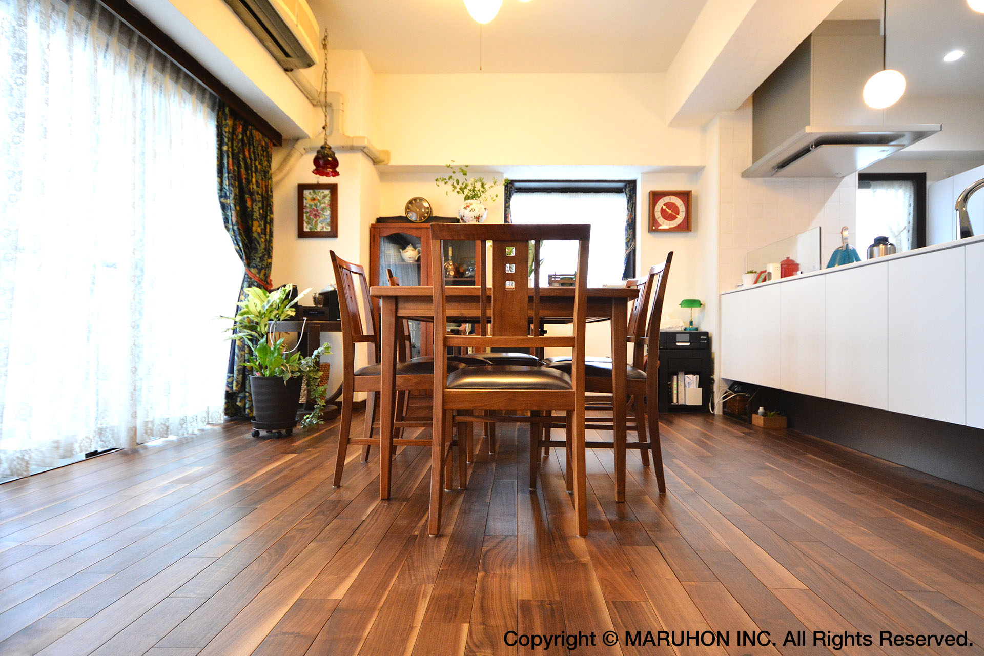 商品名ウォールナット 無垢フローリング キッコウ 130mm巾