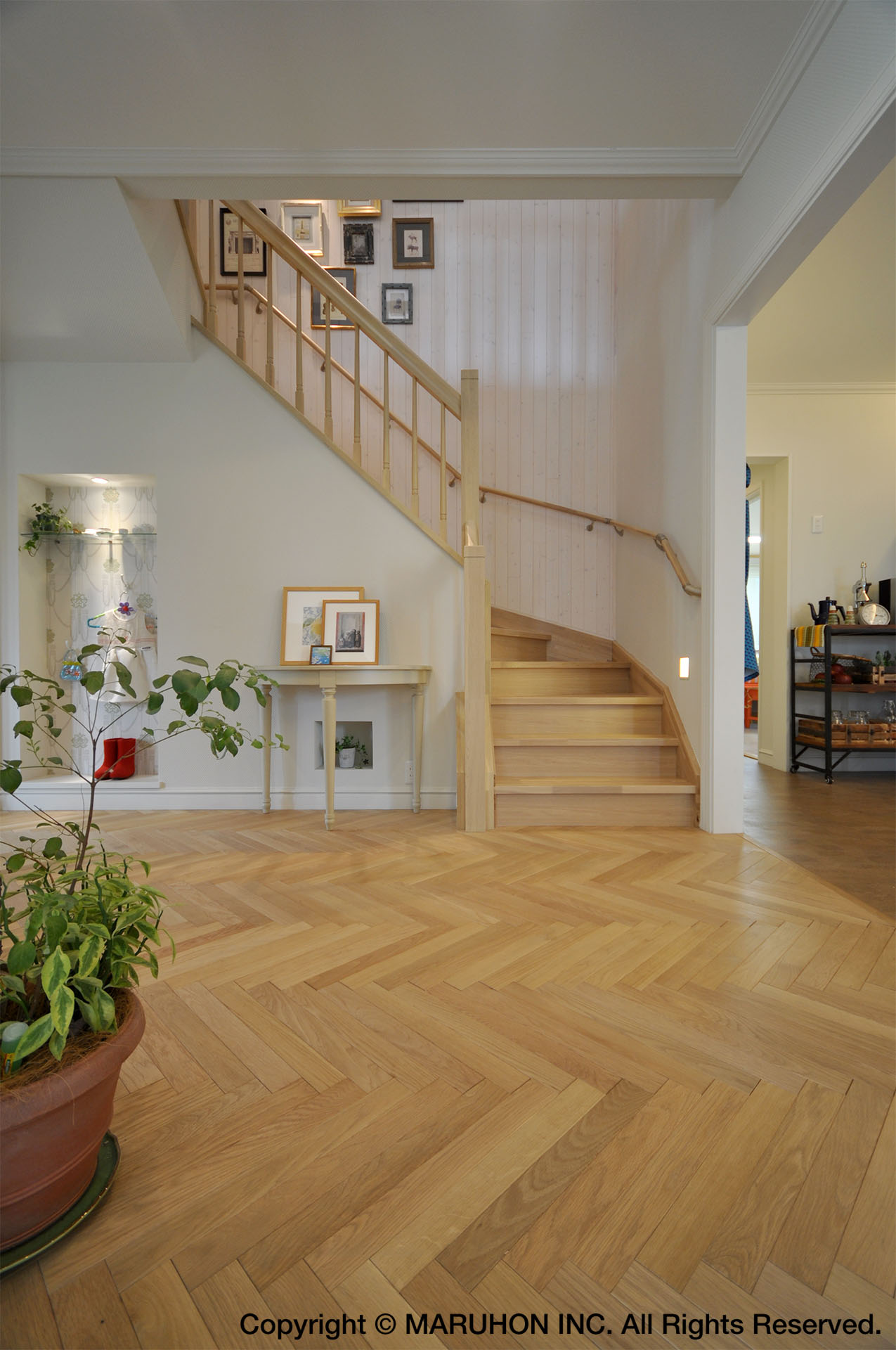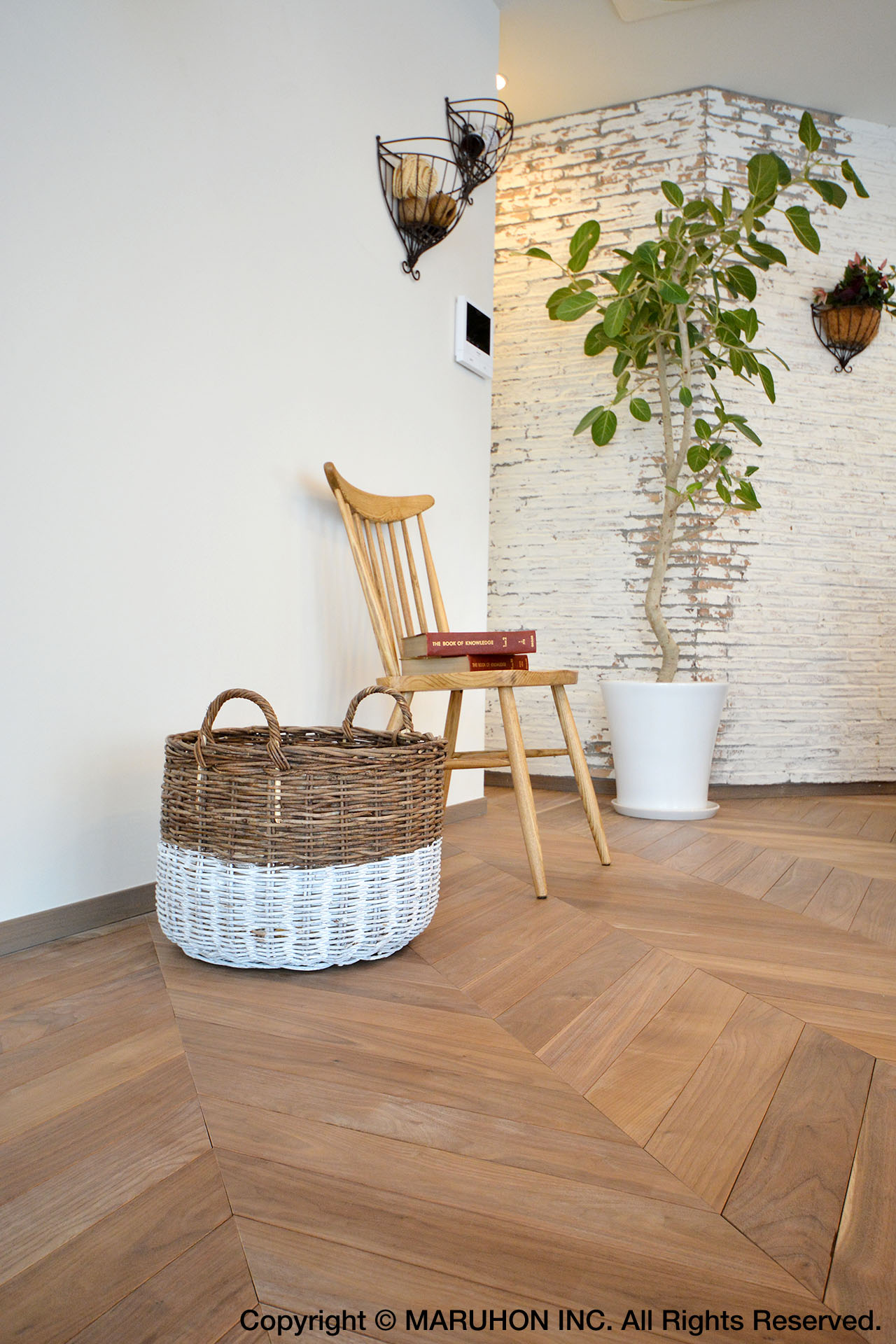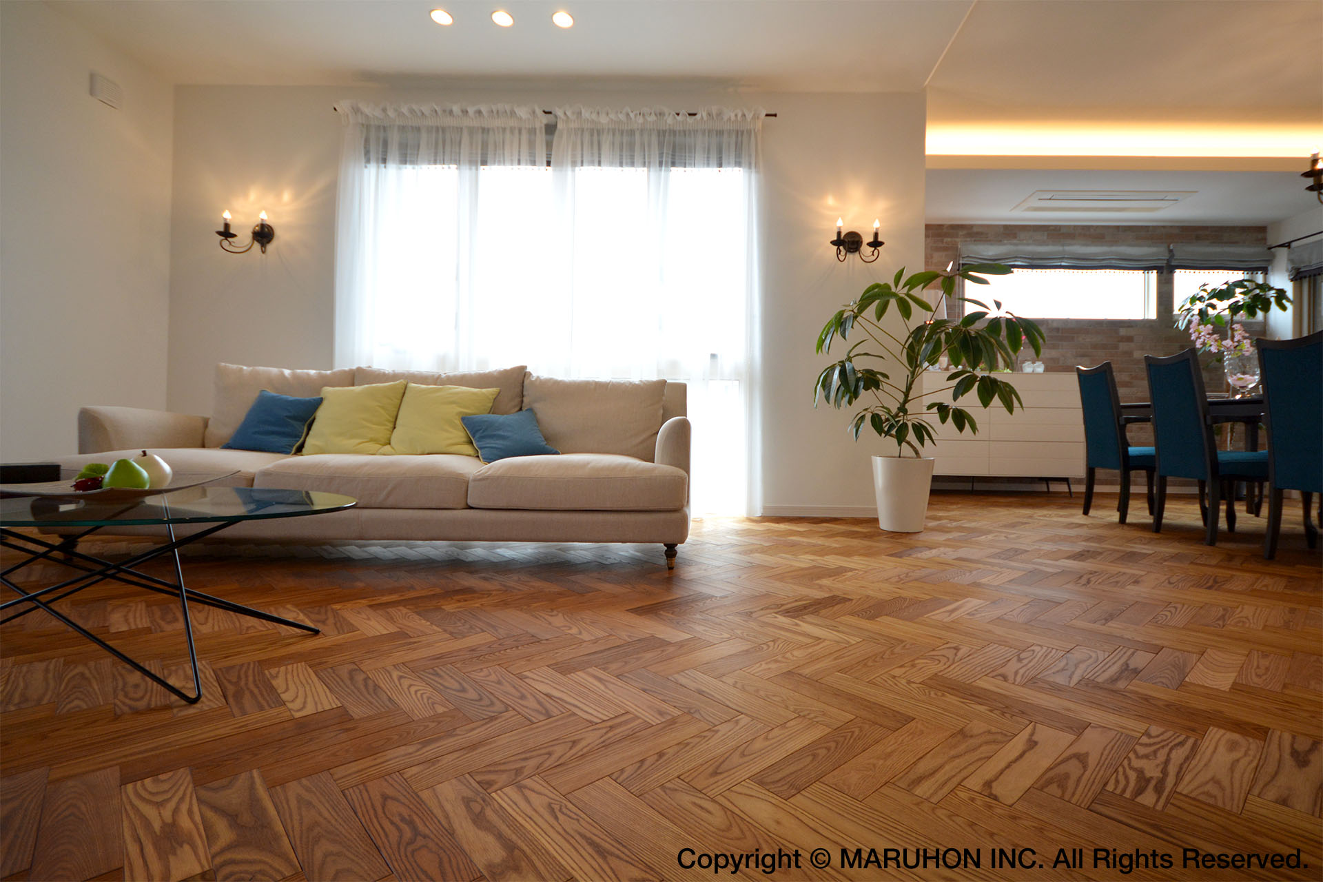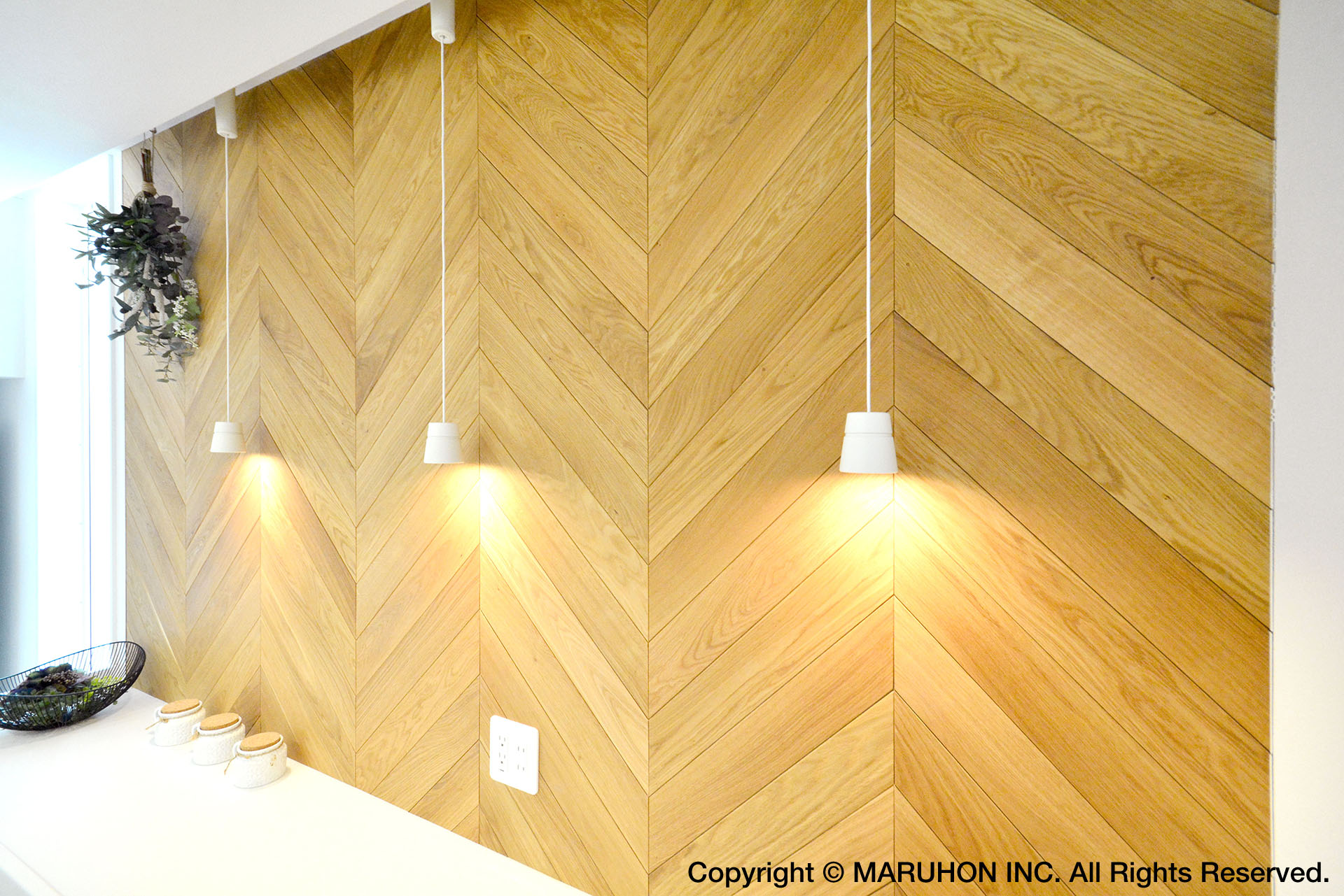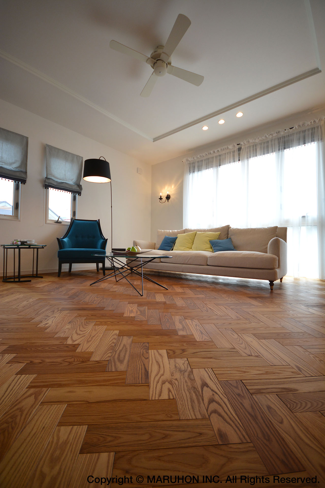 商品名ヨーロピアンオーク 床暖房対応 フレンチヘリンボーン 挽板フローリング 121.2mm巾 右用