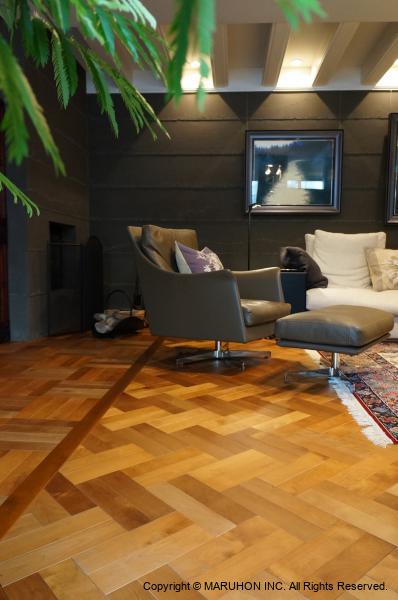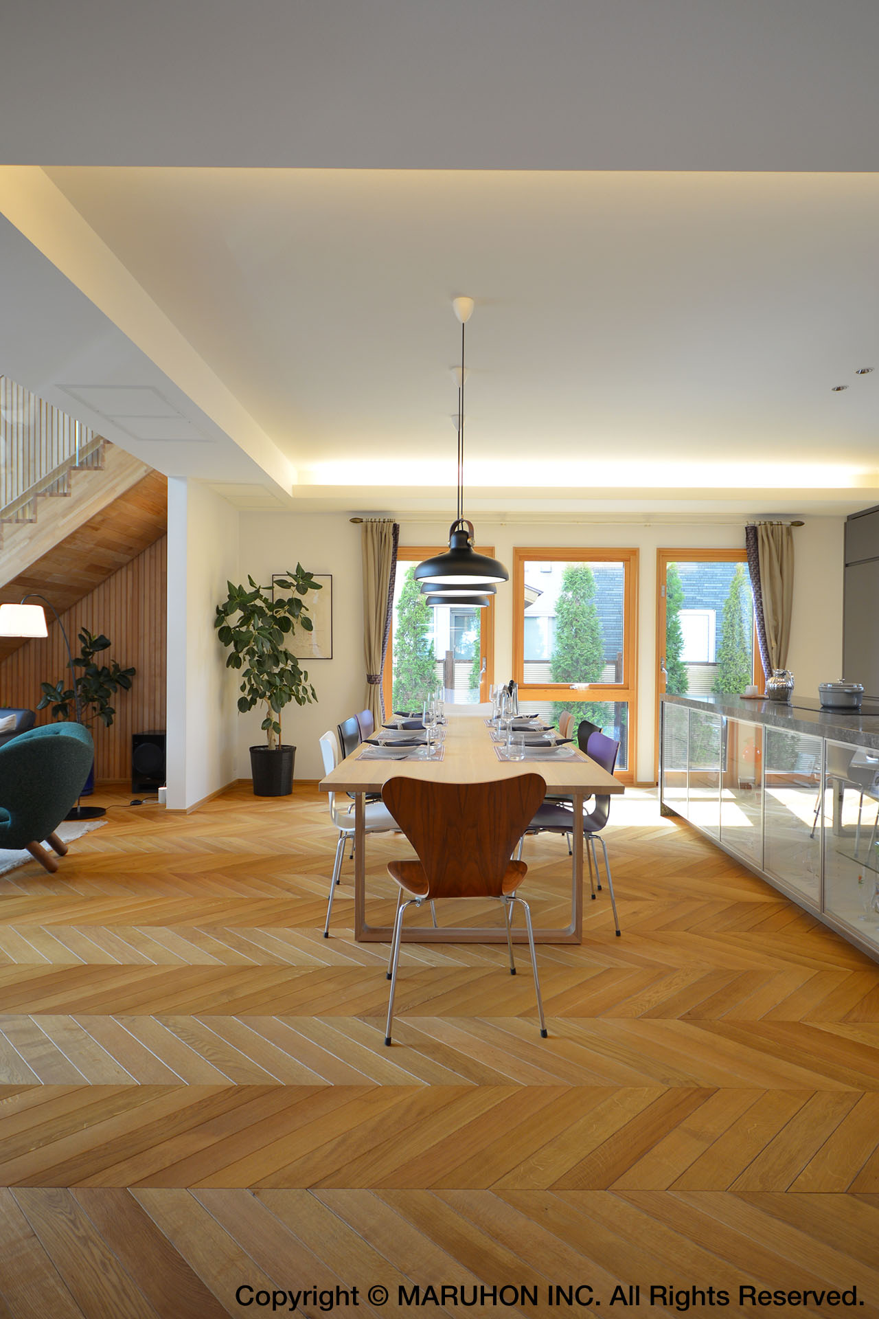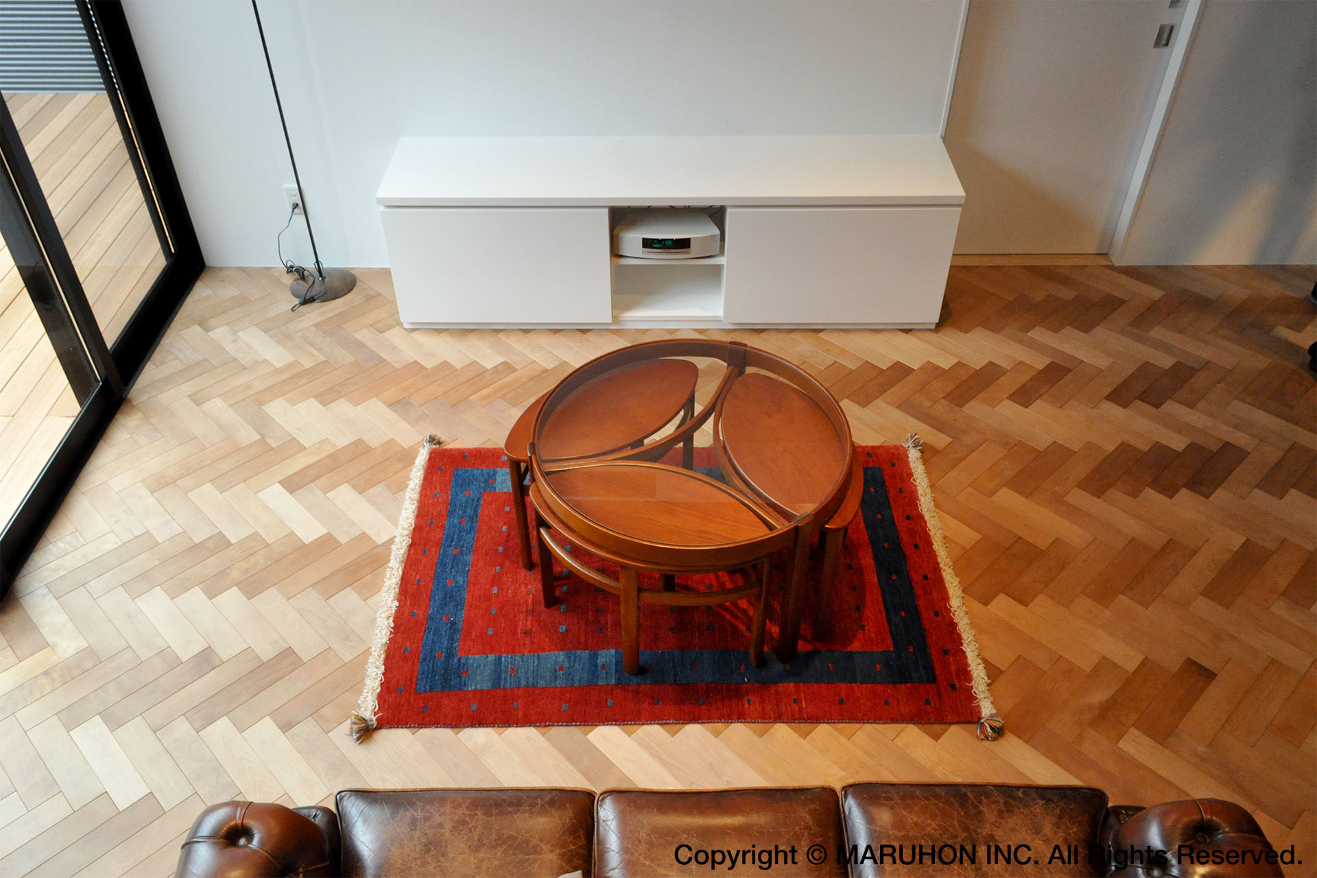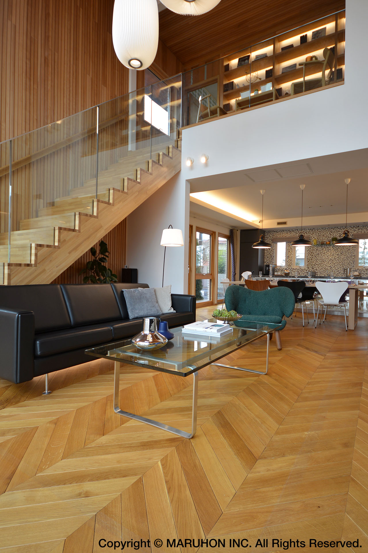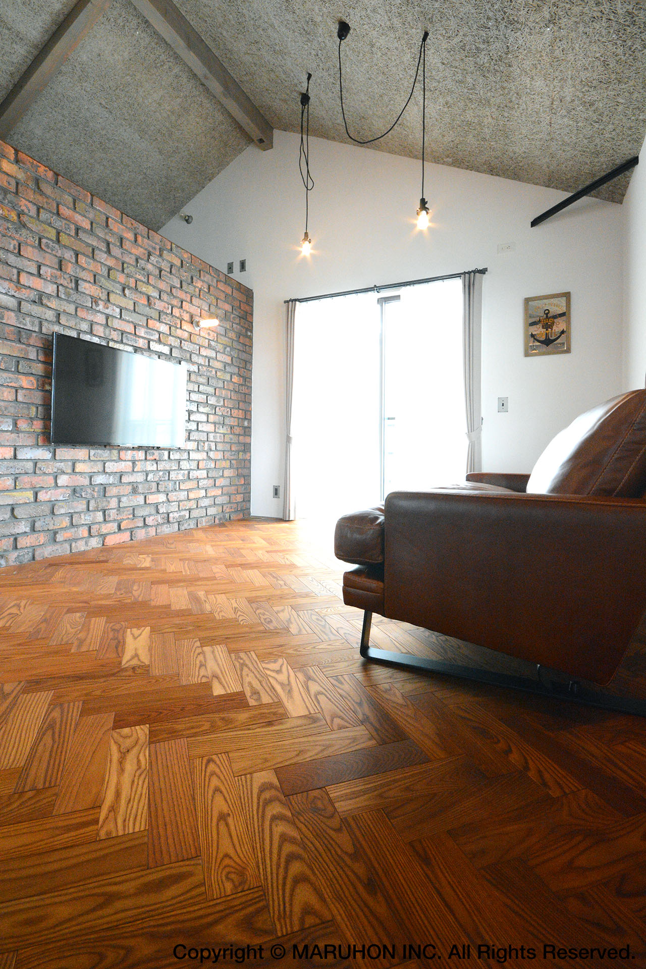 商品名ヨーロピアンオーク 床暖房対応 フレンチヘリンボーン 挽板フローリング 121.2mm巾 右用
