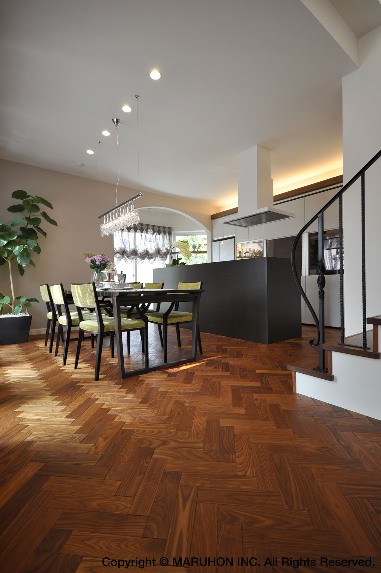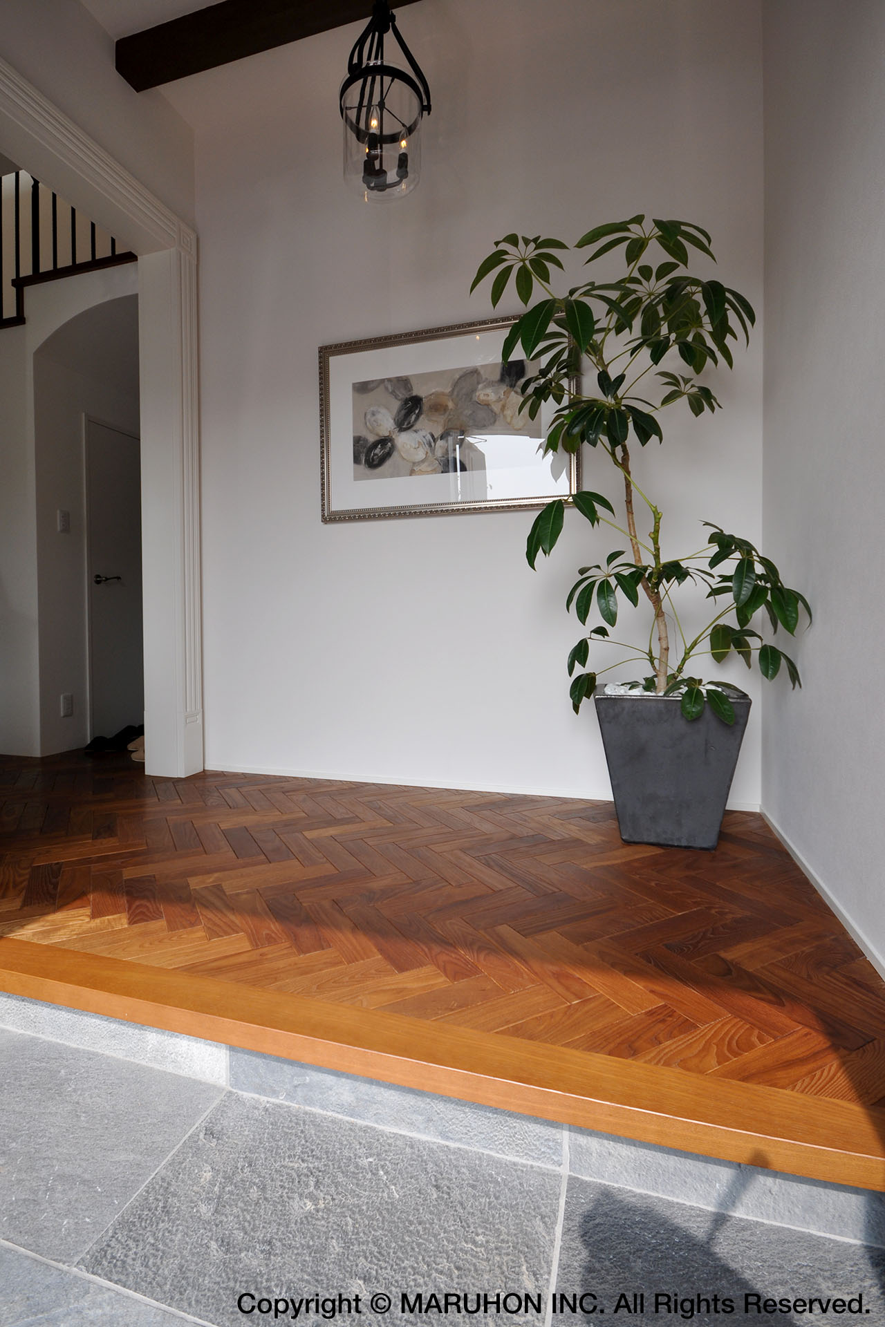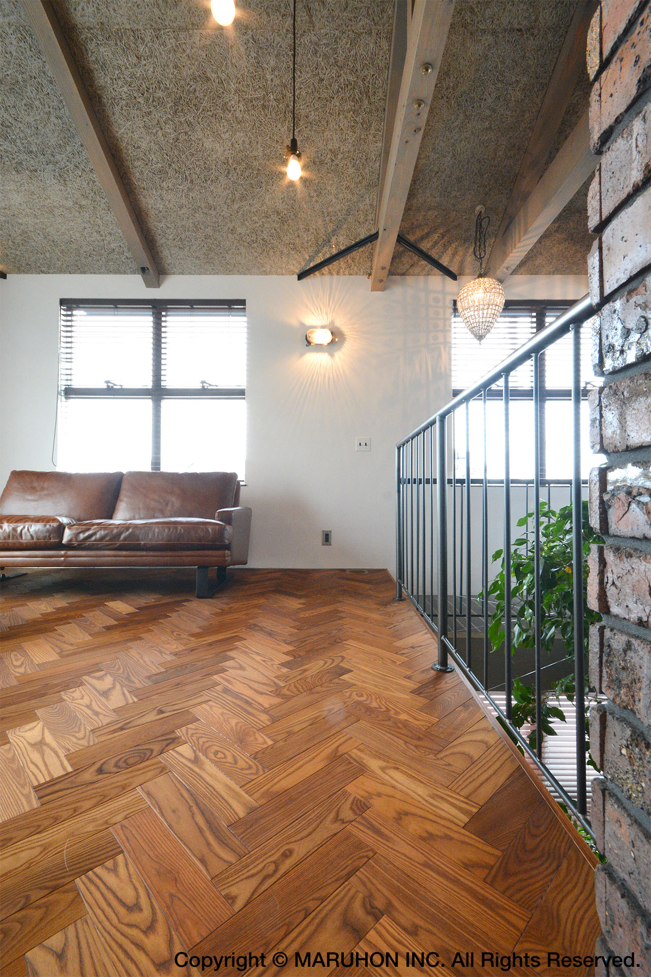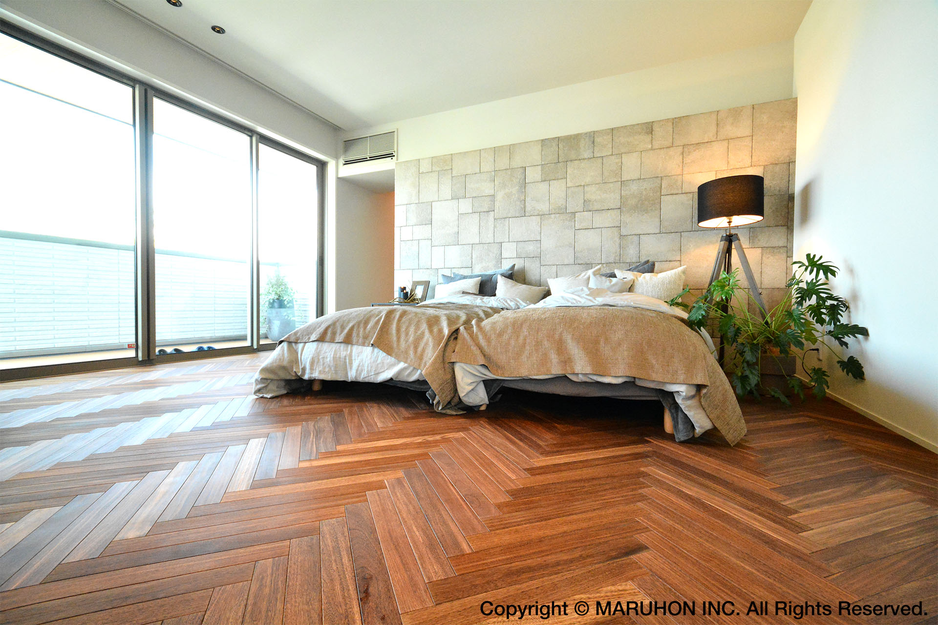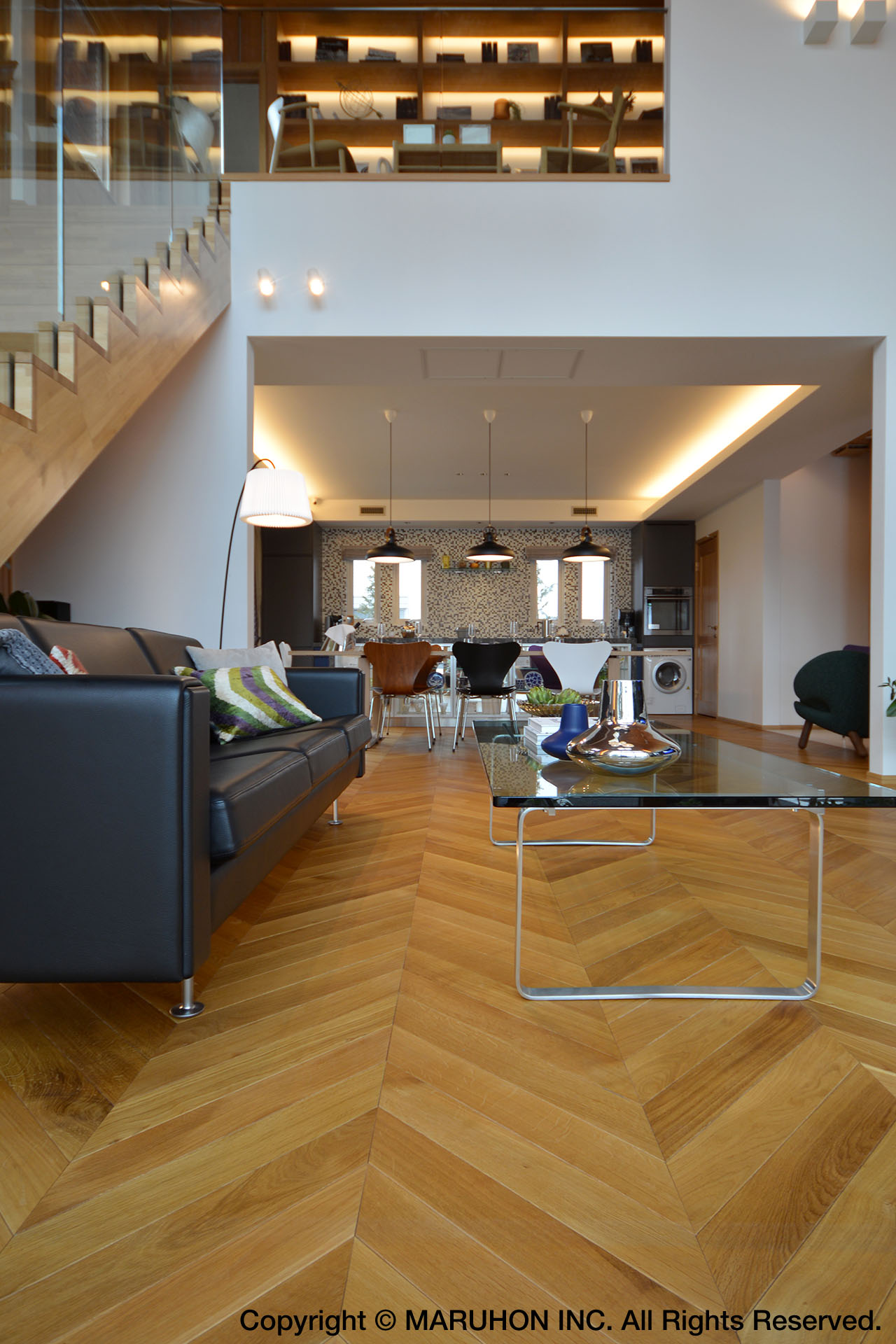商品名ヨーロピアンオーク 床暖房対応 フレンチヘリンボーン 挽板フローリング 121.2mm巾 右用