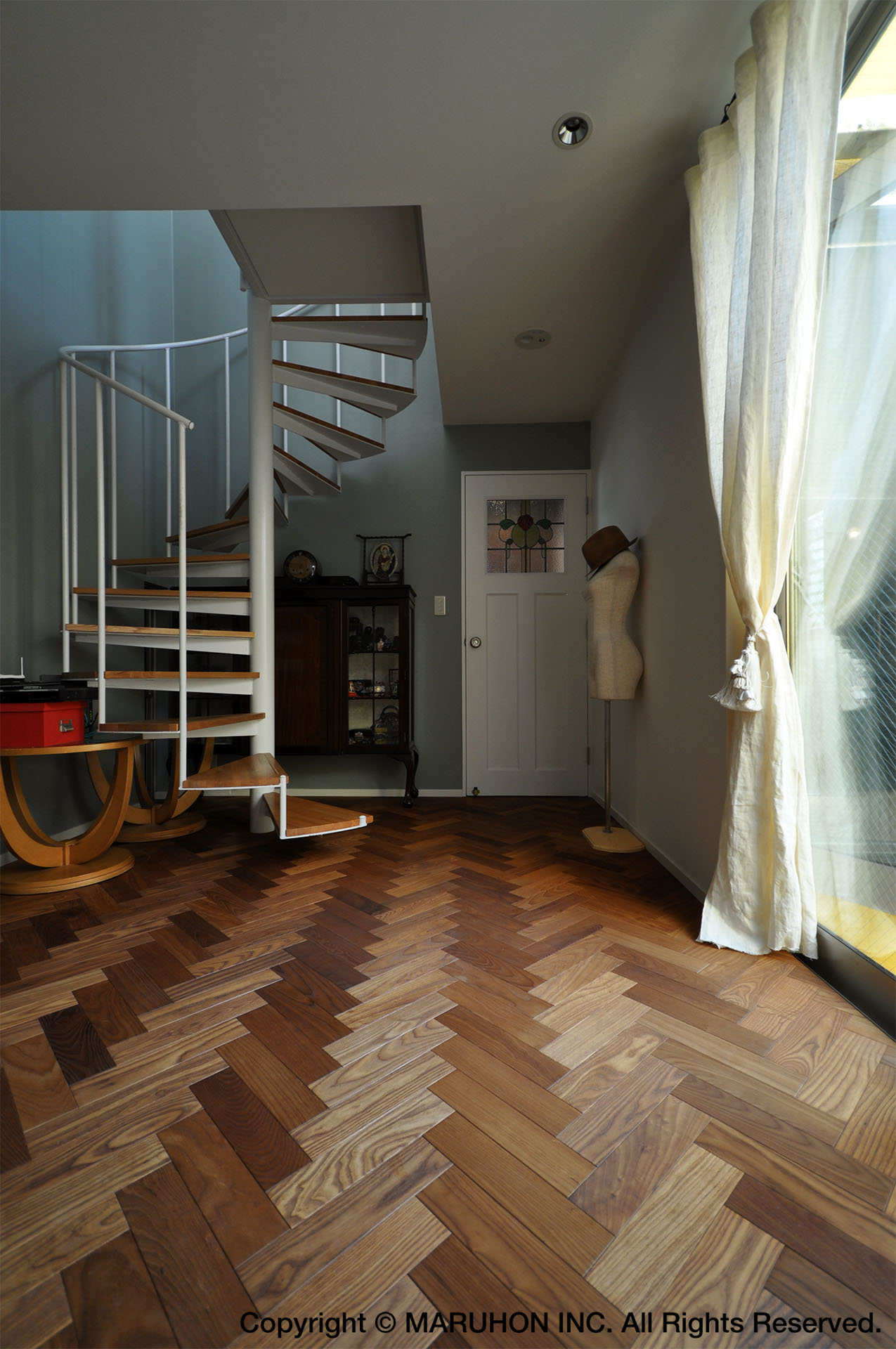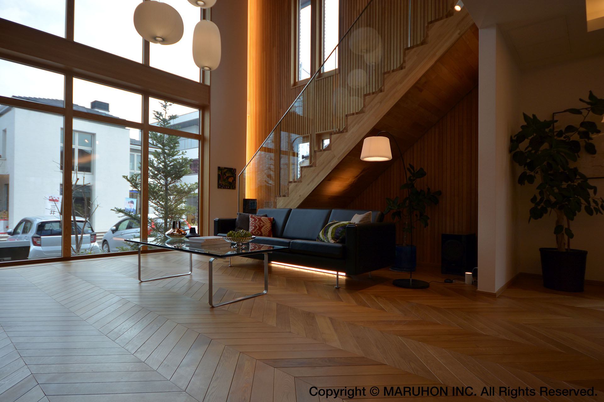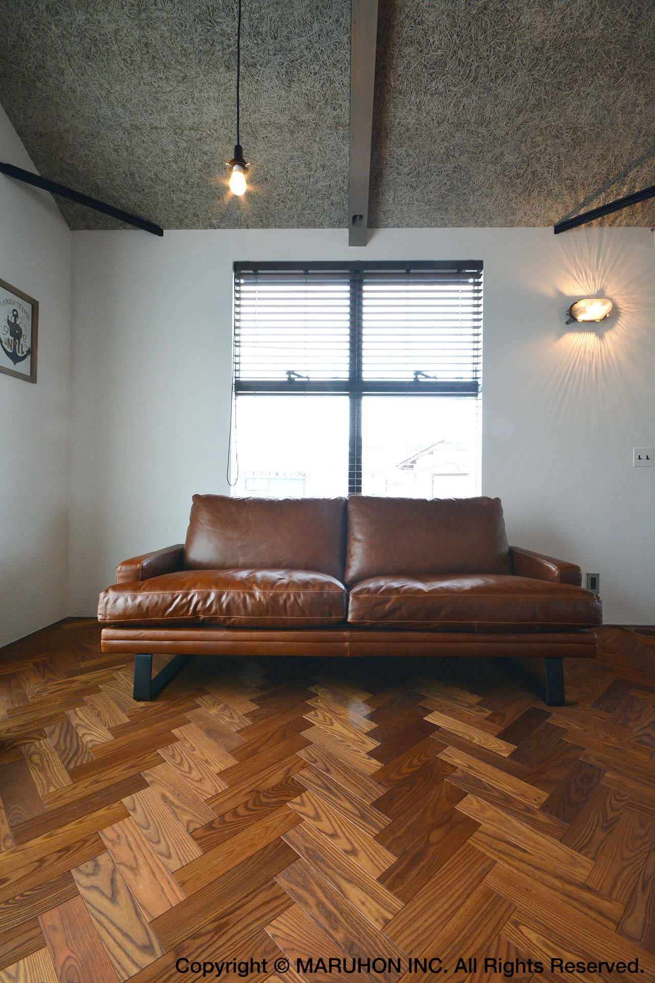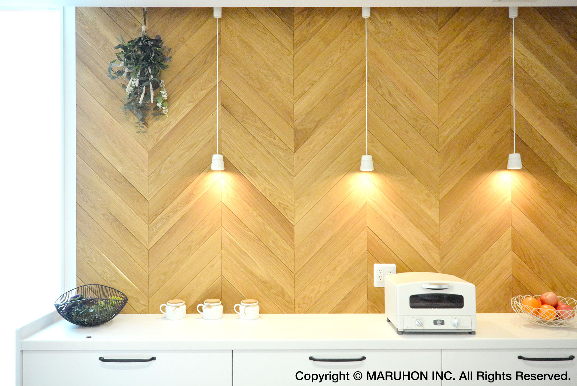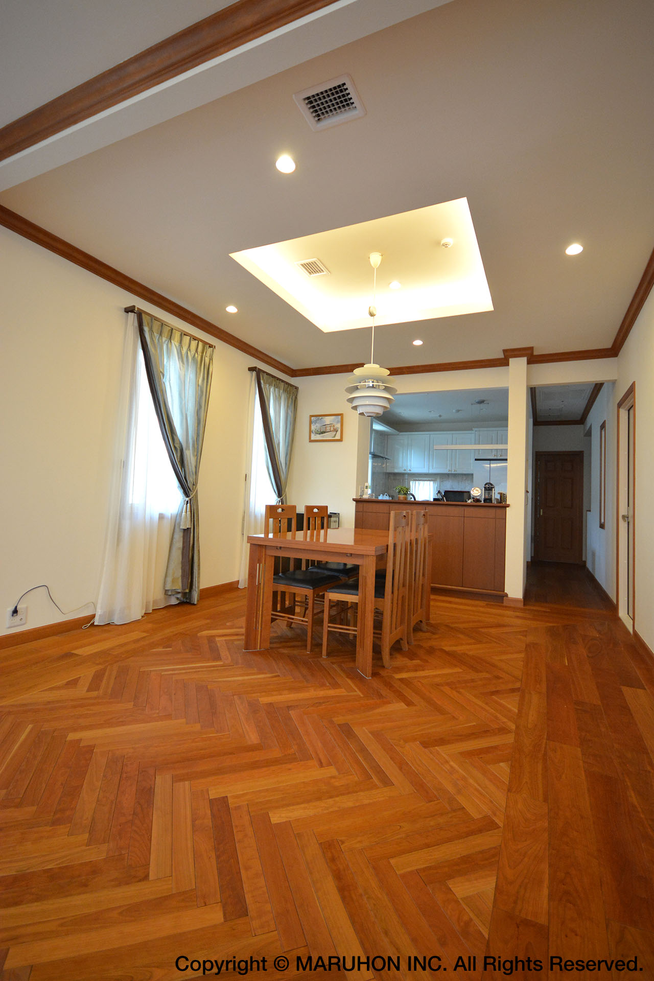 商品名ヨーロピアンオーク 床暖房対応 フレンチヘリンボーン 挽板フローリング 121.2mm巾 右用