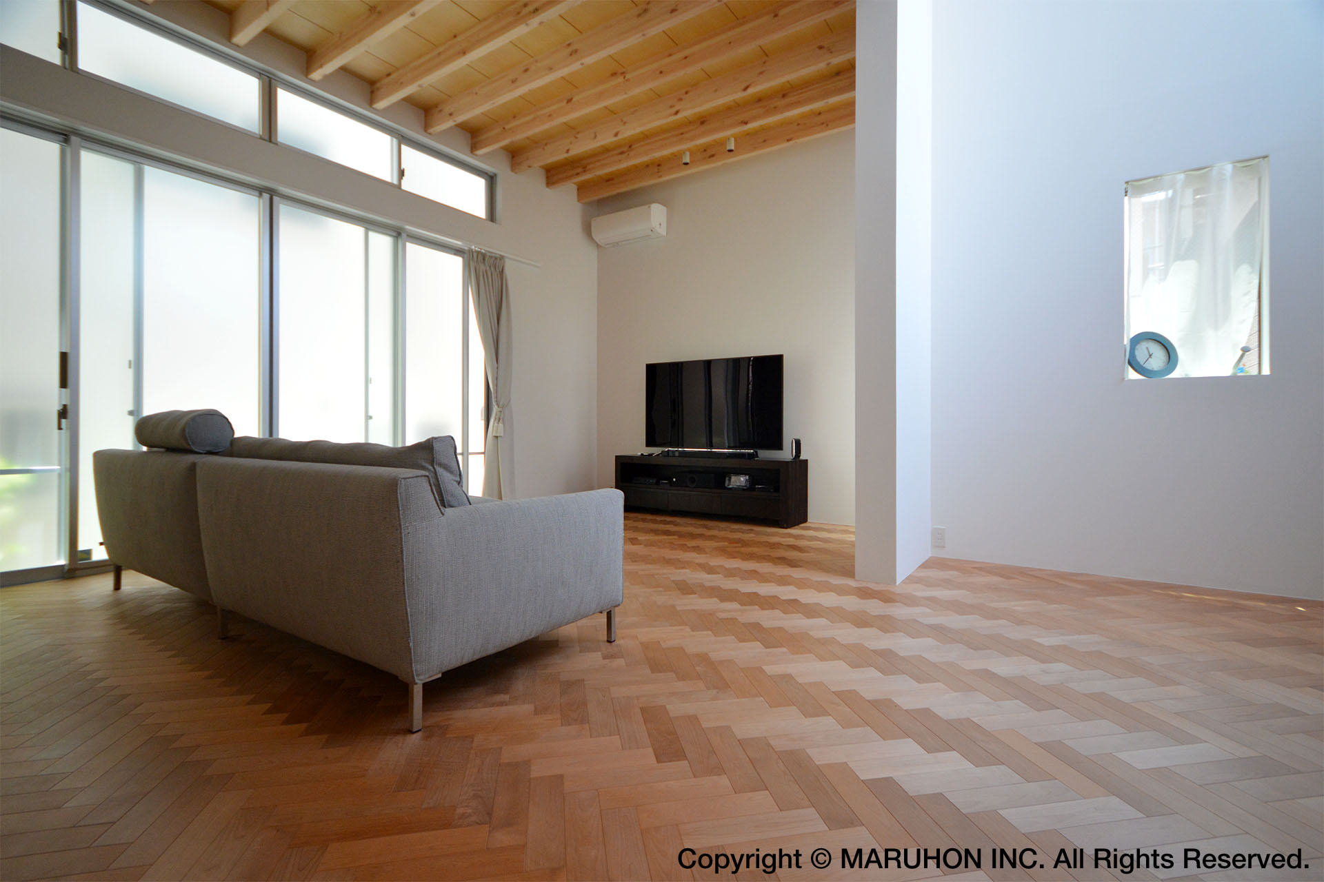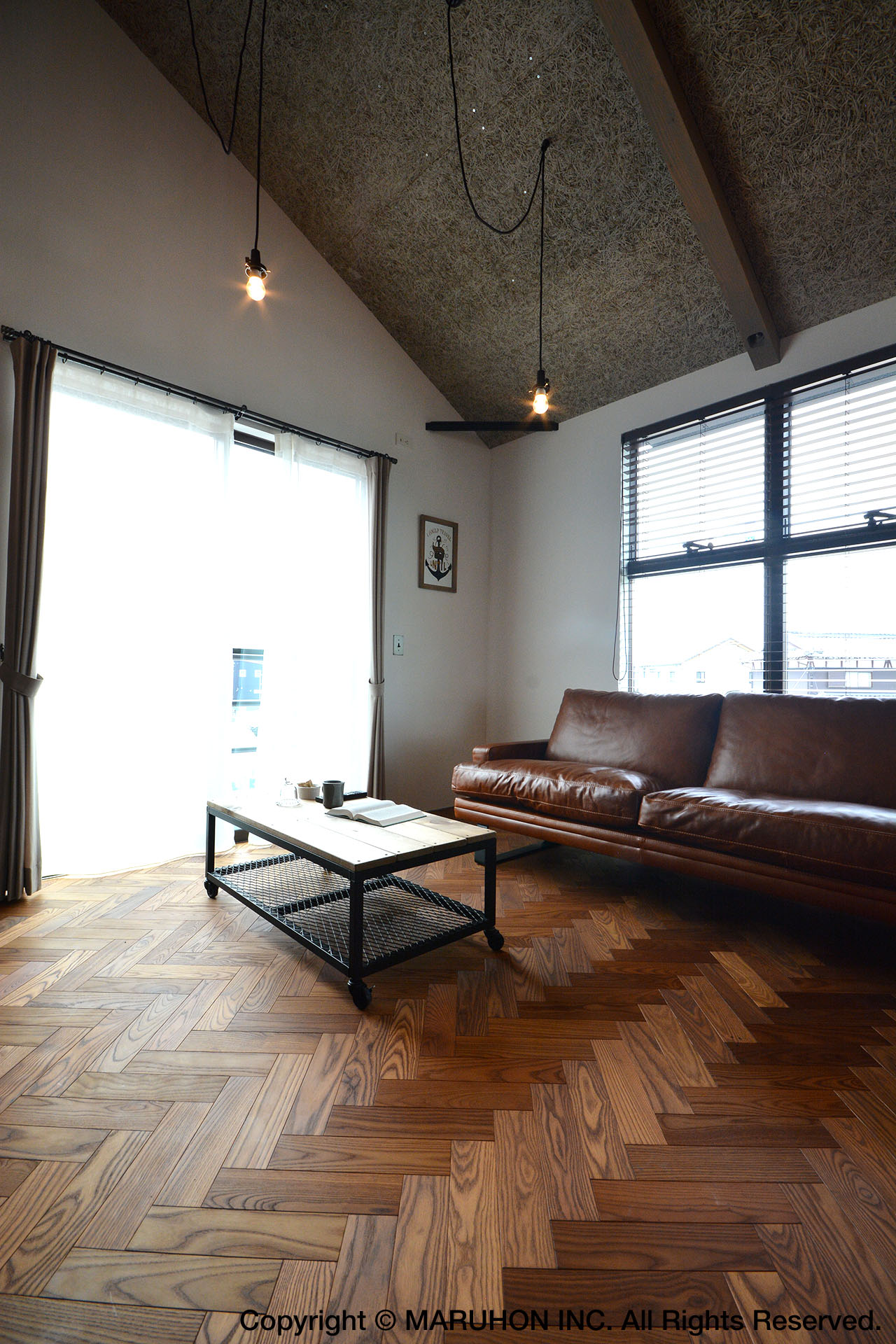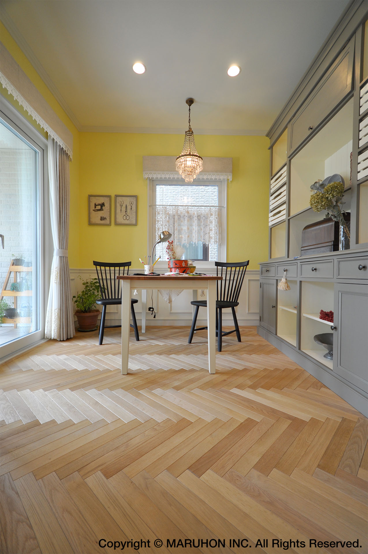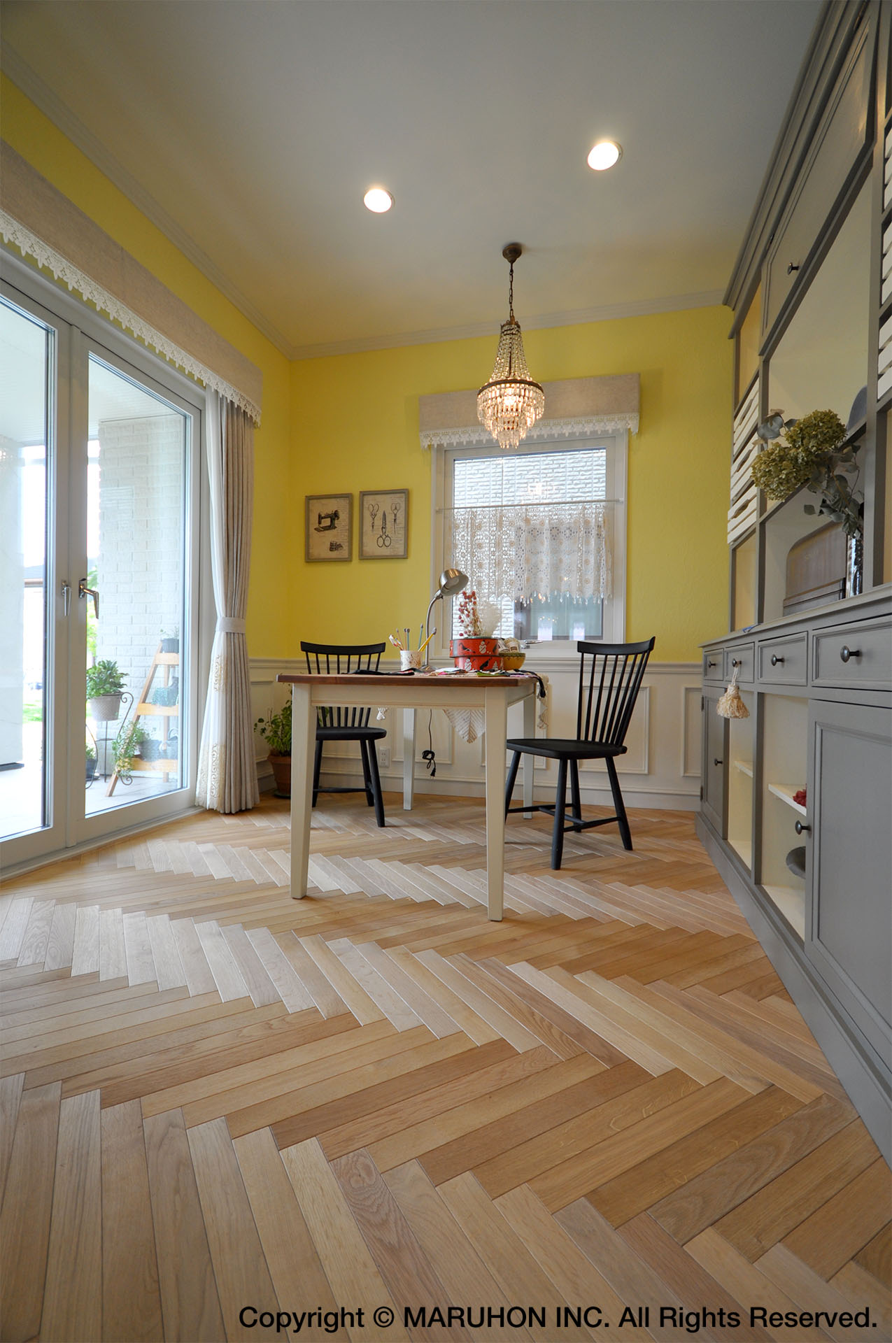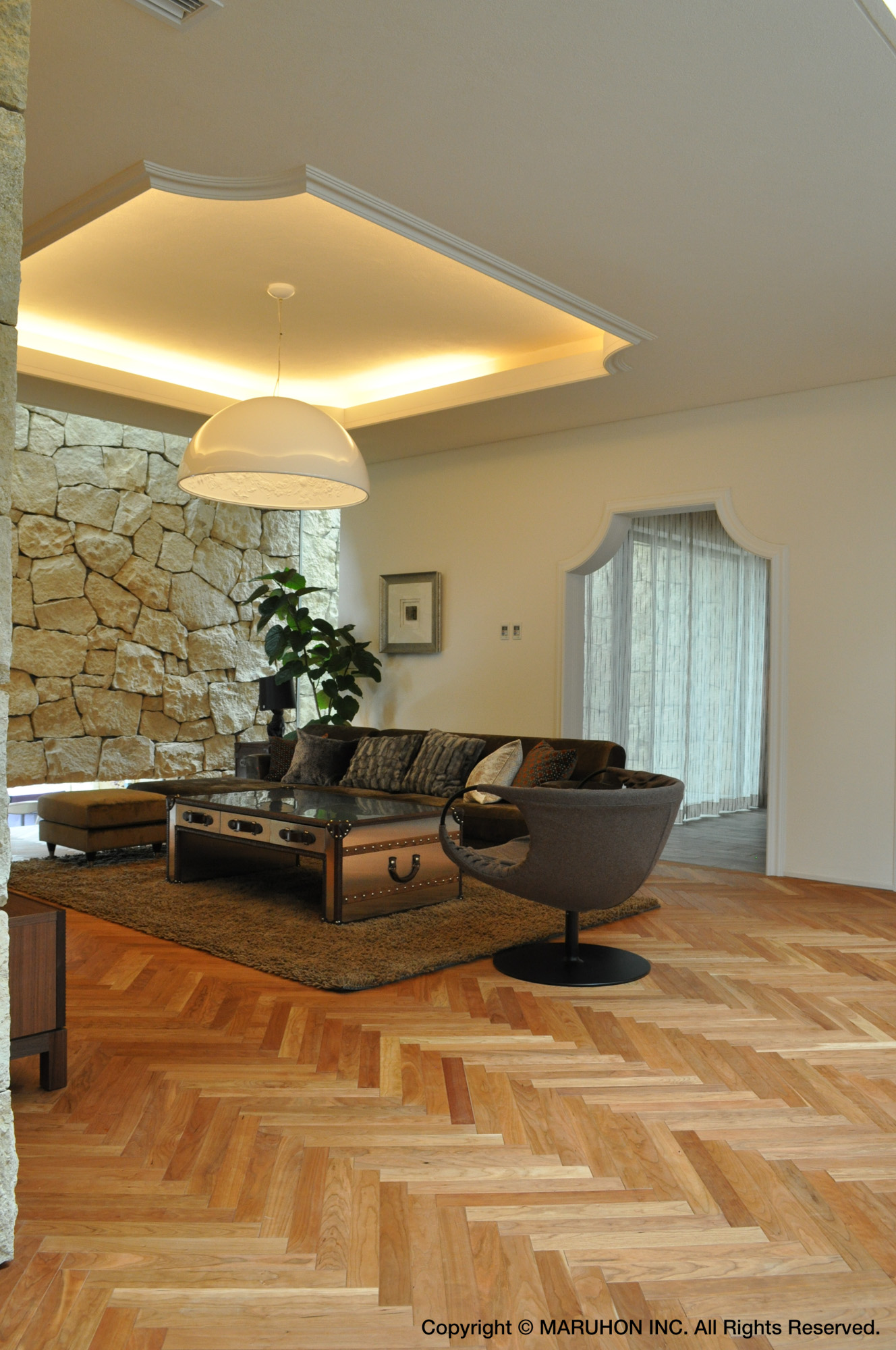 商品名ヨーロピアンオーク 床暖房対応 フレンチヘリンボーン 挽板フローリング 121.2mm巾 右用