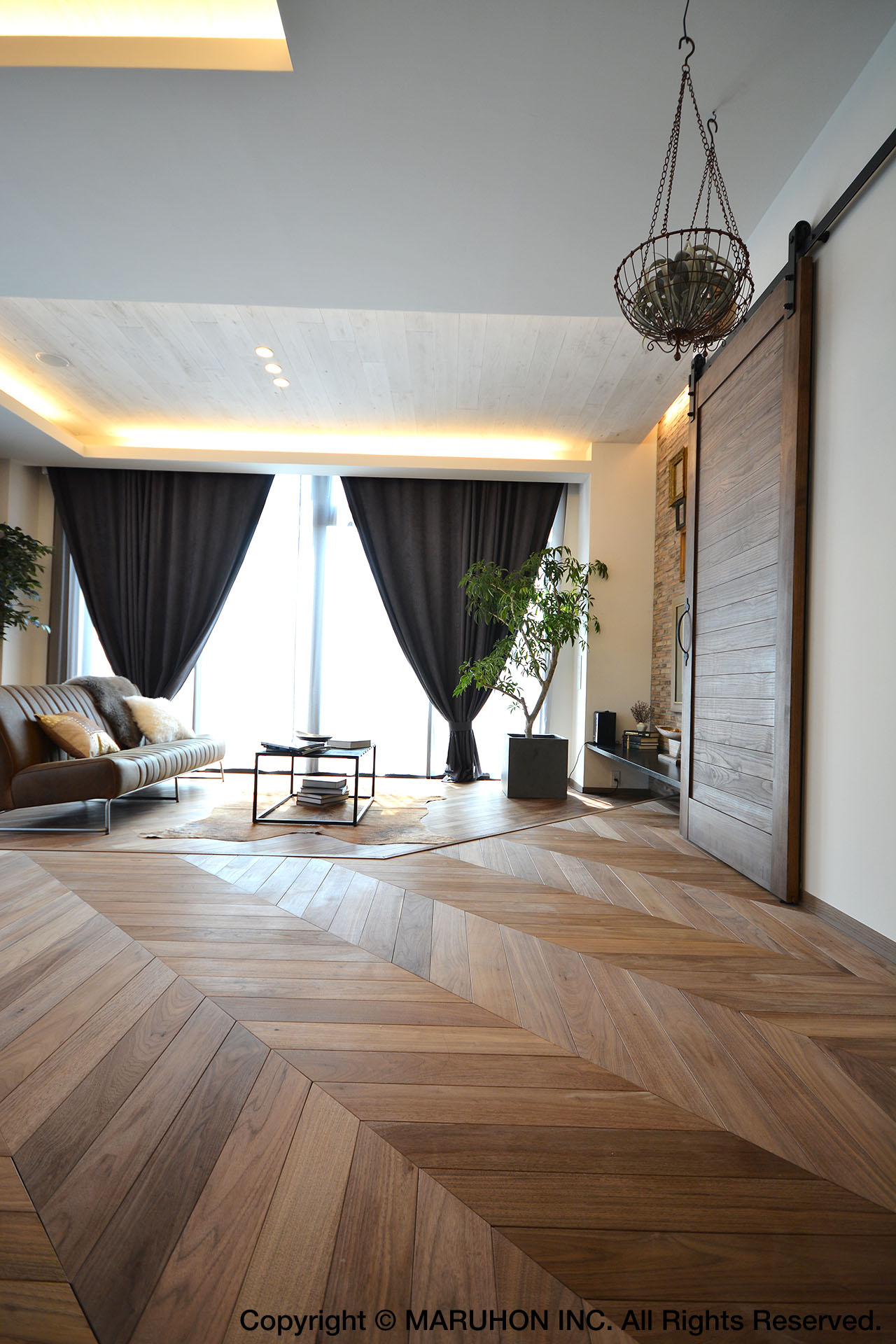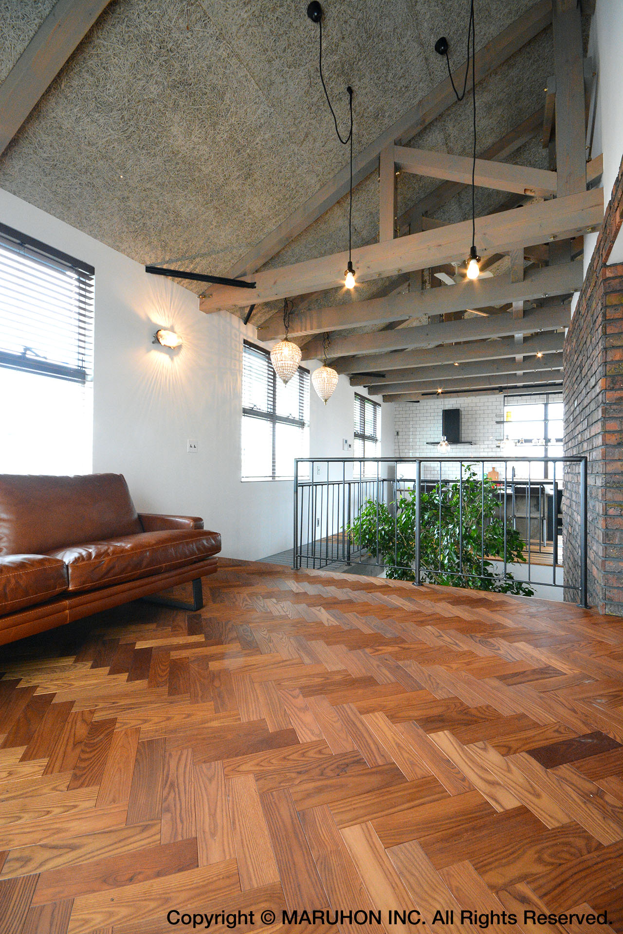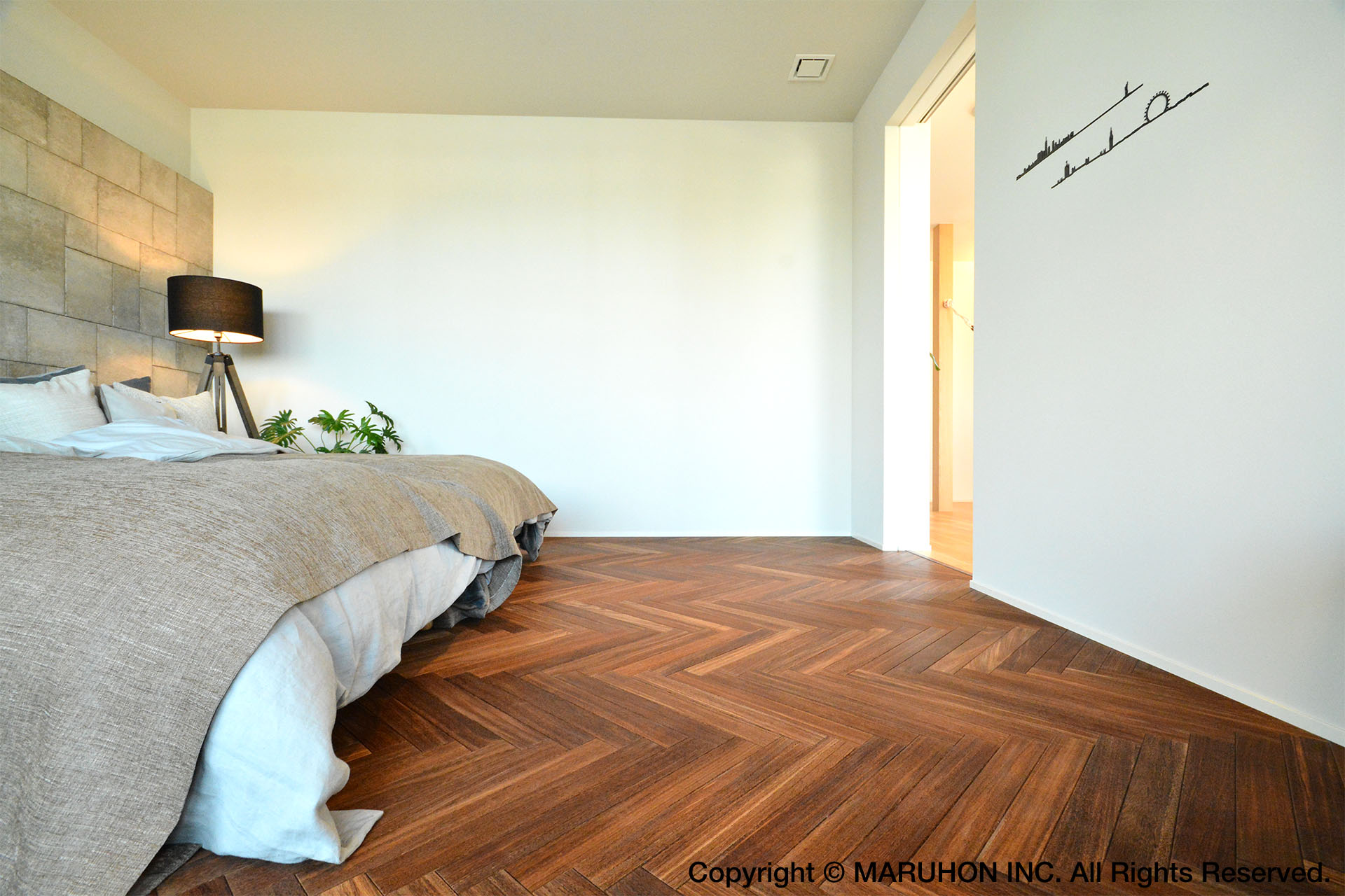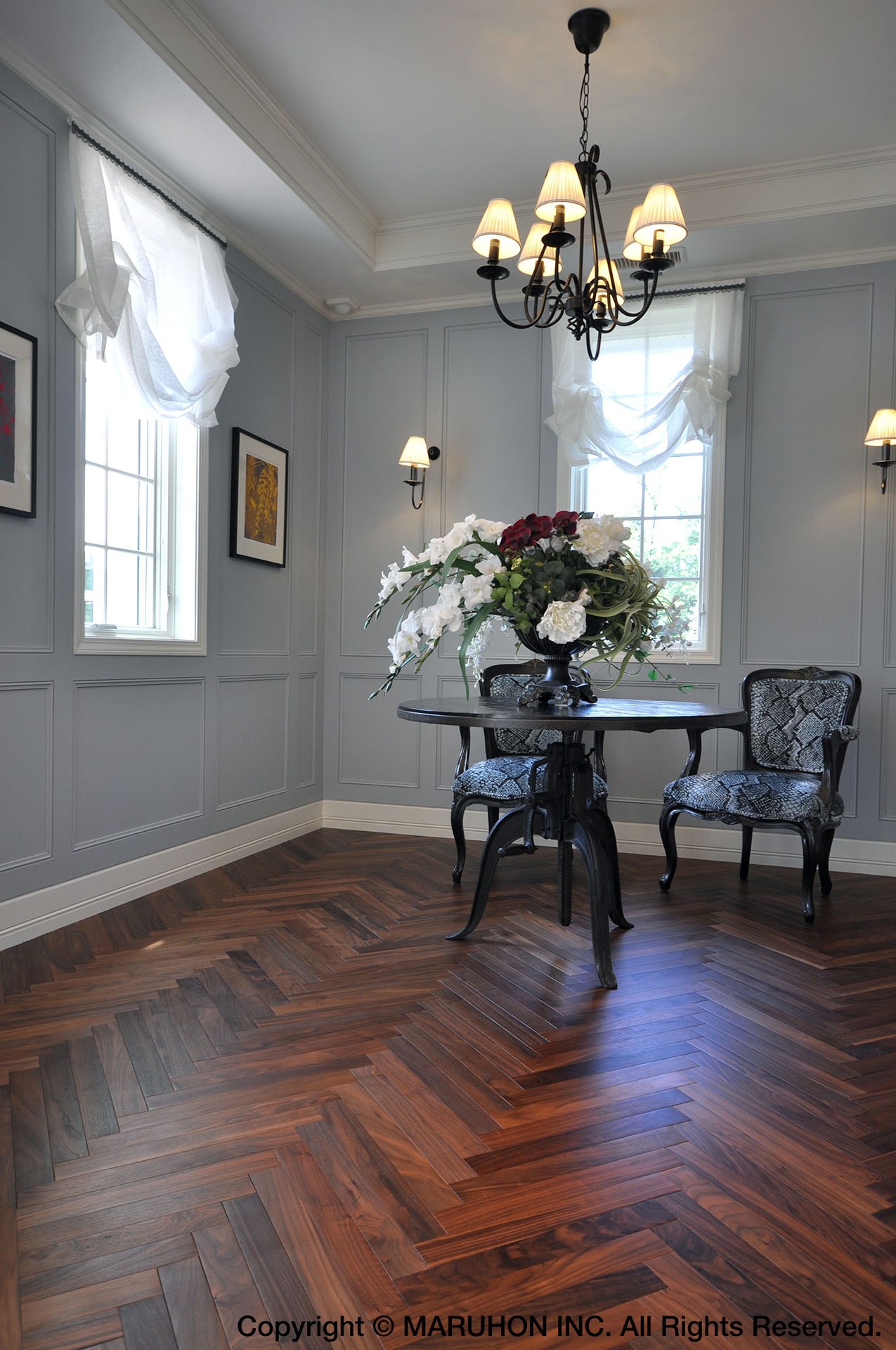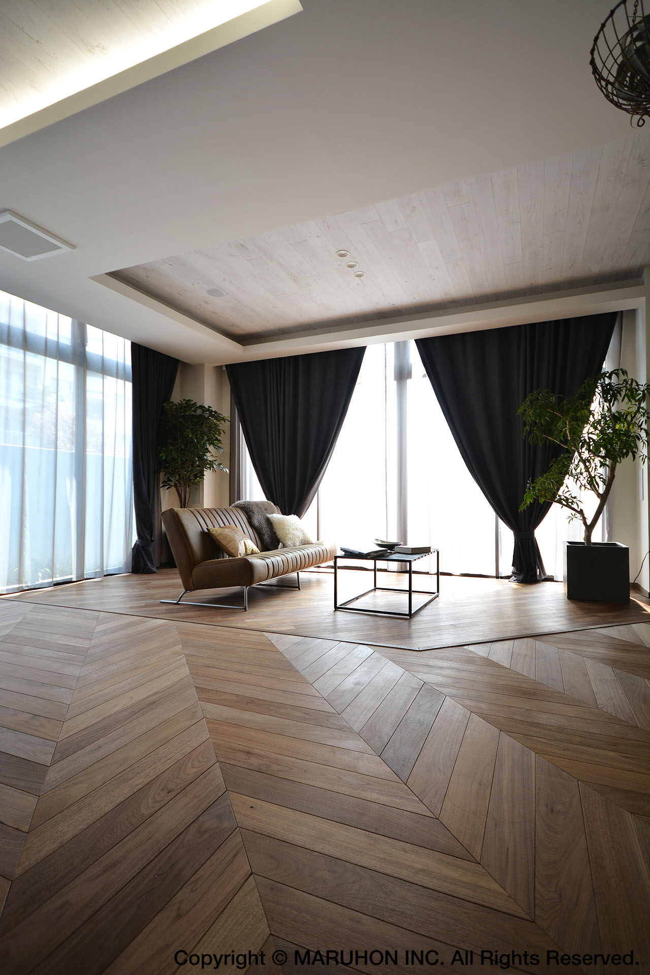 商品名ヨーロピアンオーク 床暖房対応 フレンチヘリンボーン 挽板フローリング 121.2mm巾 右用