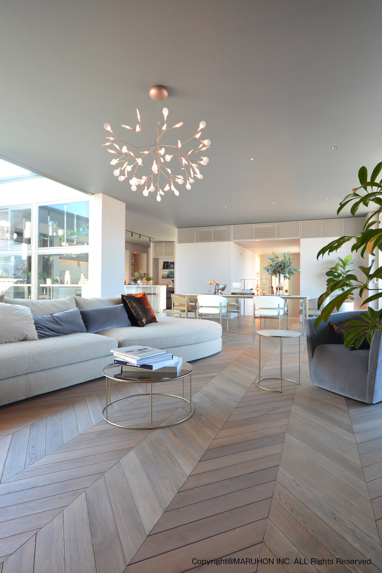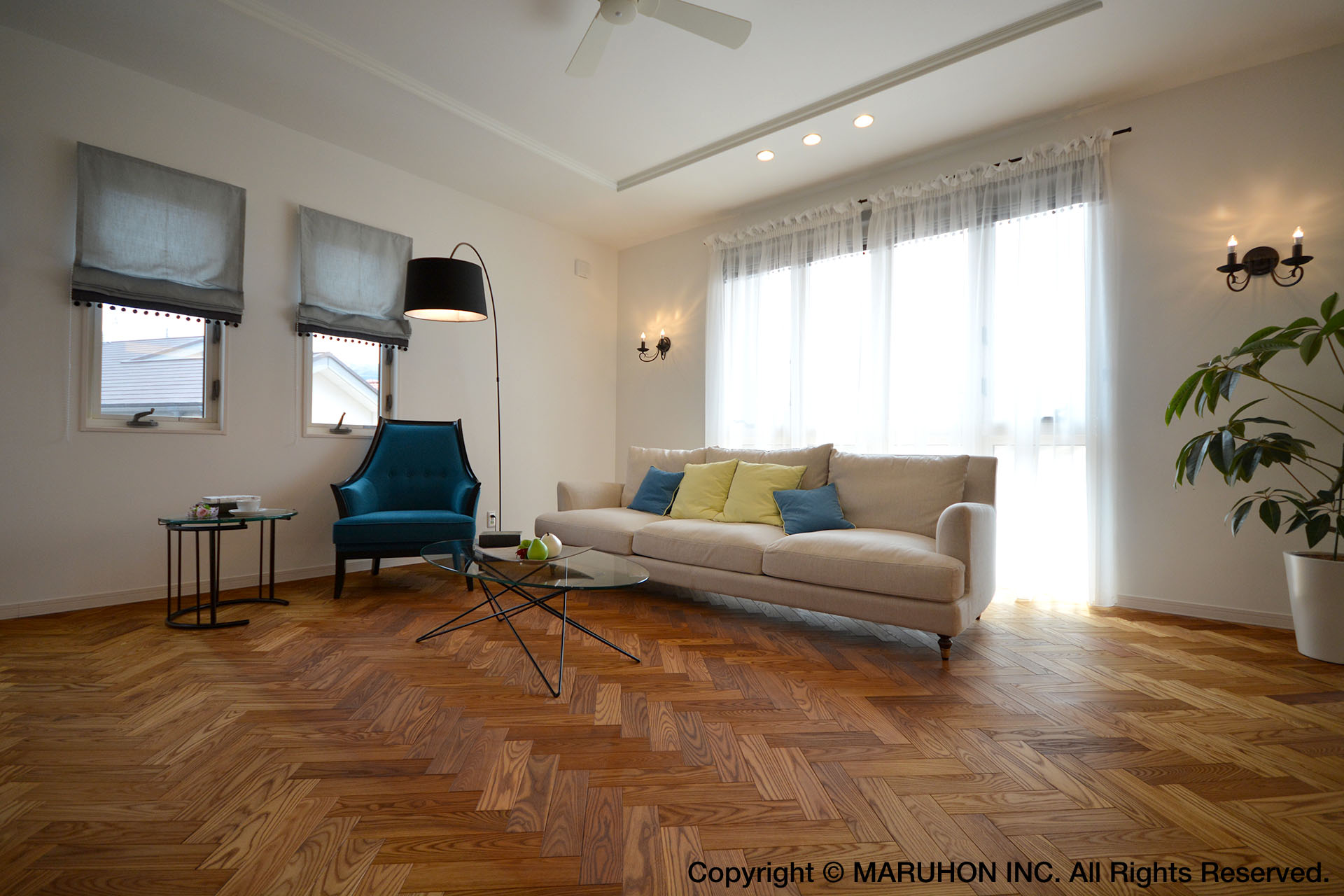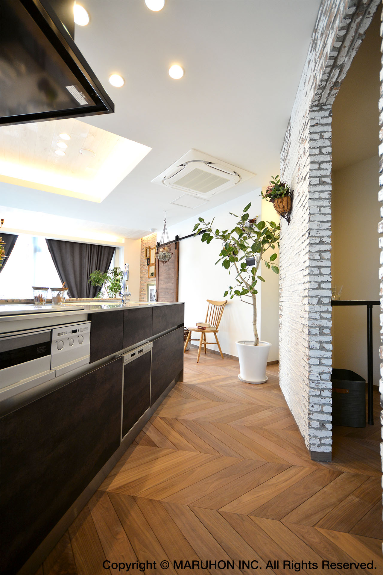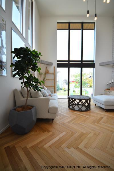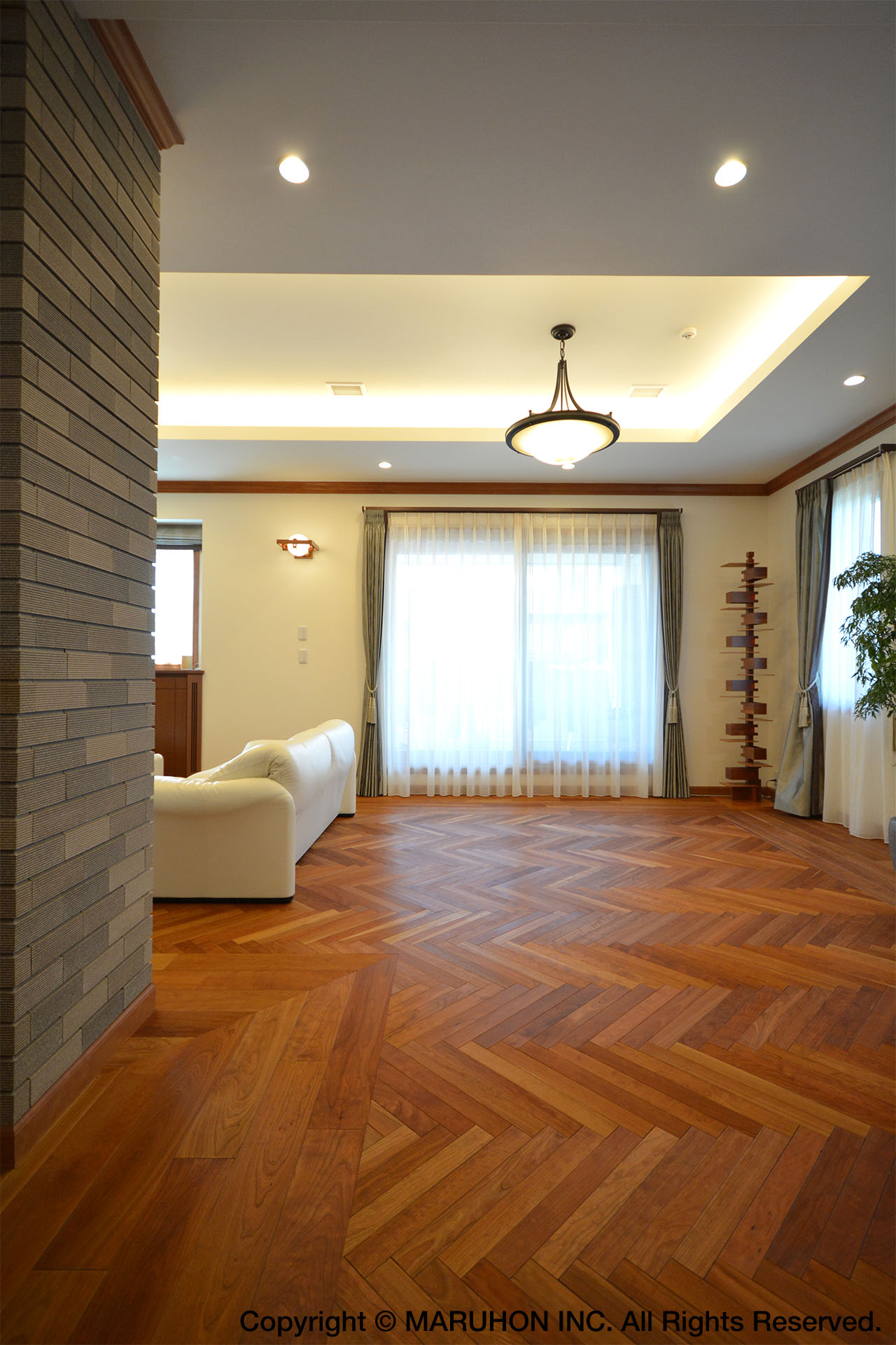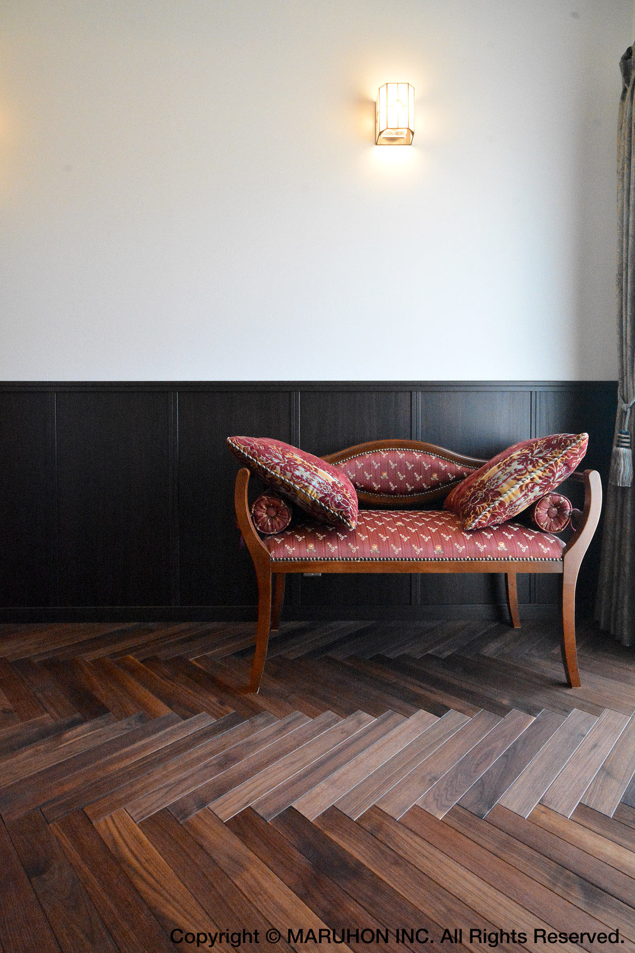 商品名ヨーロピアンオーク 床暖房対応 フレンチヘリンボーン 挽板フローリング 121.2mm巾 右用