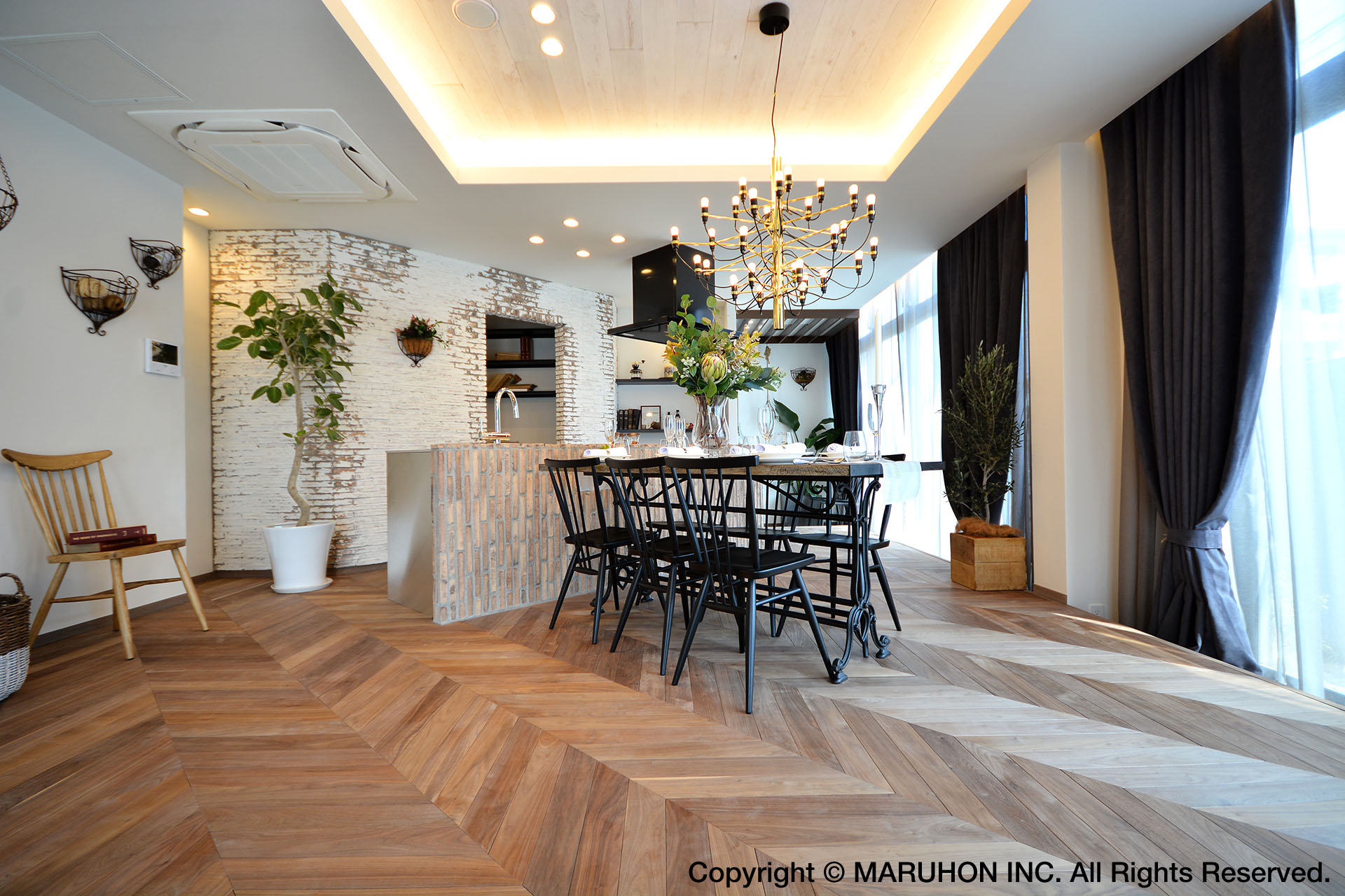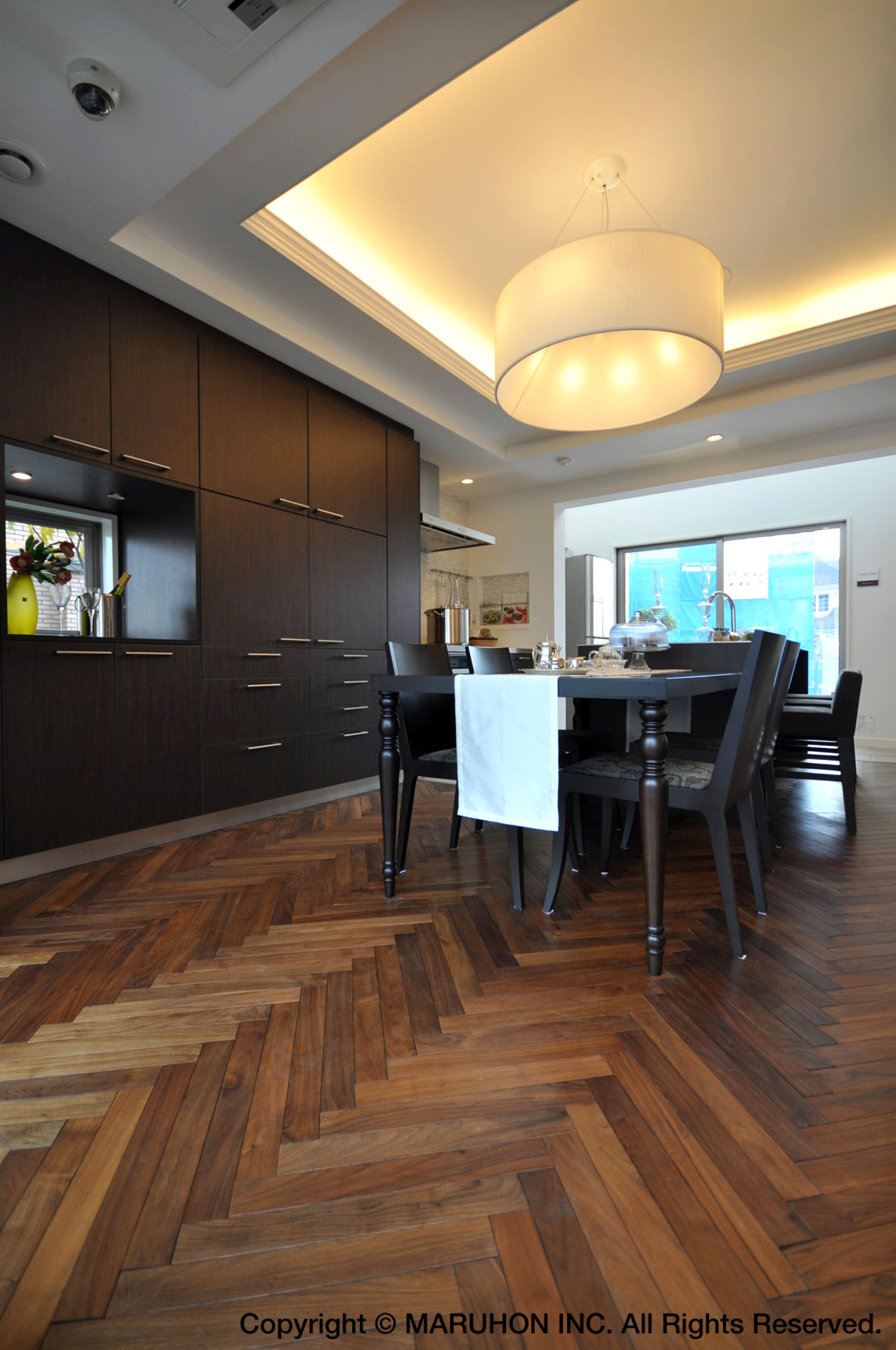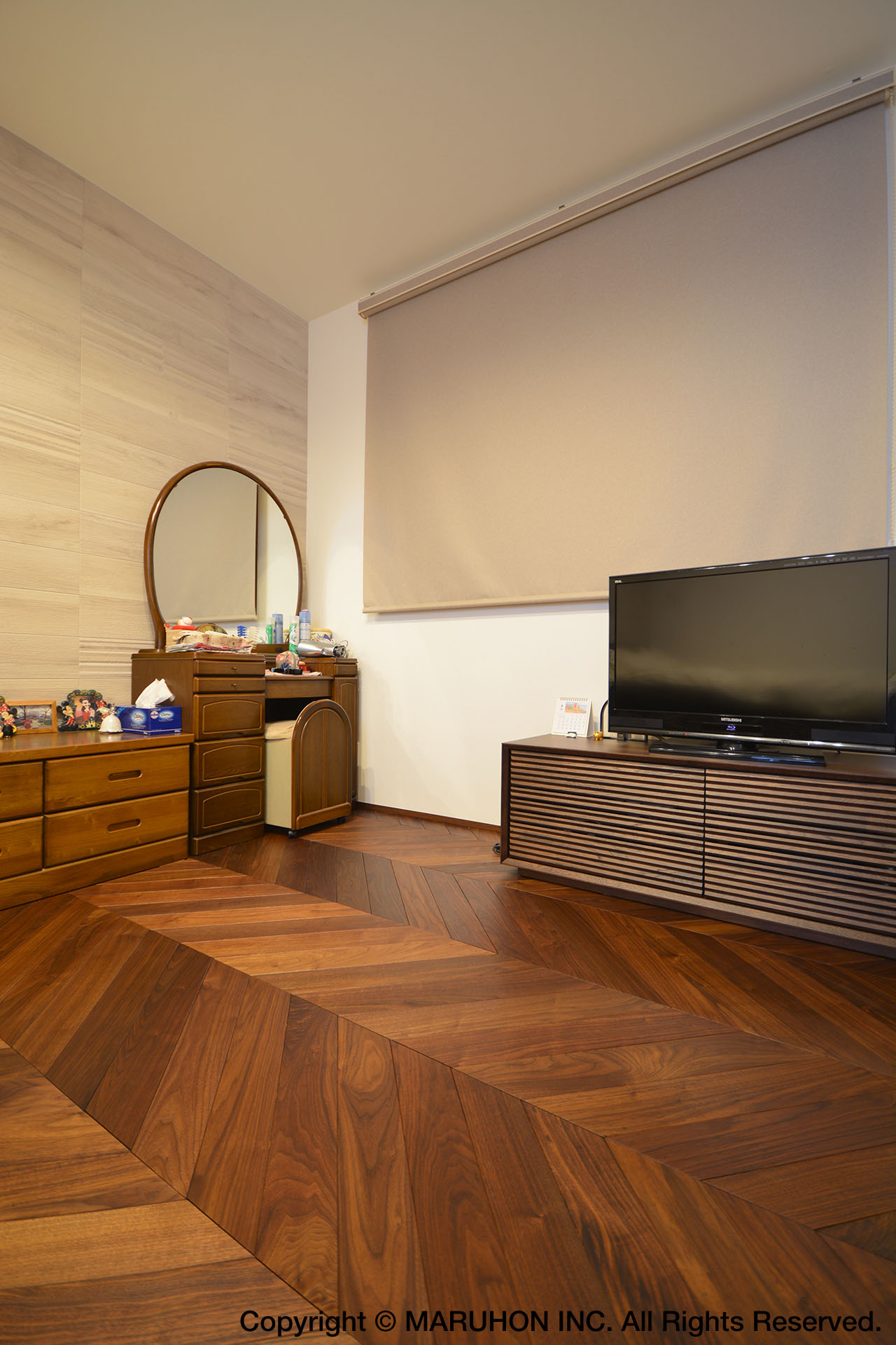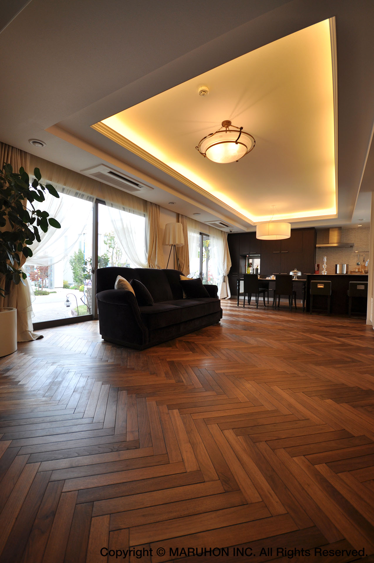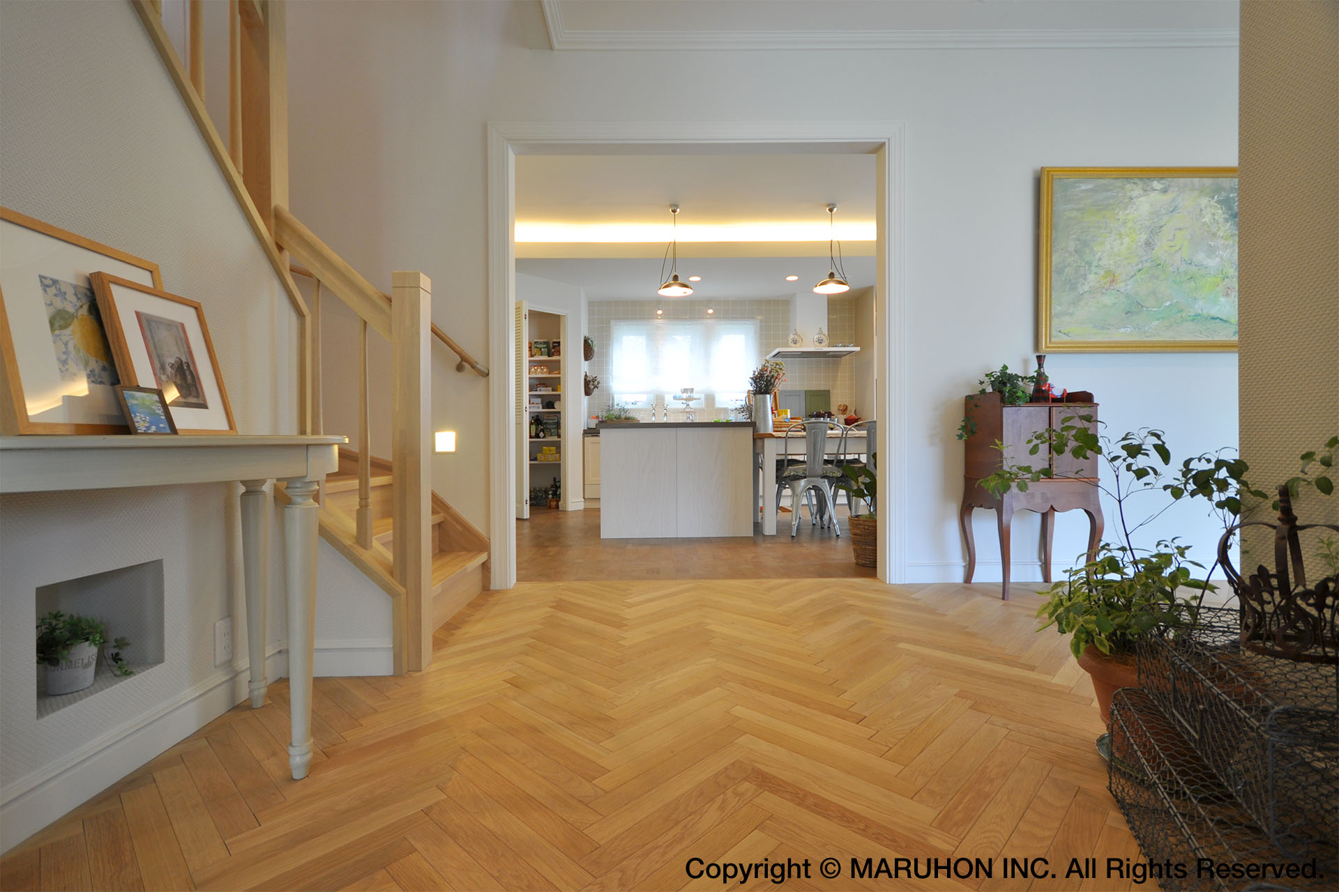 商品名ヨーロピアンオーク 床暖房対応 フレンチヘリンボーン 挽板フローリング 121.2mm巾 右用