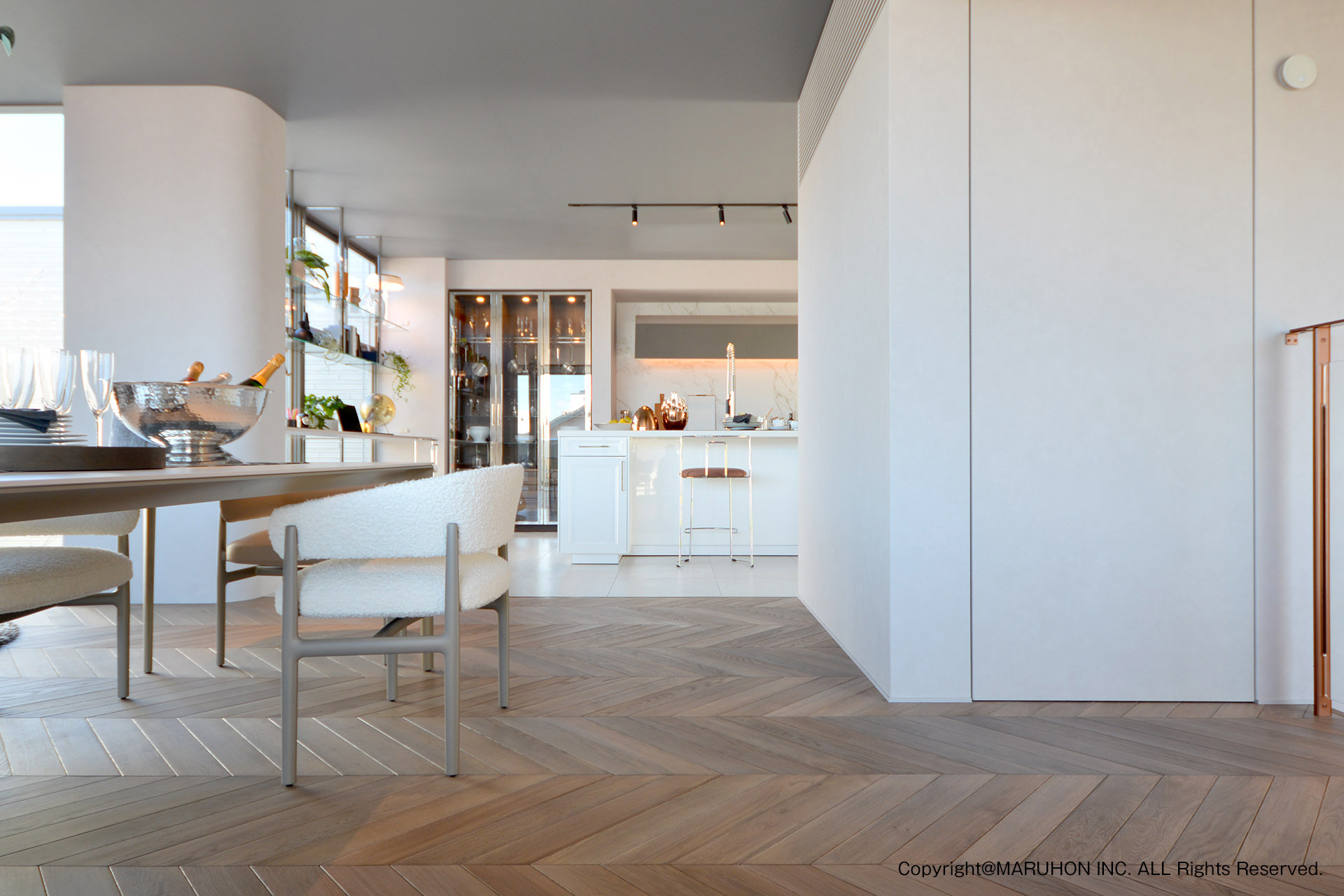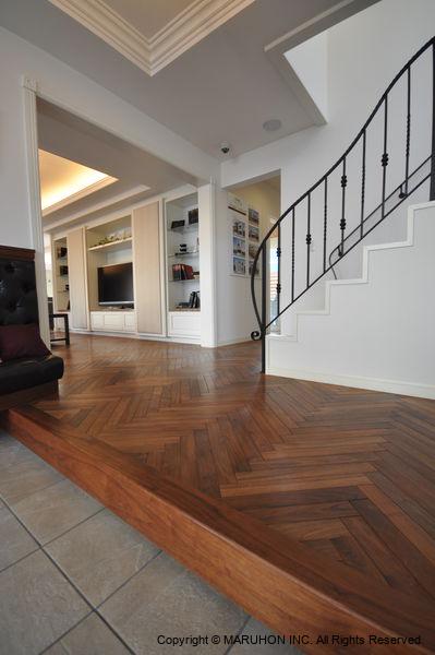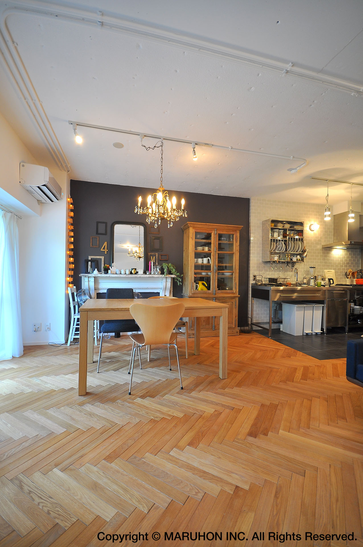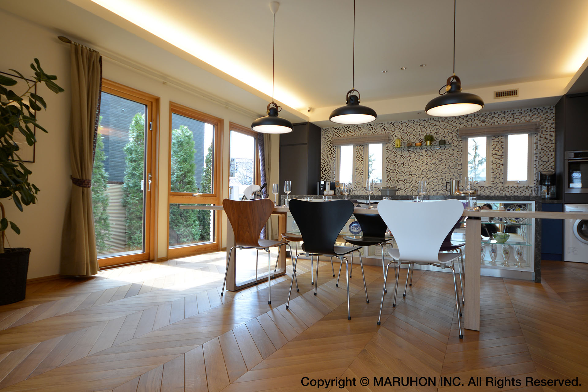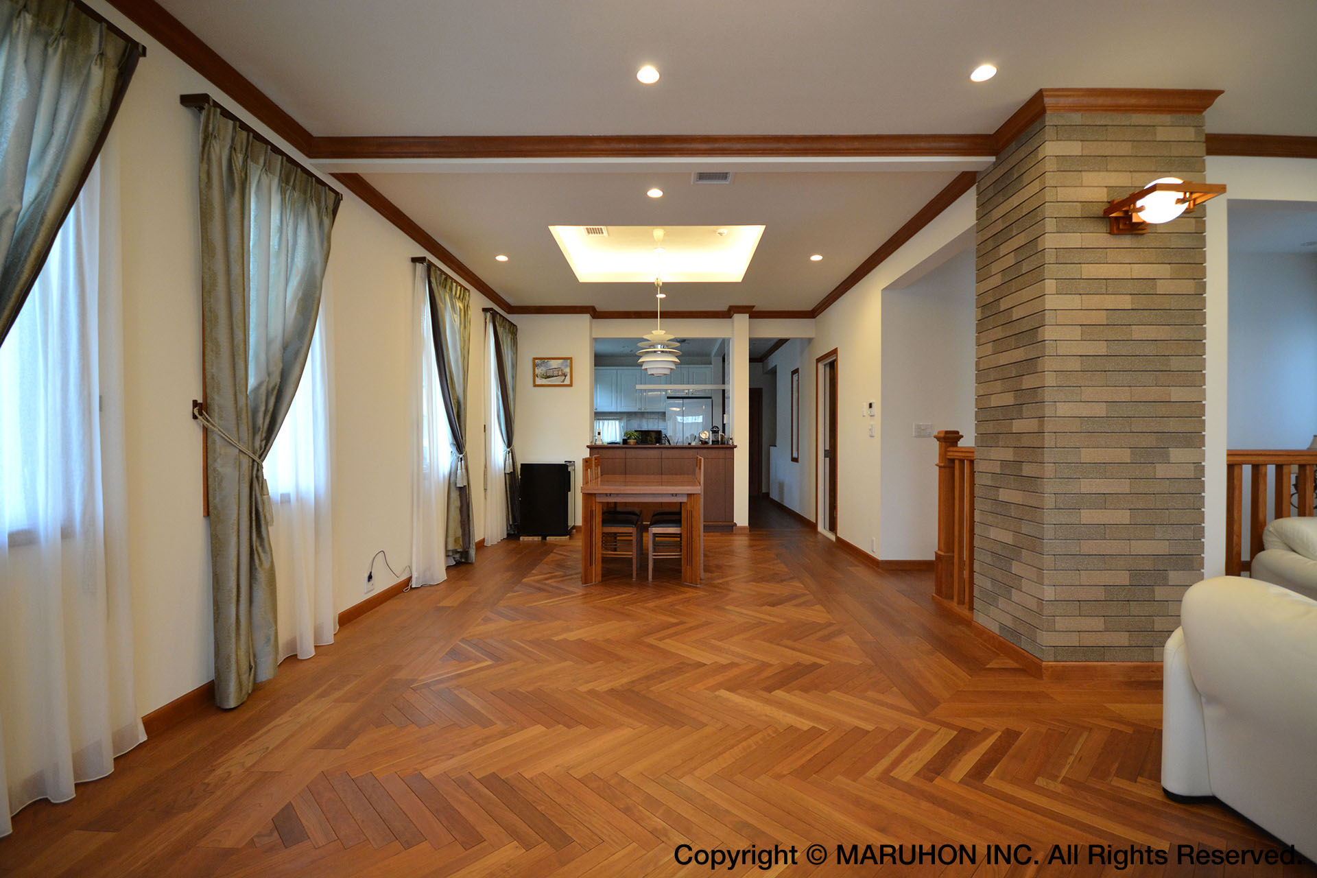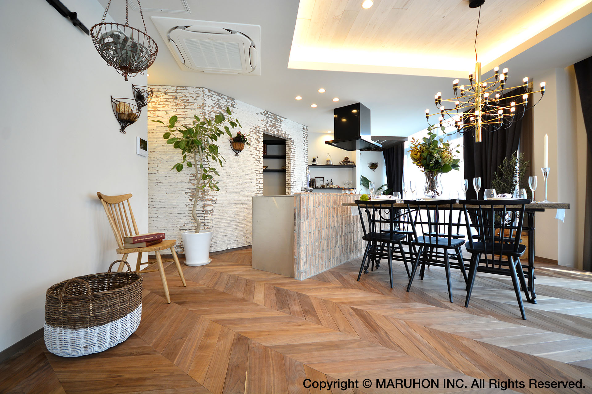 商品名ヨーロピアンオーク 床暖房対応 フレンチヘリンボーン 挽板フローリング 121.2mm巾 右用