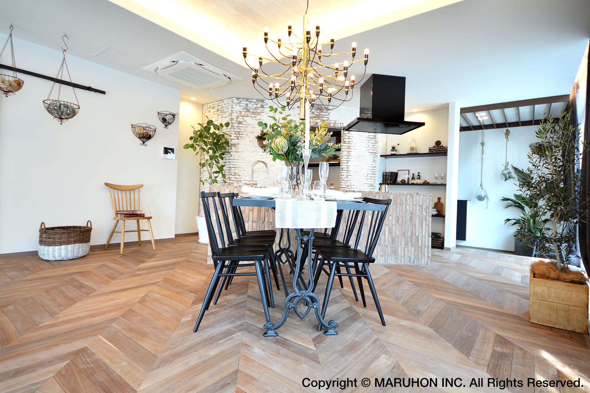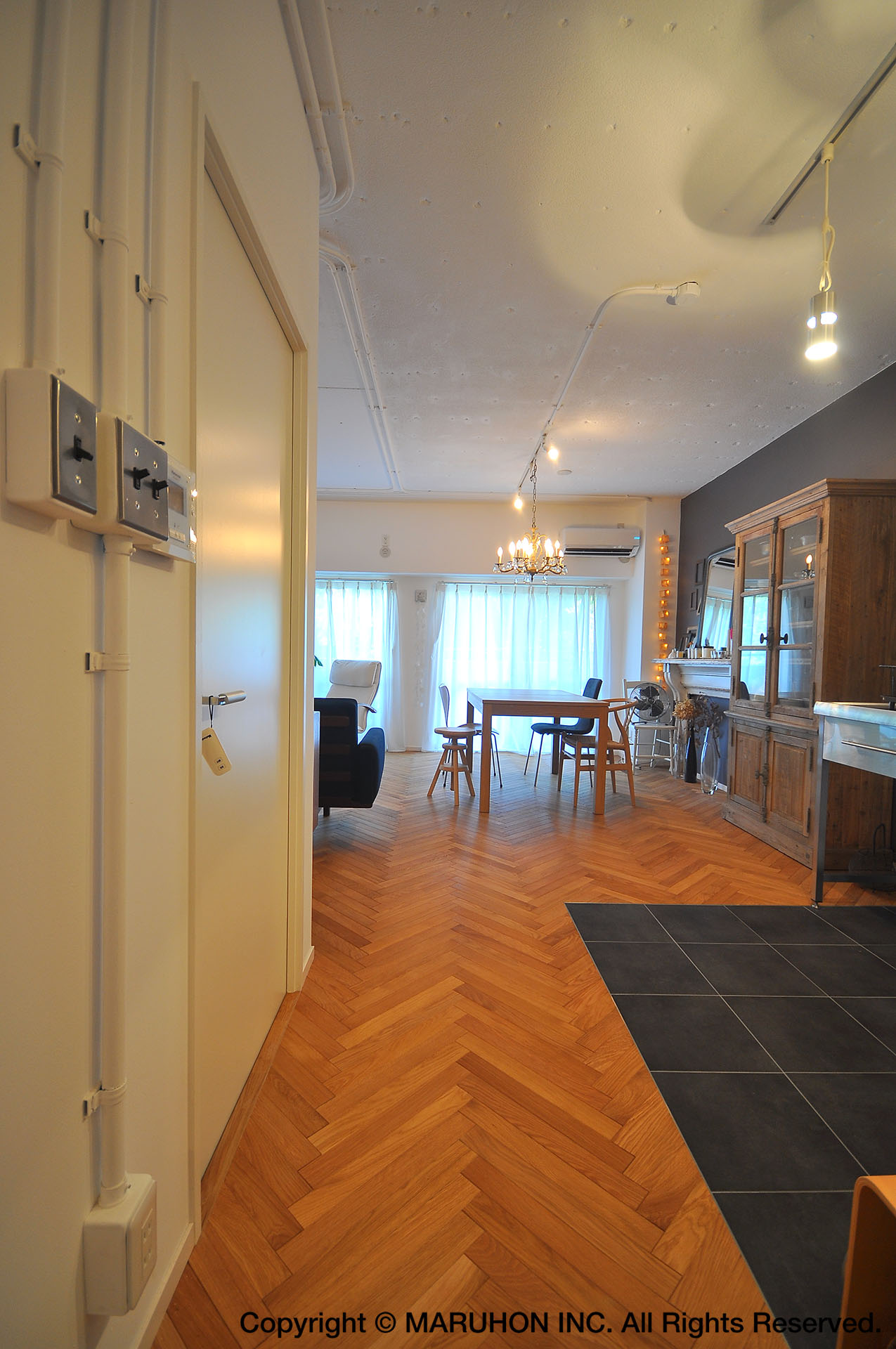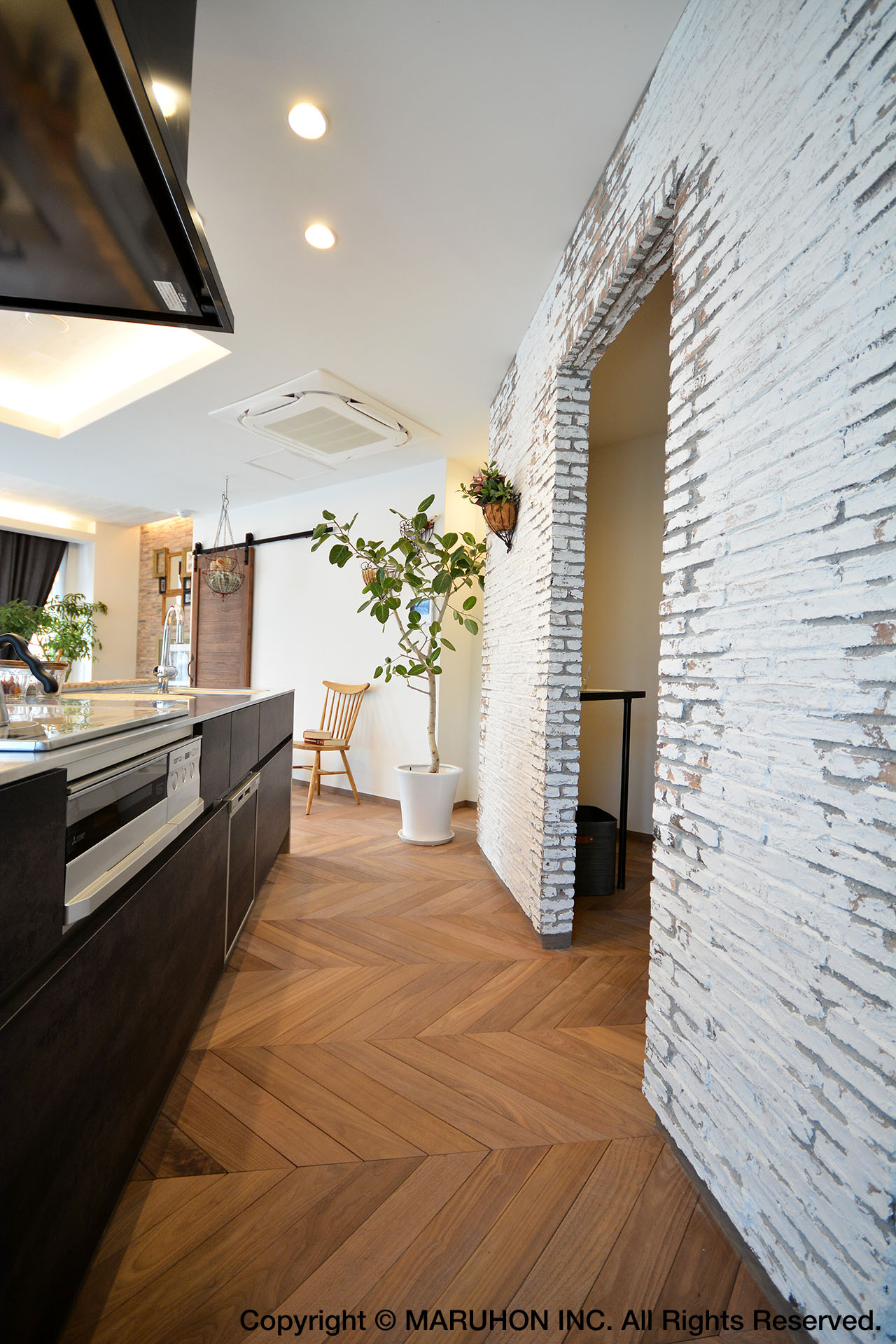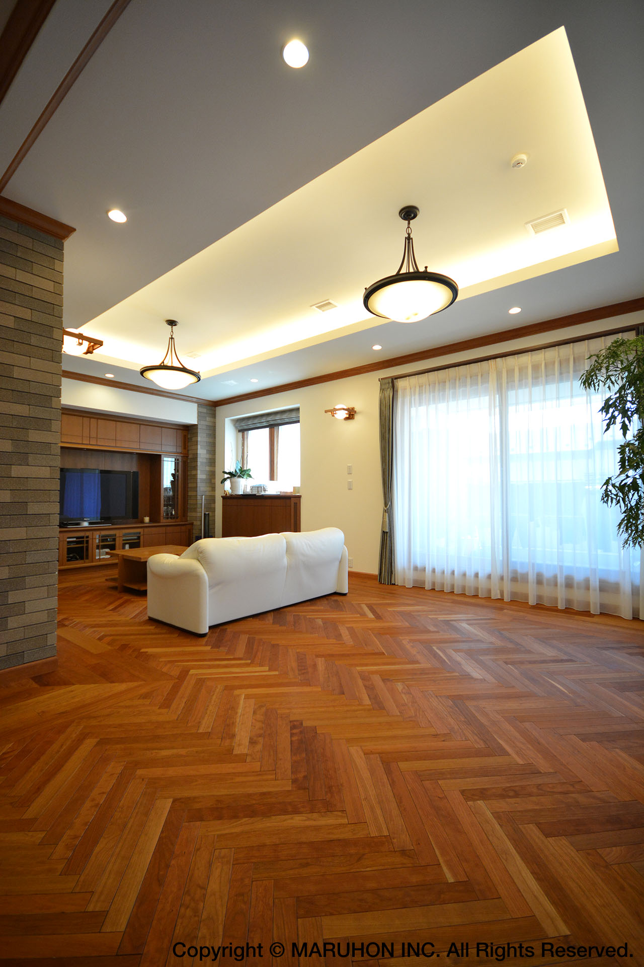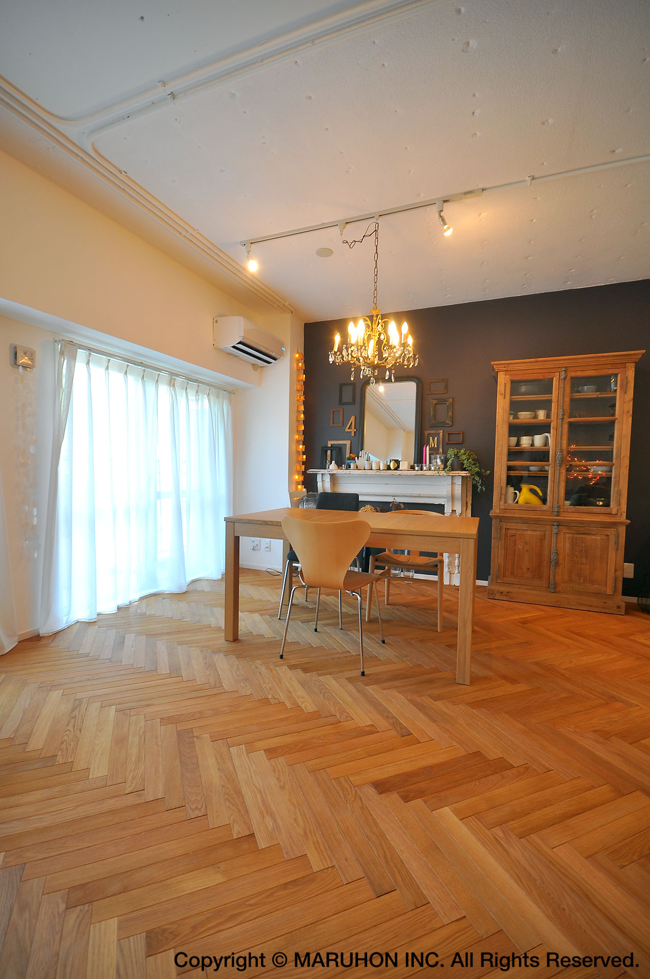 商品名ヨーロピアンオーク 床暖房対応 フレンチヘリンボーン 挽板フローリング 121.2mm巾 右用
