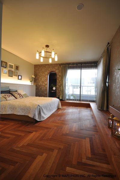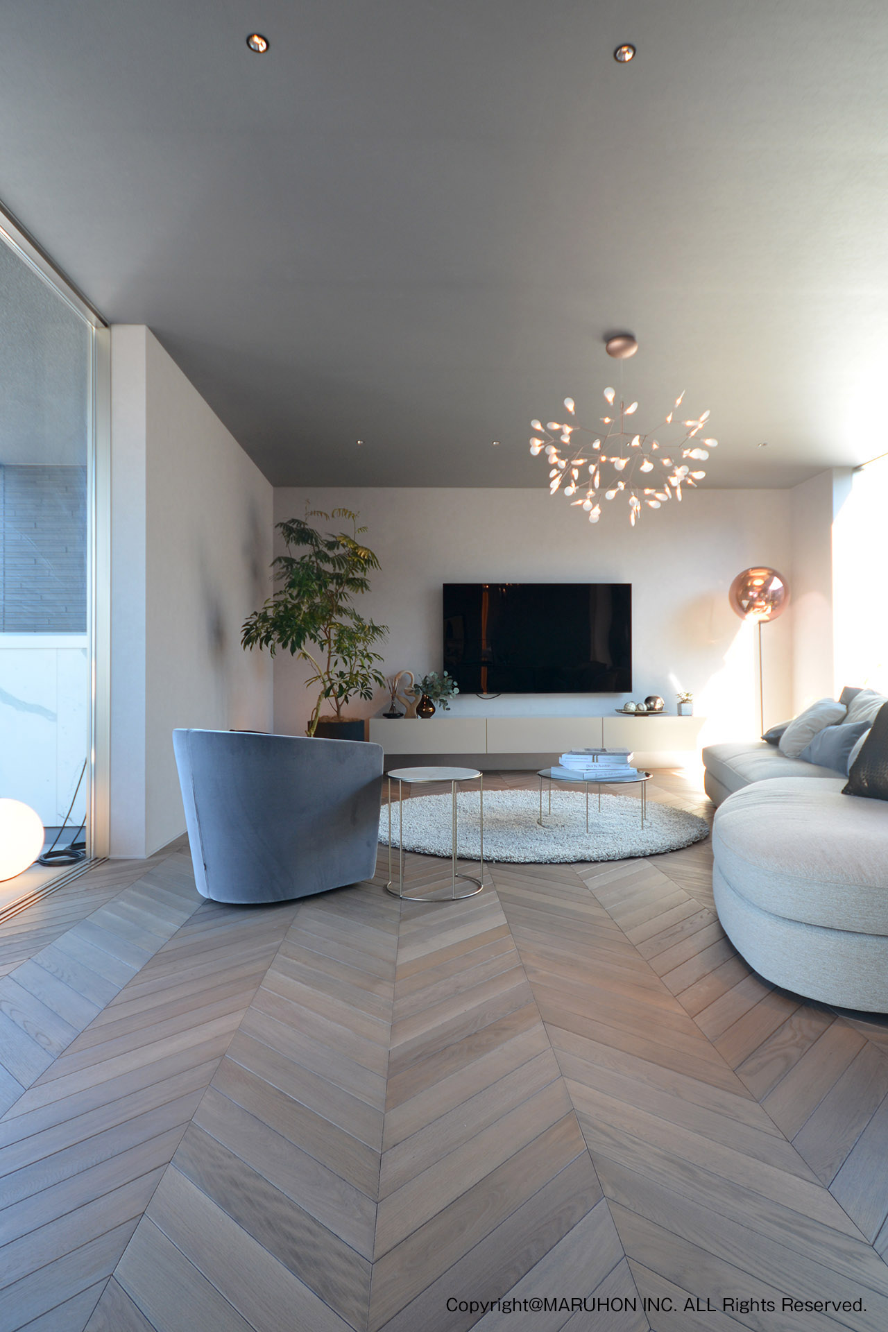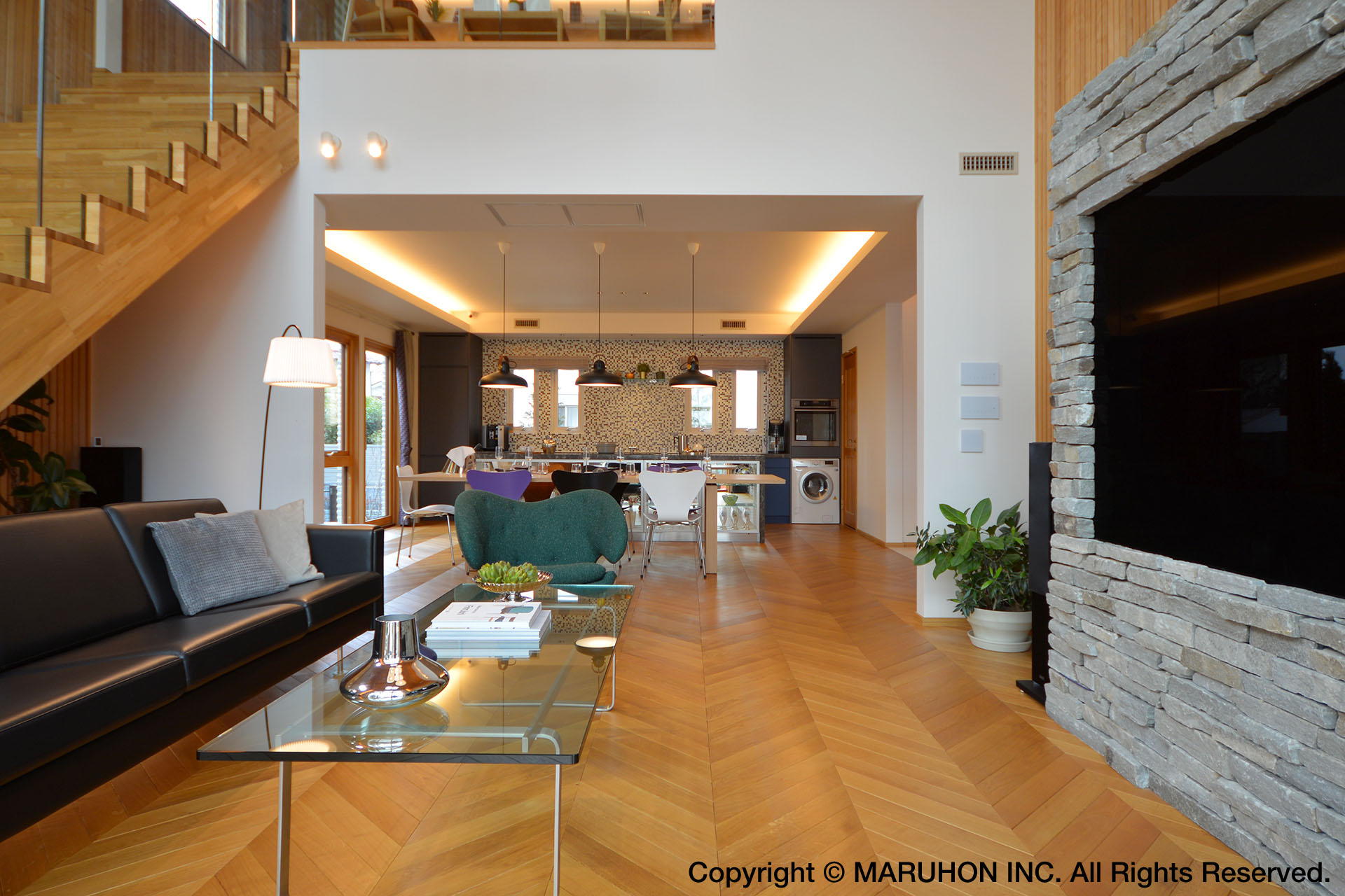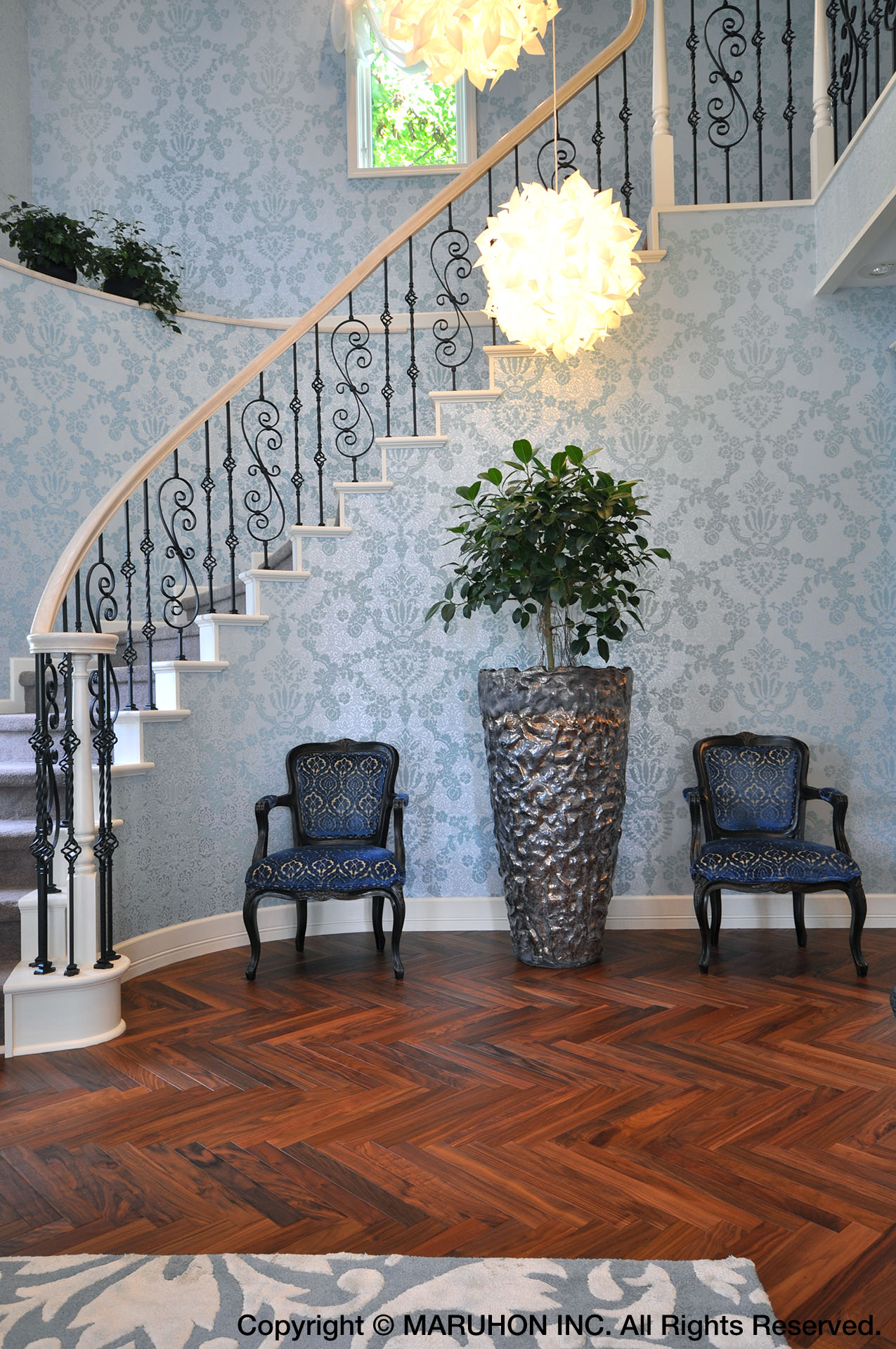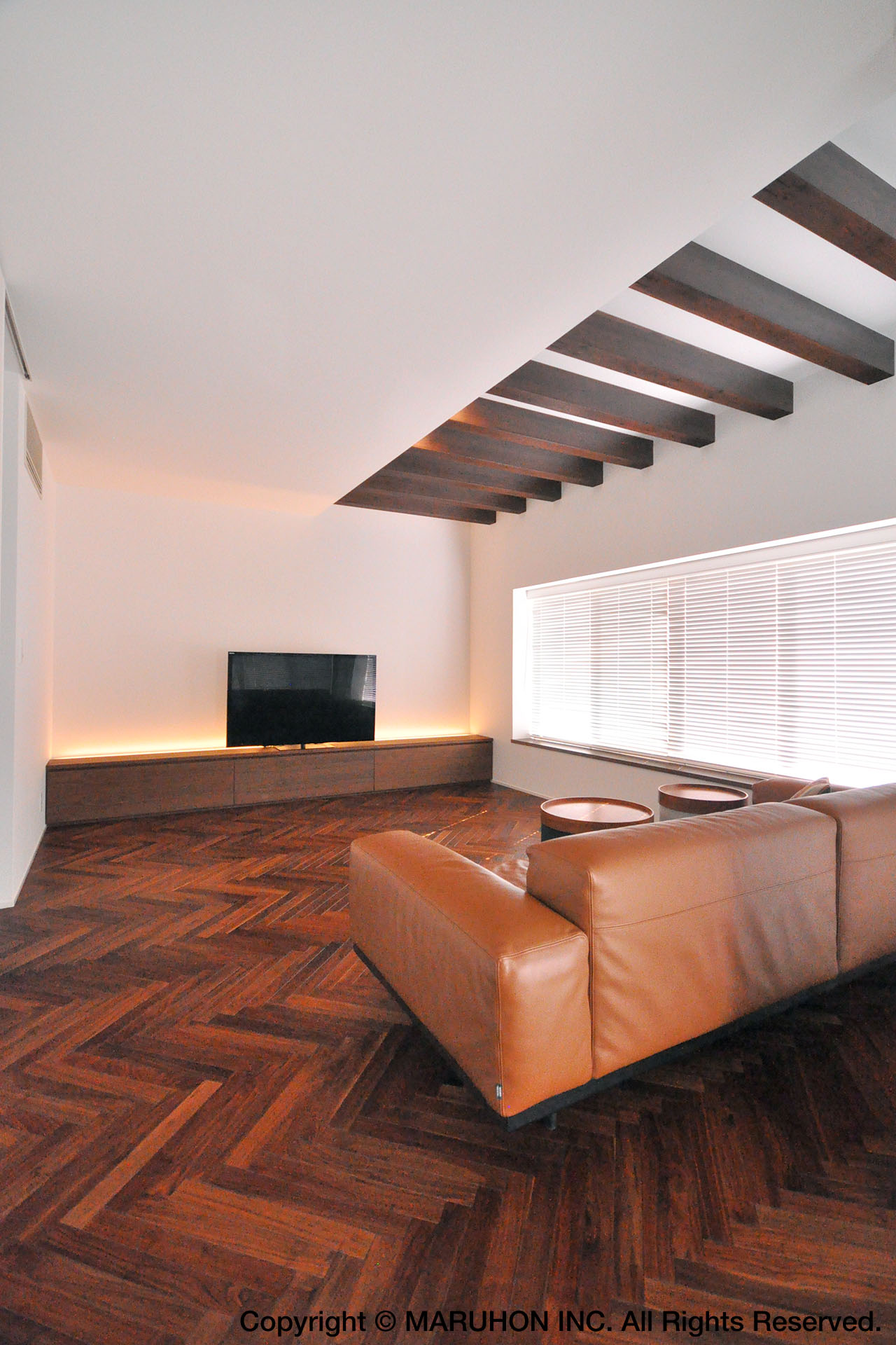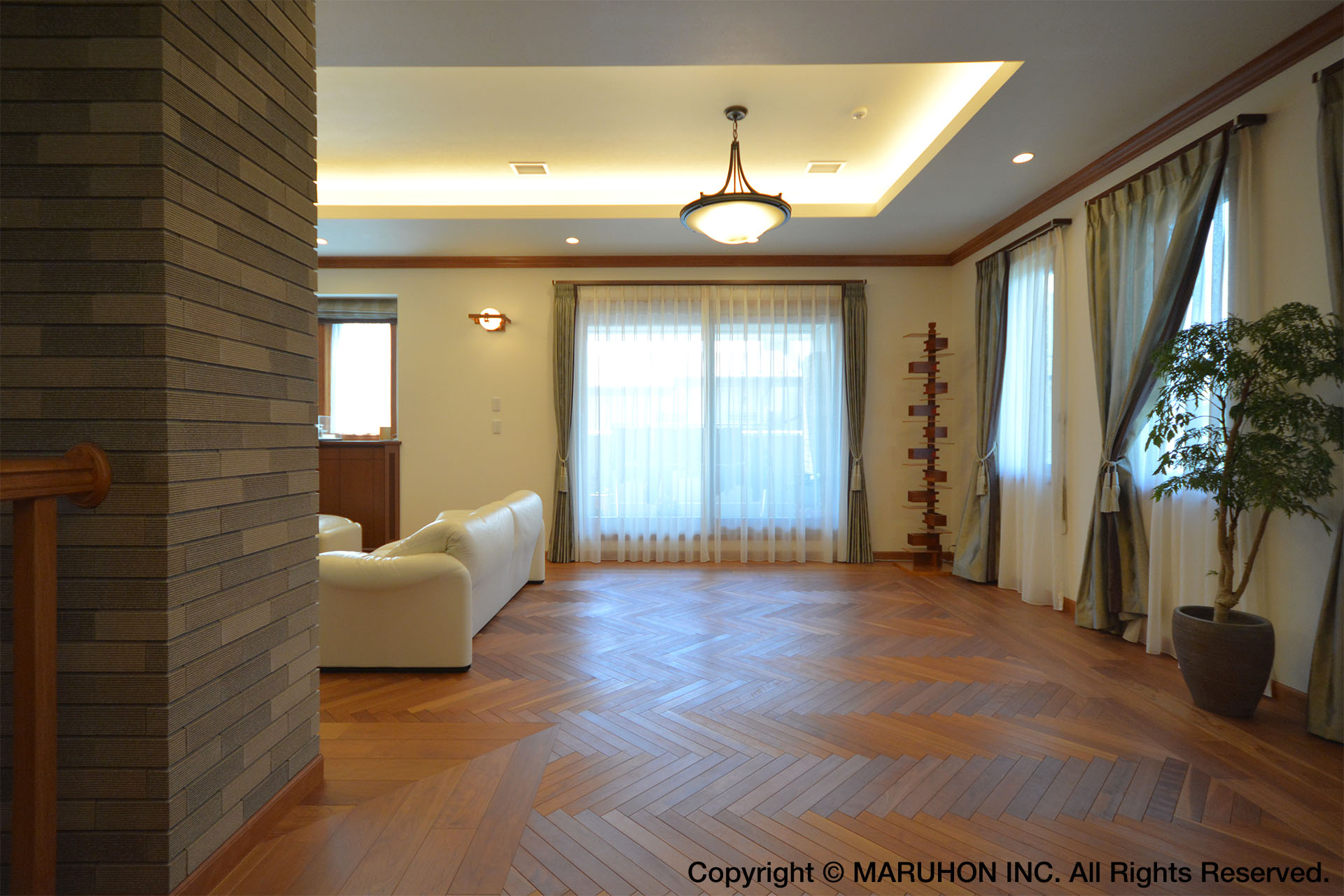 商品名ヨーロピアンオーク 床暖房対応 フレンチヘリンボーン 挽板フローリング 121.2mm巾 右用