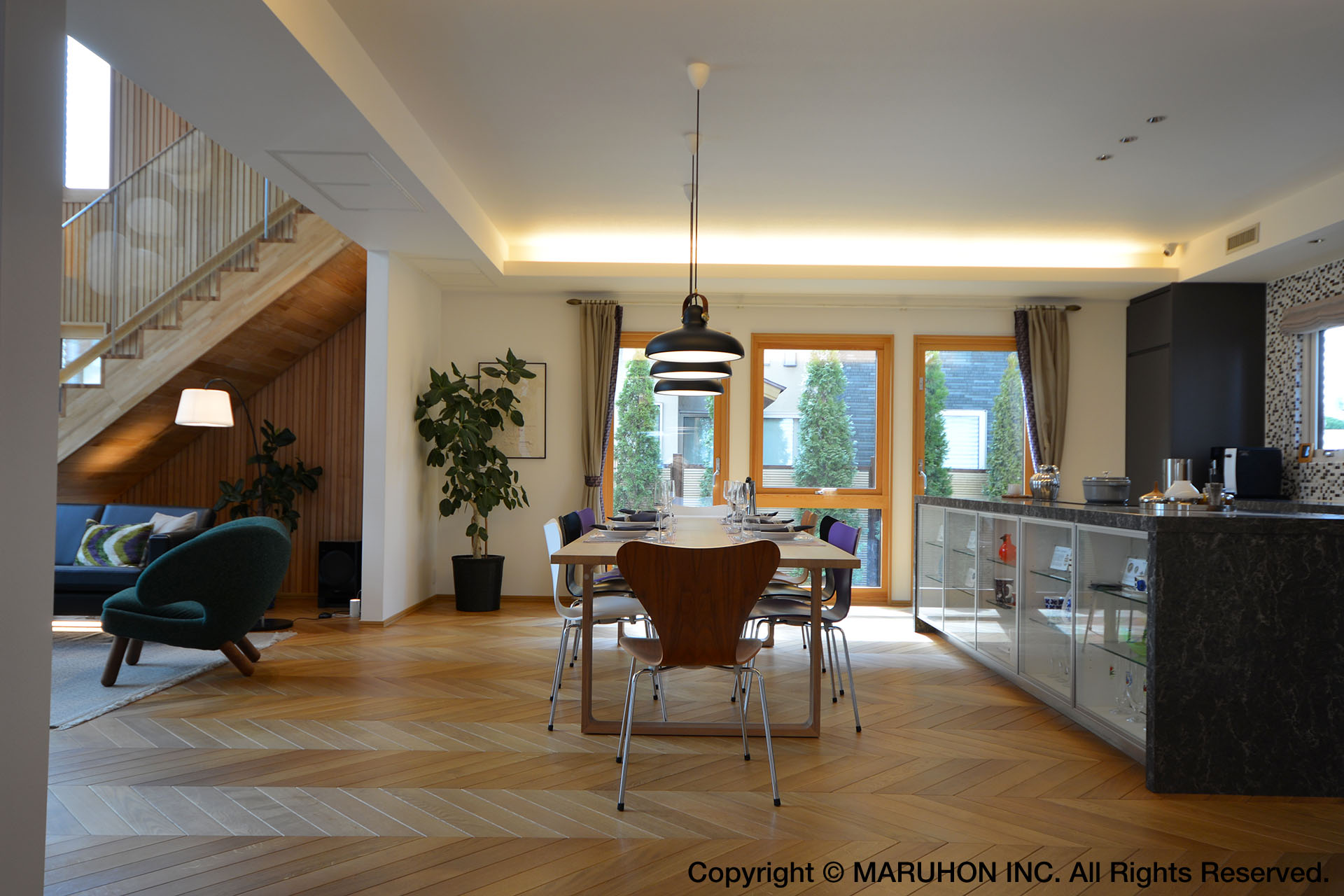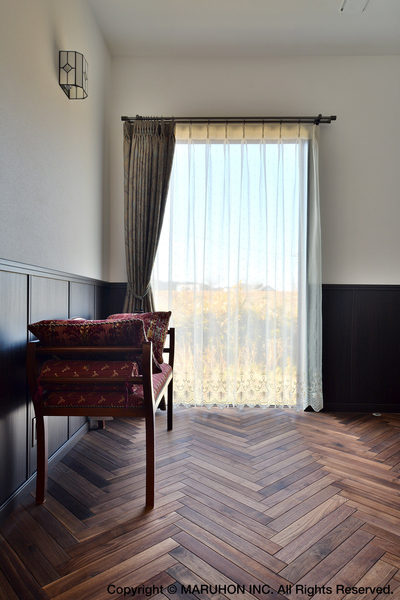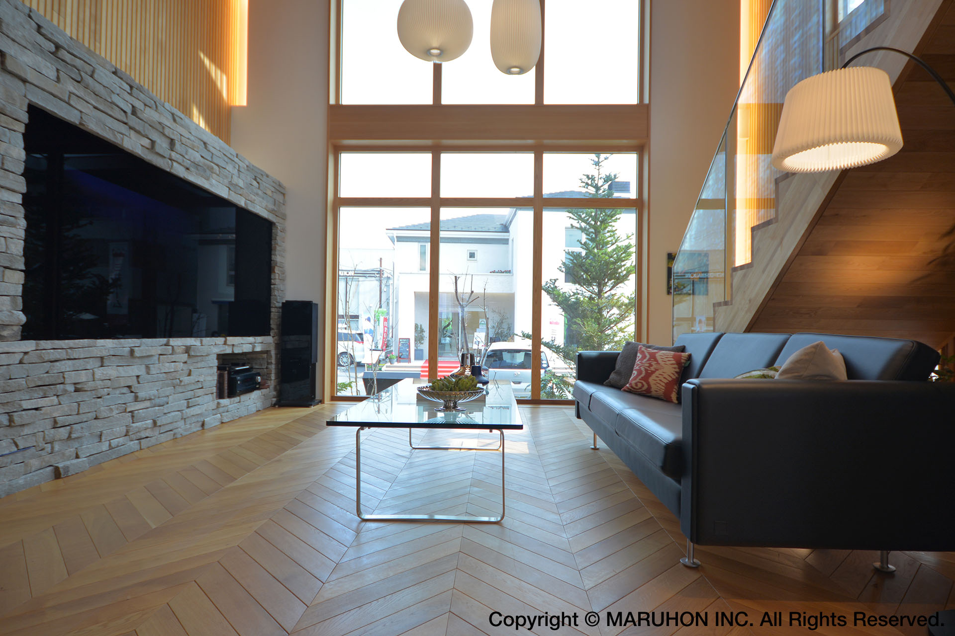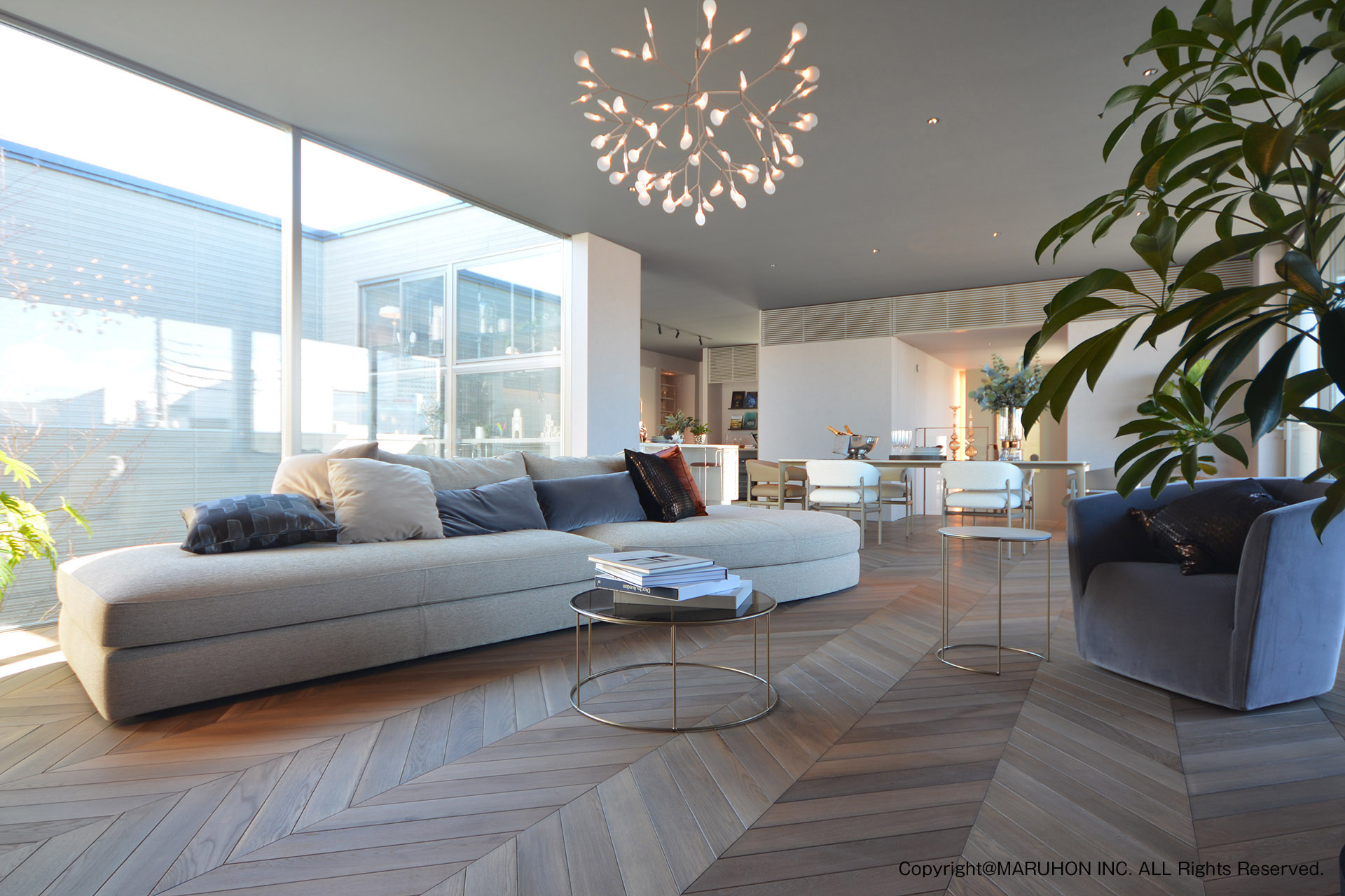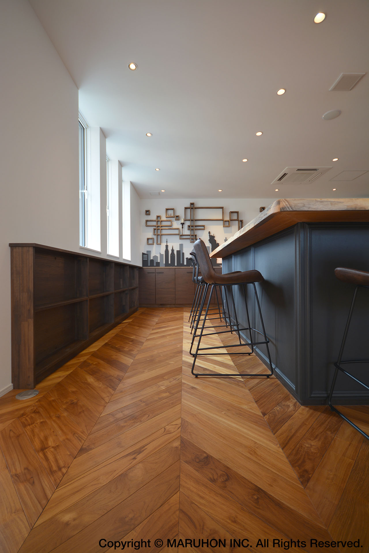 商品名ヨーロピアンオーク 床暖房対応 フレンチヘリンボーン 挽板フローリング 121.2mm巾 右用
