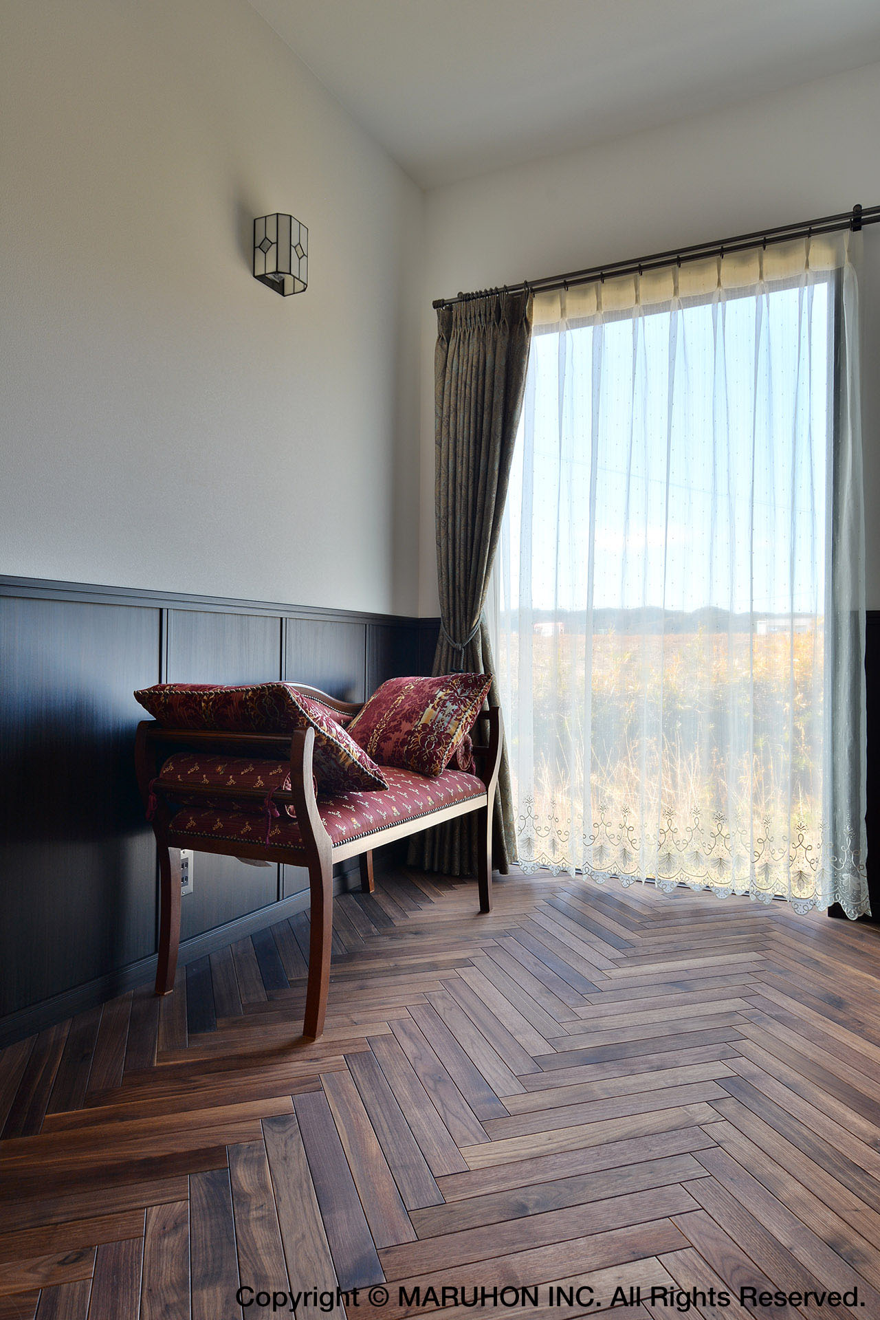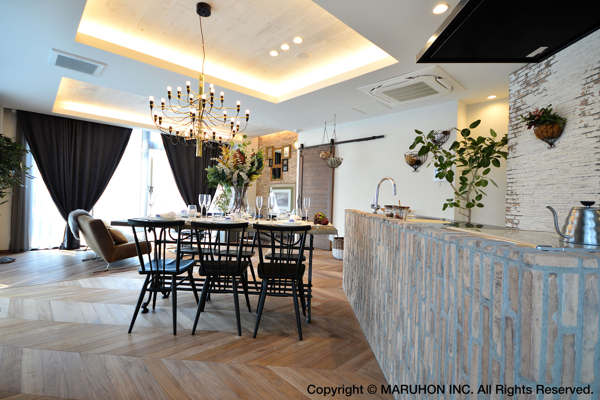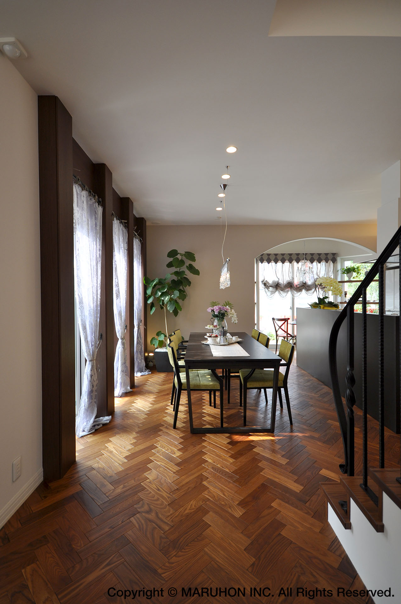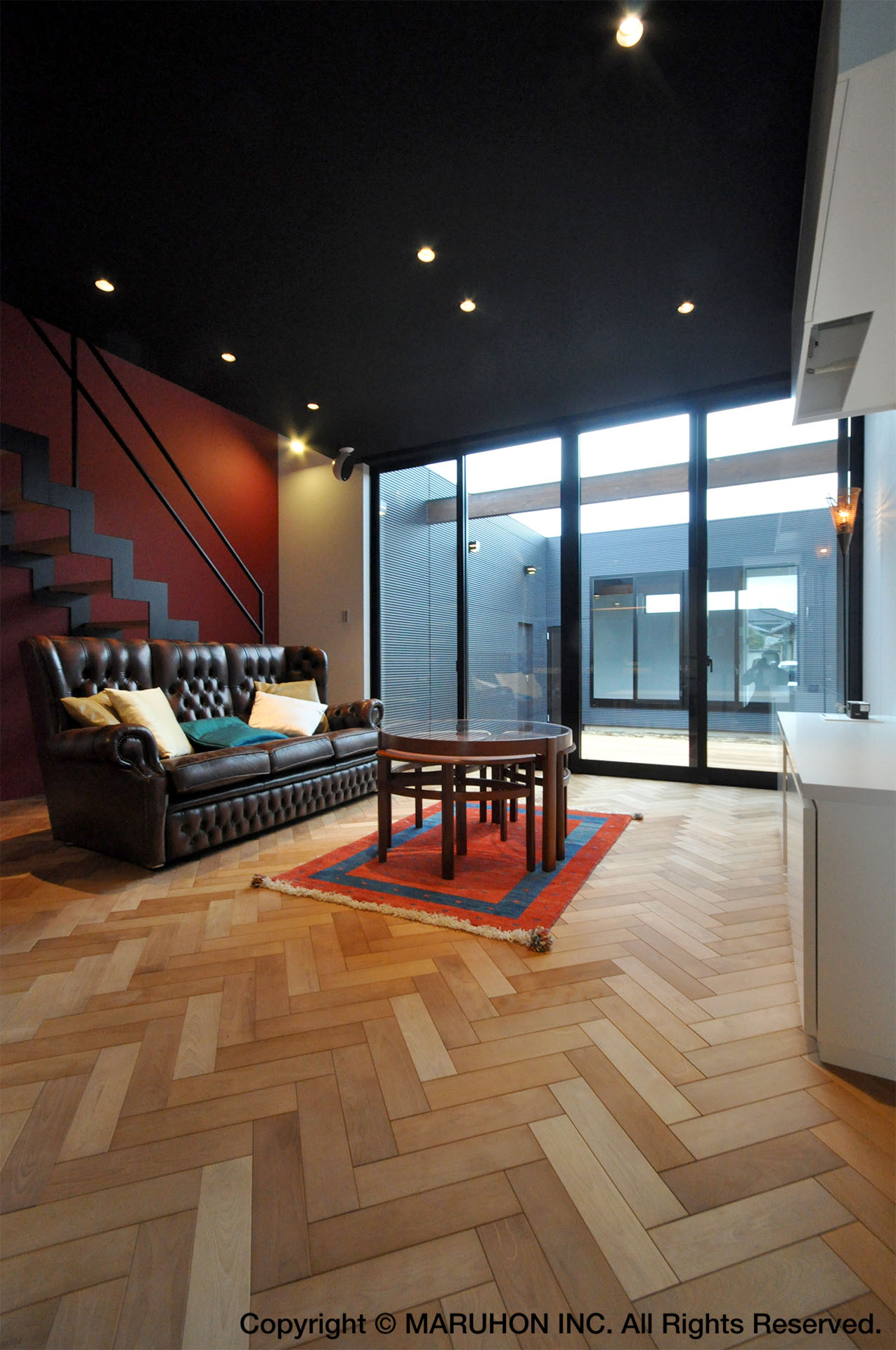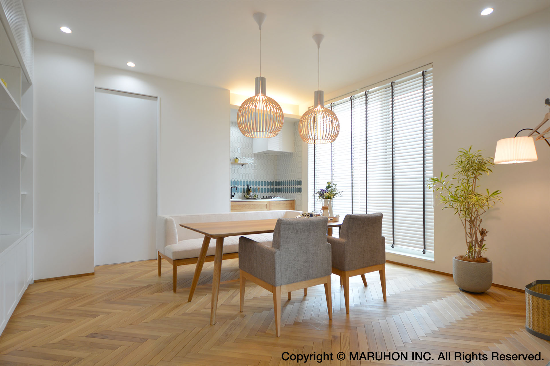 商品名ヨーロピアンオーク 床暖房対応 フレンチヘリンボーン 挽板フローリング 121.2mm巾 右用