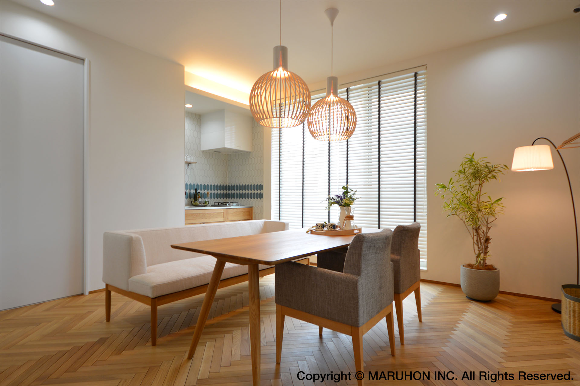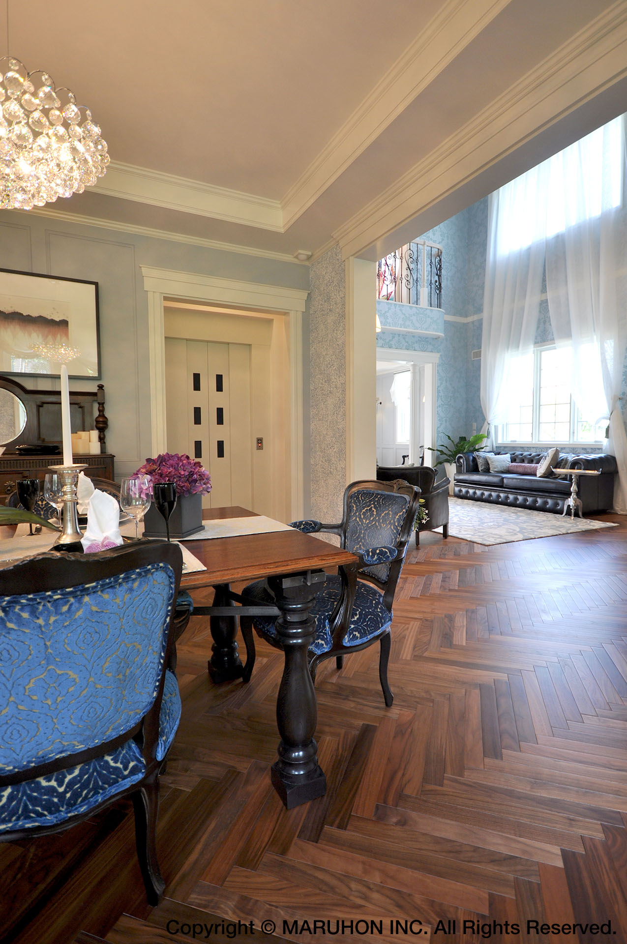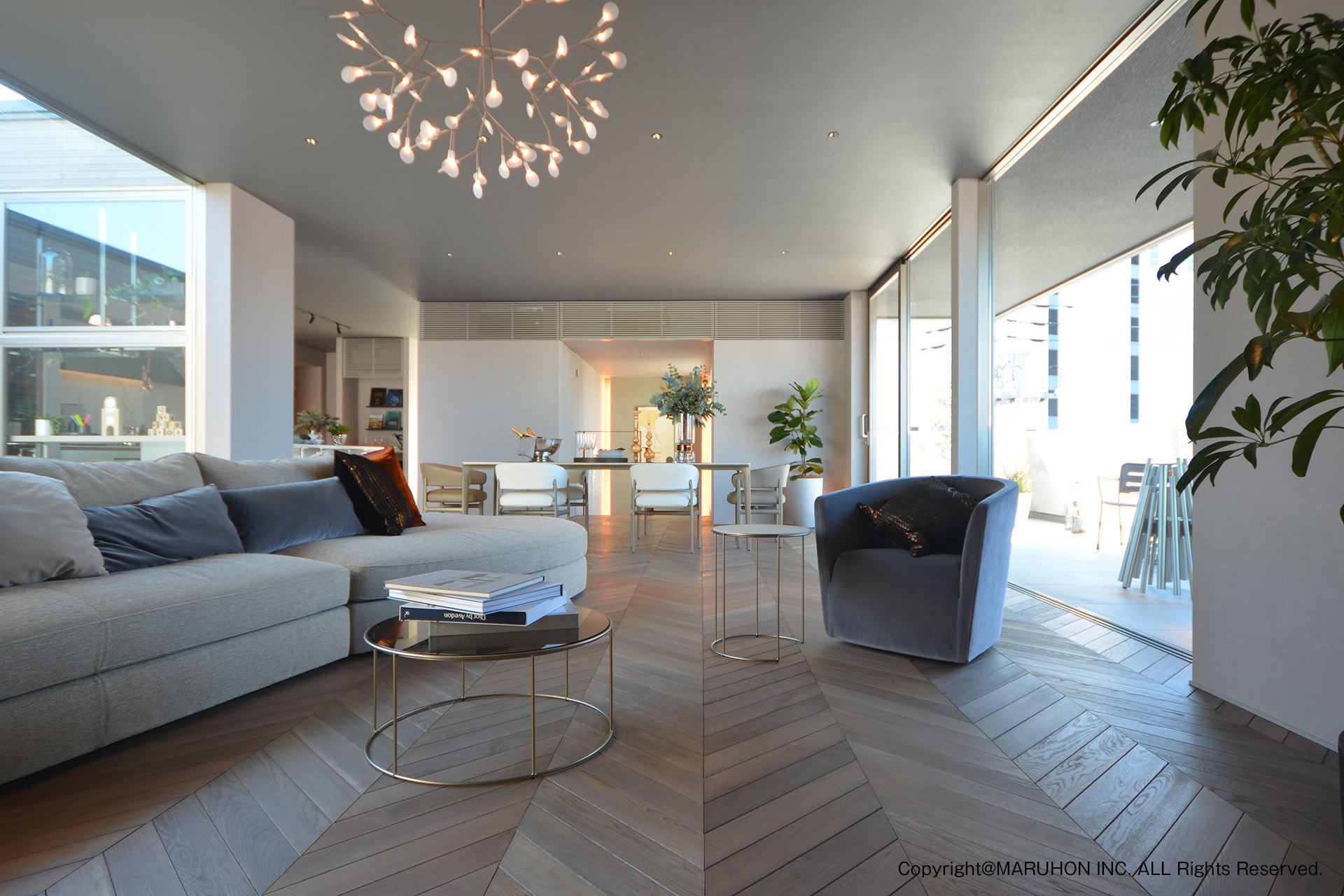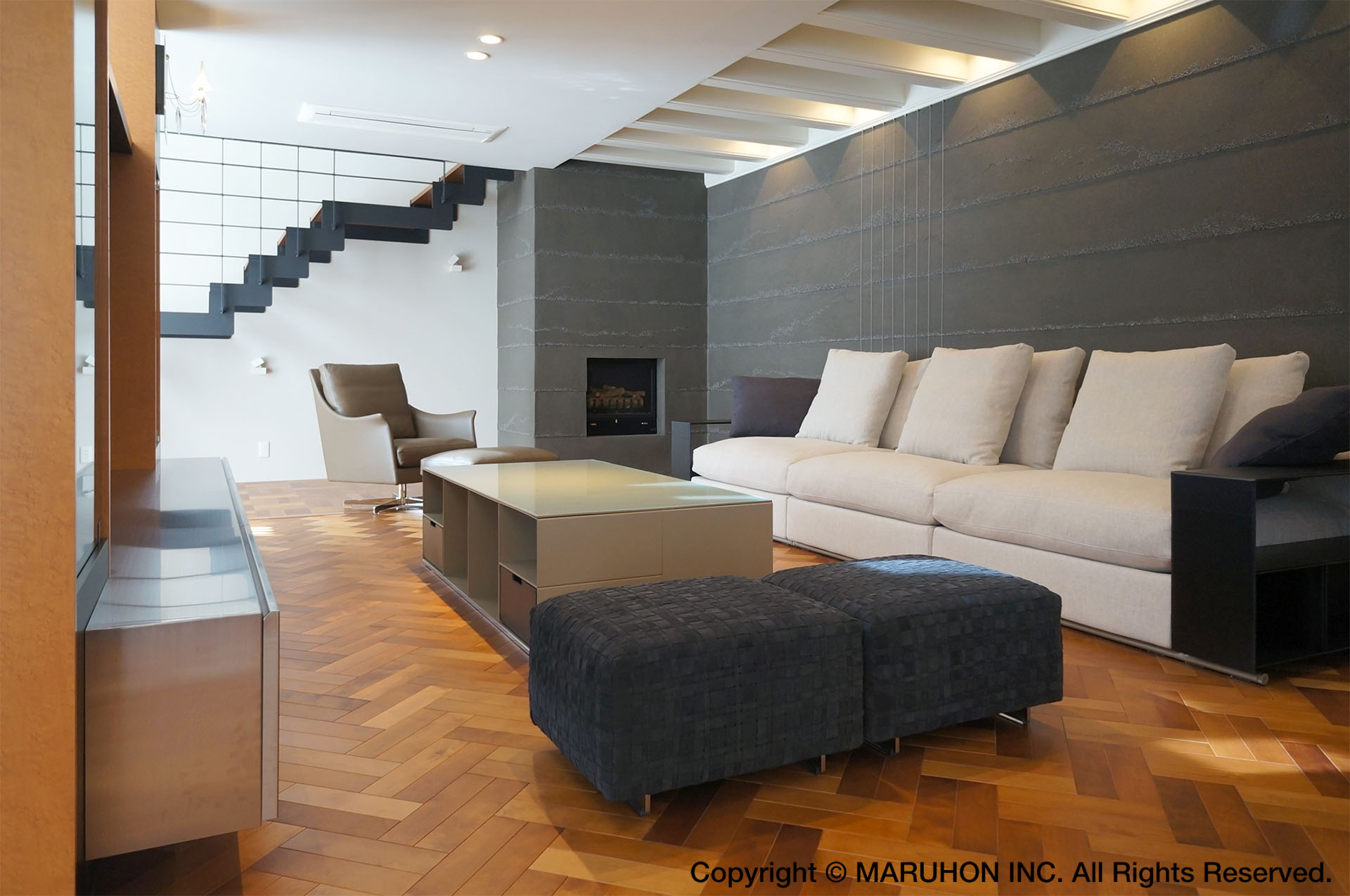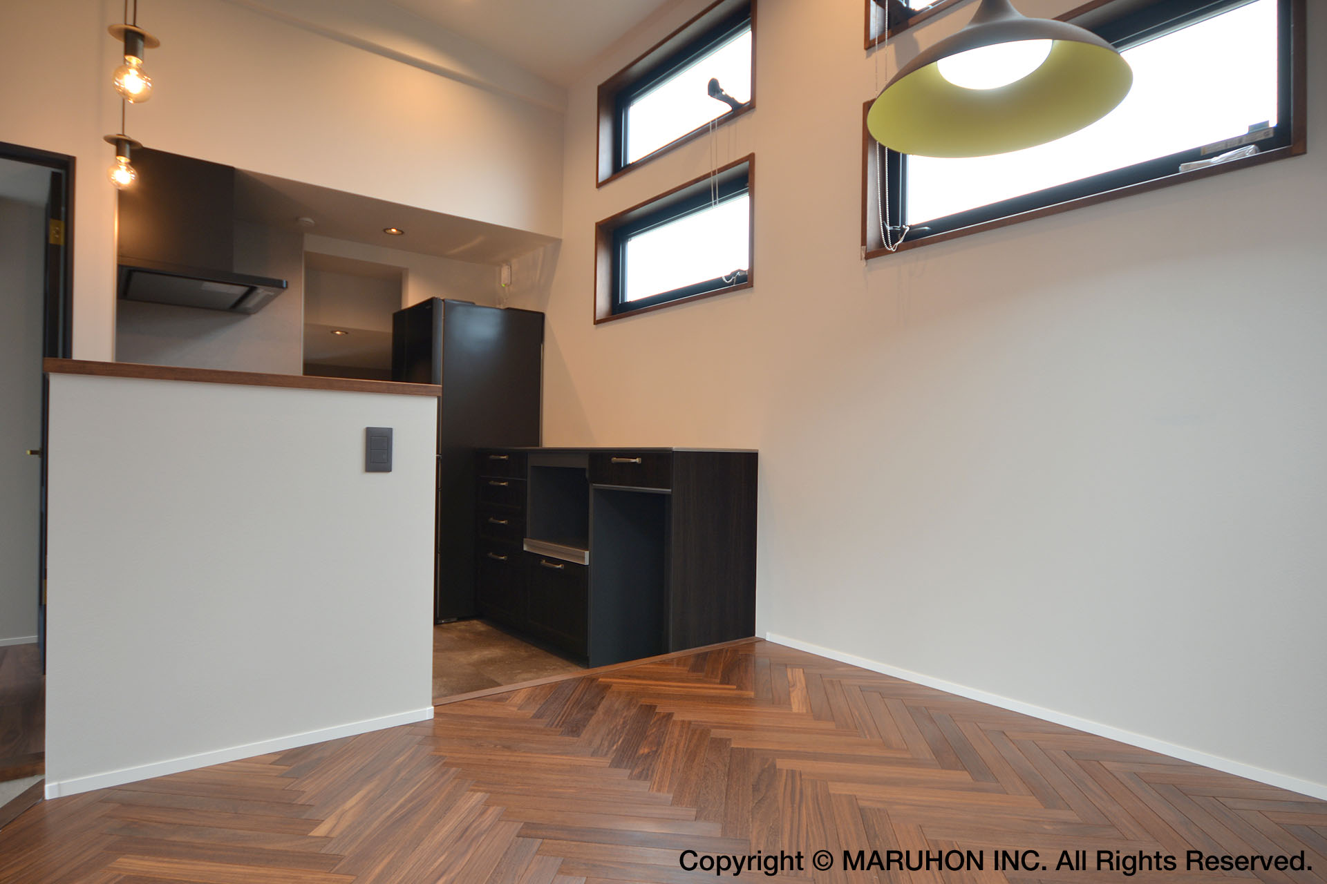 商品名ヨーロピアンオーク 床暖房対応 フレンチヘリンボーン 挽板フローリング 121.2mm巾 右用
