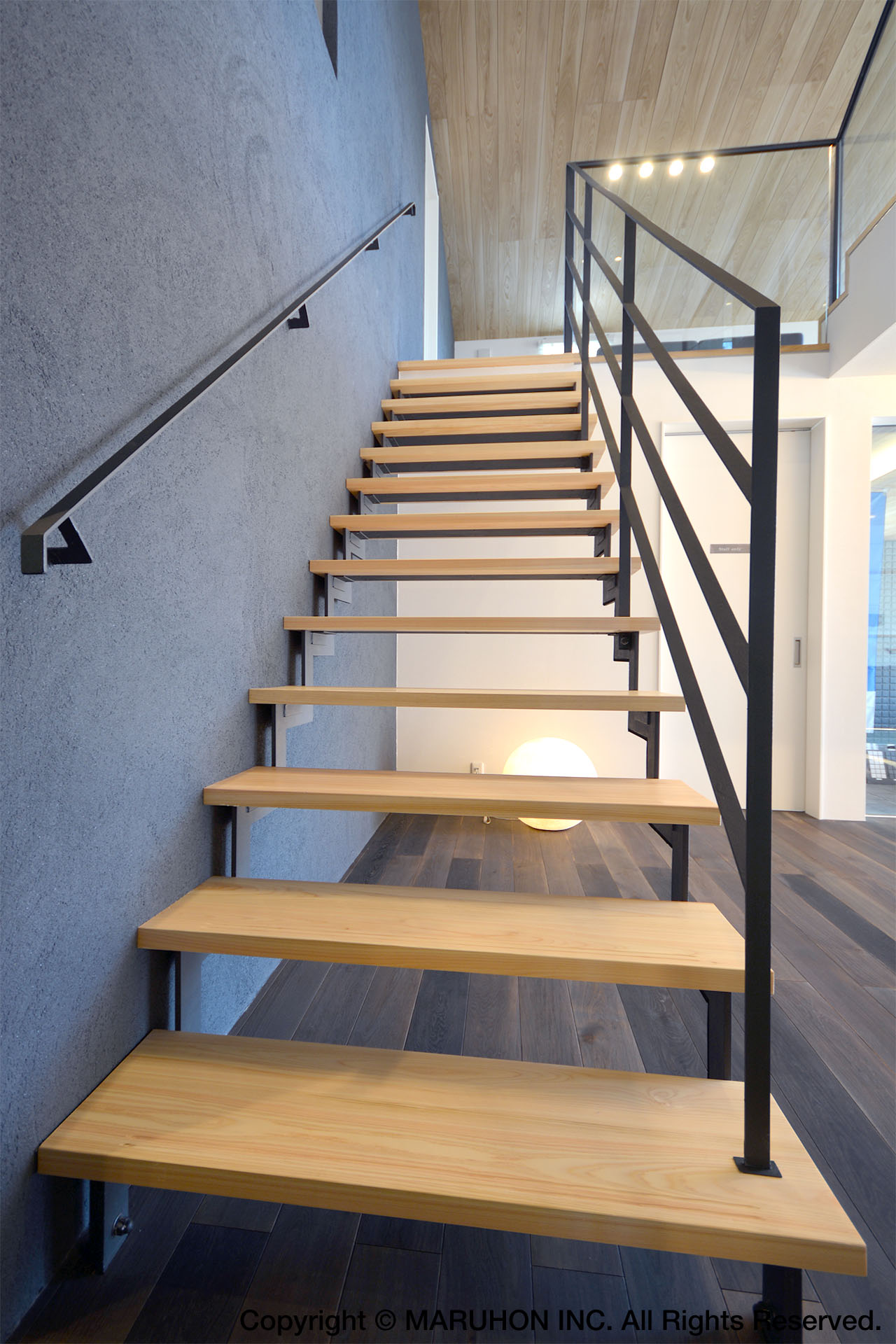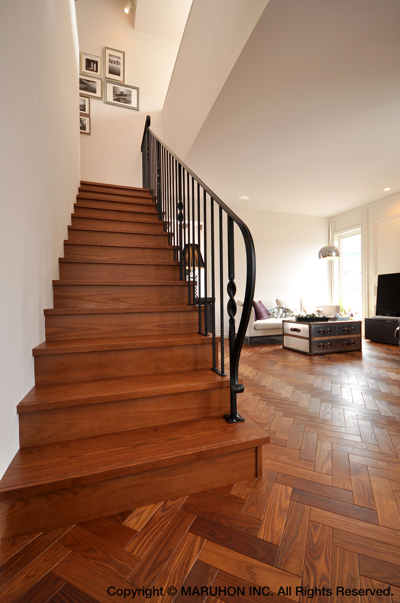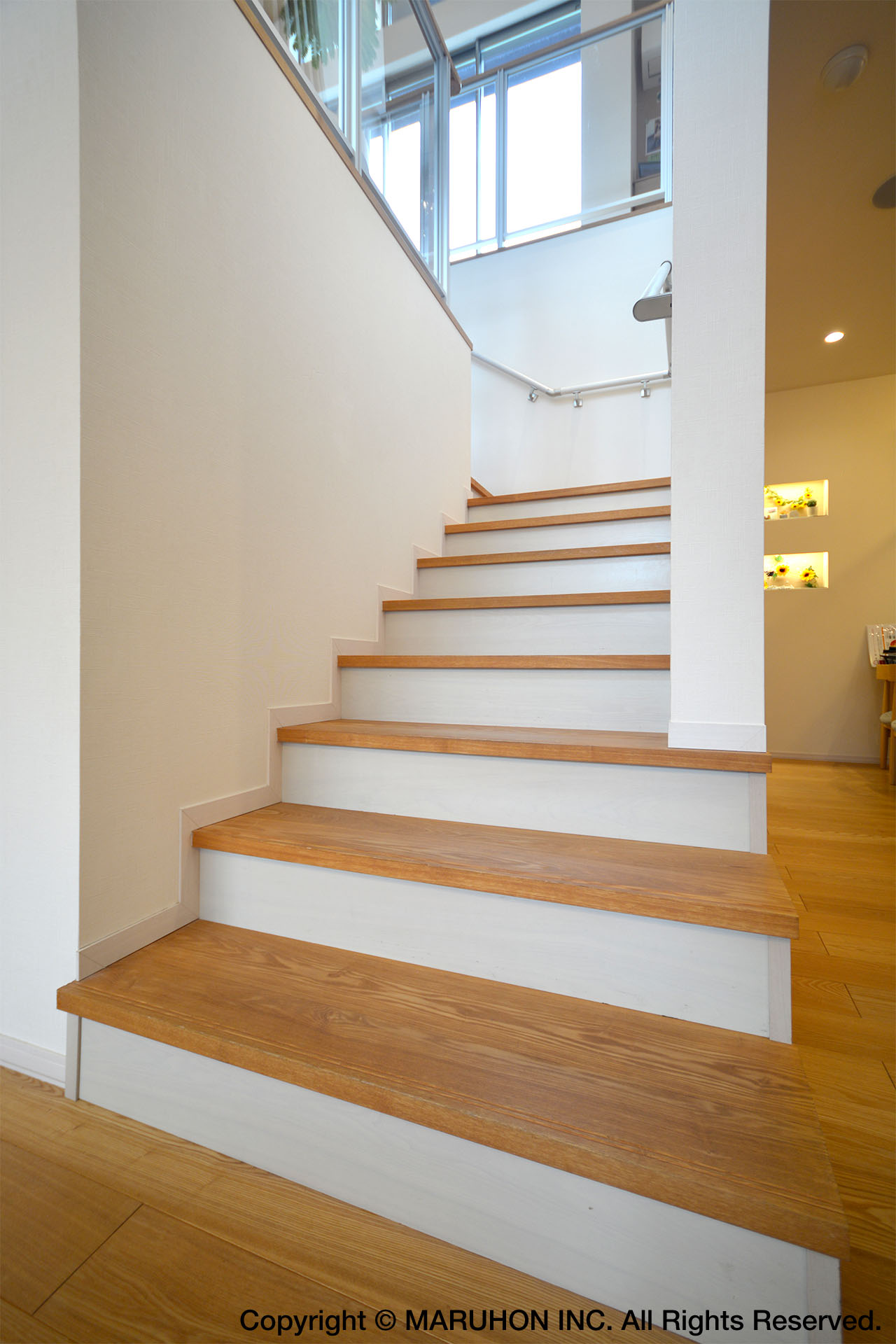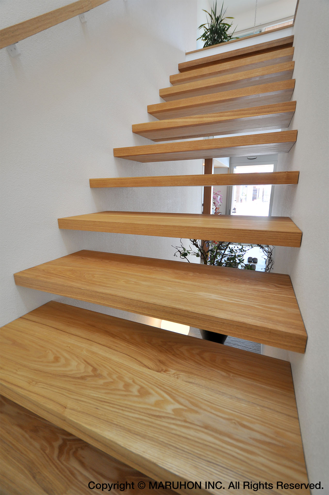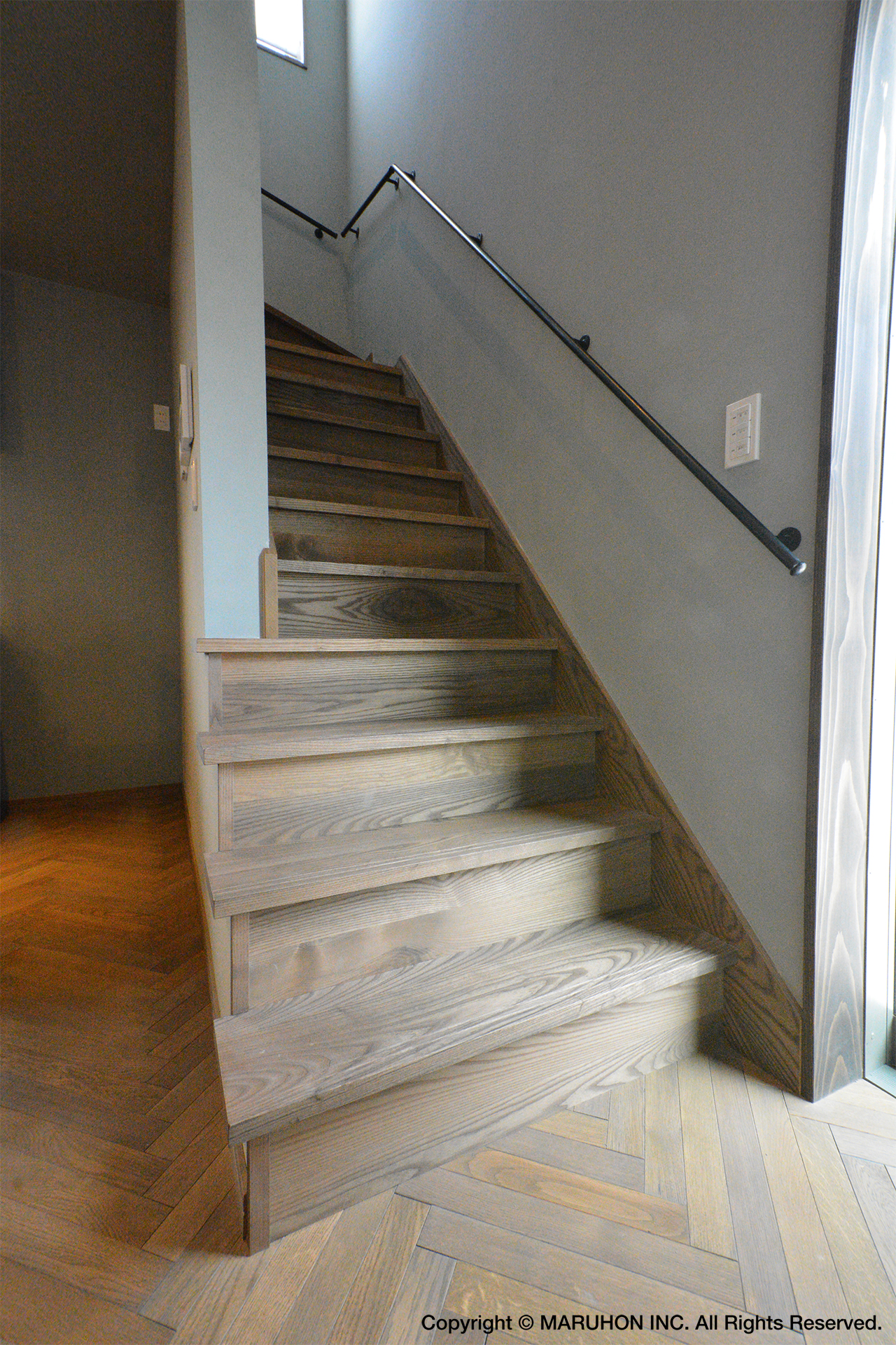 商品名ホワイトアッシュ 無垢階段材 ウレタン特注色