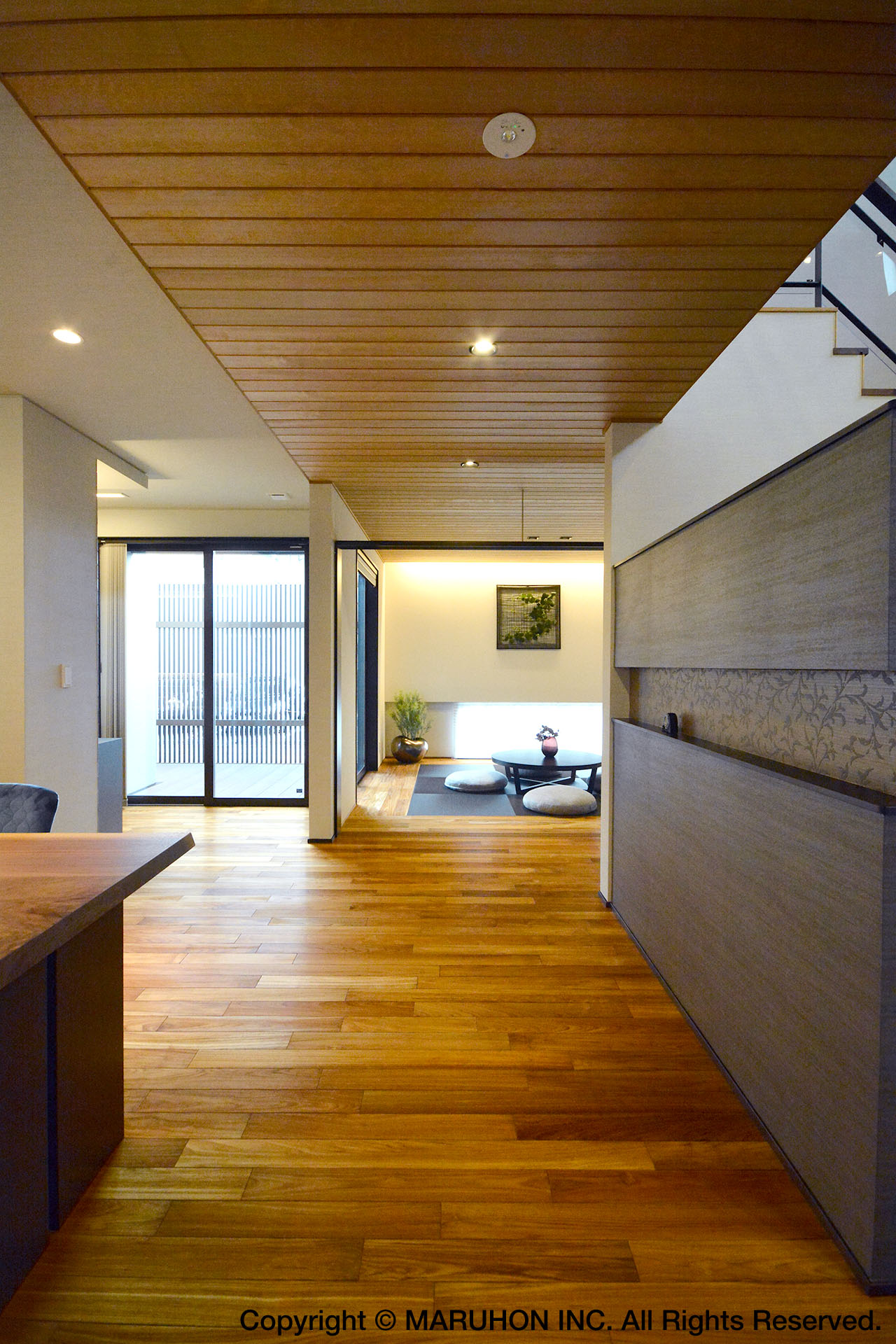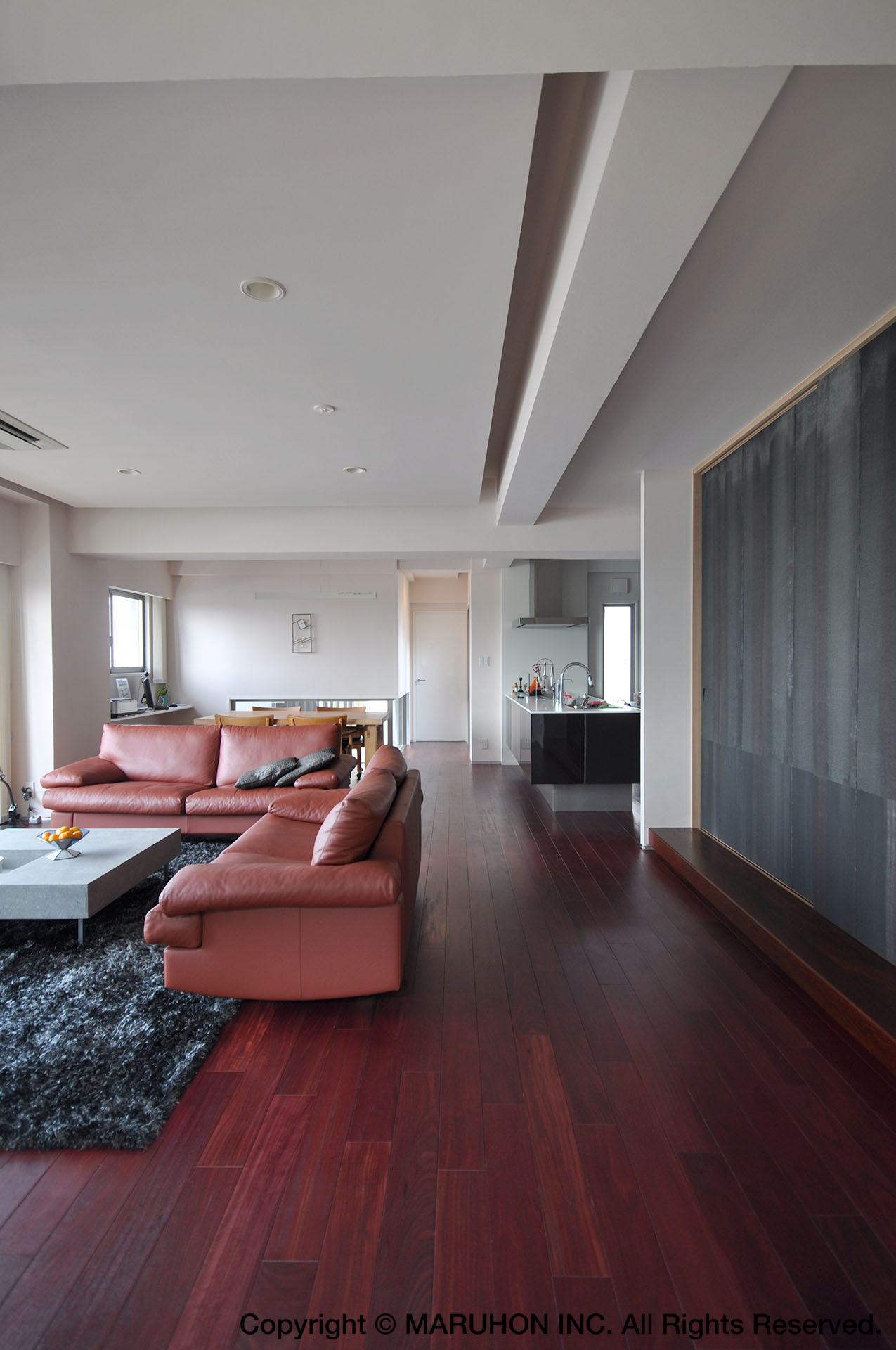 商品名タモ 床暖房対応 無垢フローリング 草木染GR730[シコン] 75mm巾 柾目