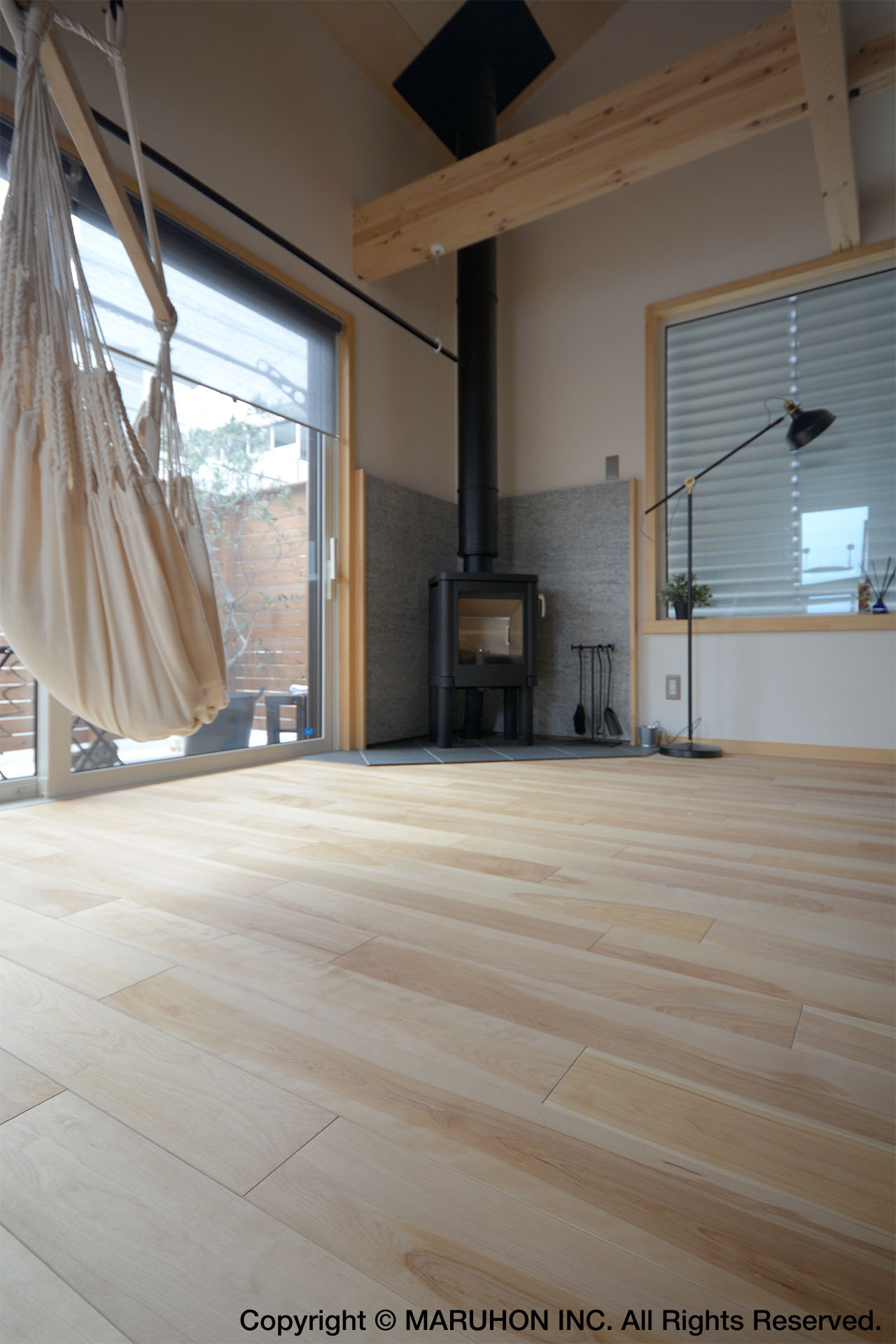 商品名バーチ 床暖房対応 無垢フローリング75mm巾 熱処理