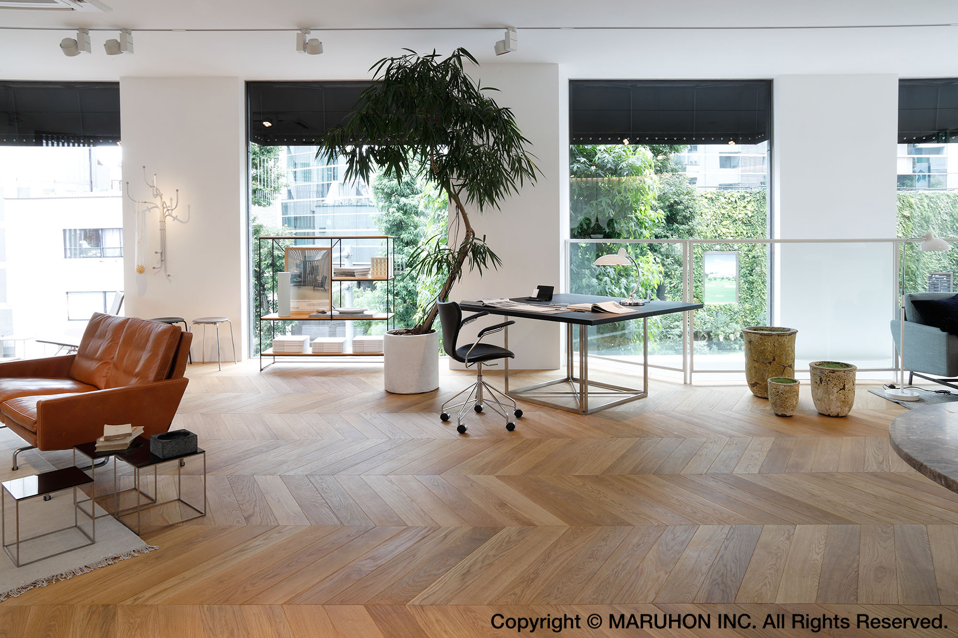 商品名ヨーロピアンオーク フレンチヘリンボーン 無垢フローリング 90mm巾 右用