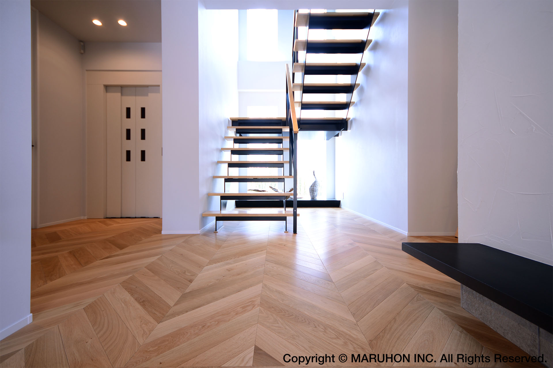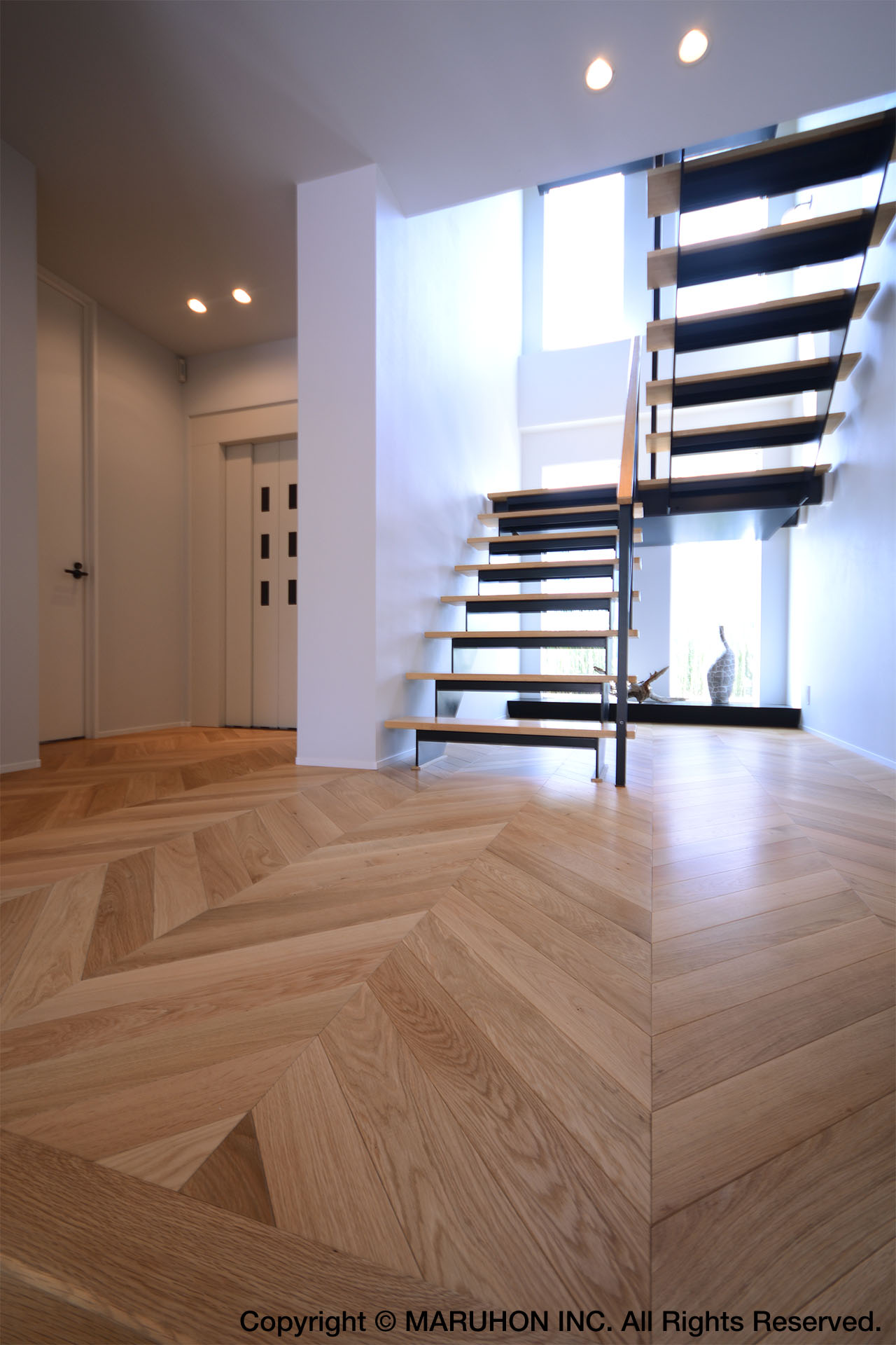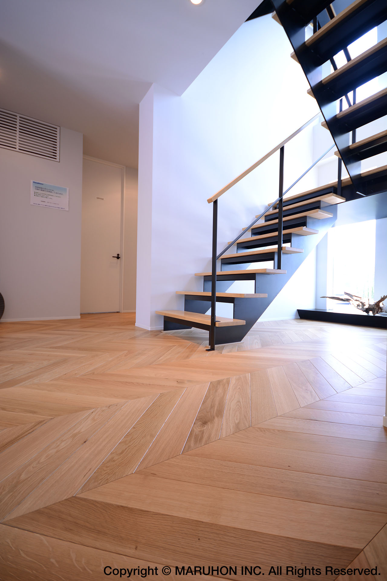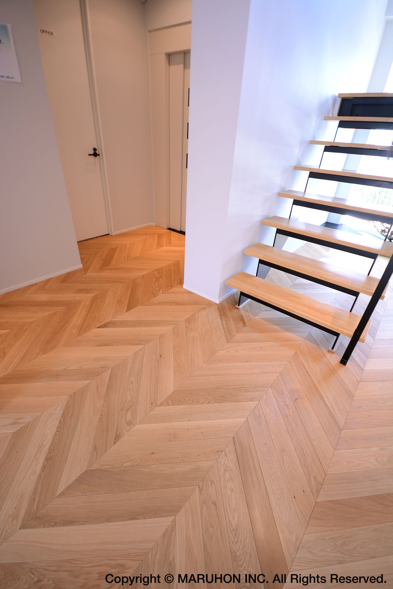 商品名ヨーロピアンオーク フレンチヘリンボーン 無垢フローリング 90mm巾 左用