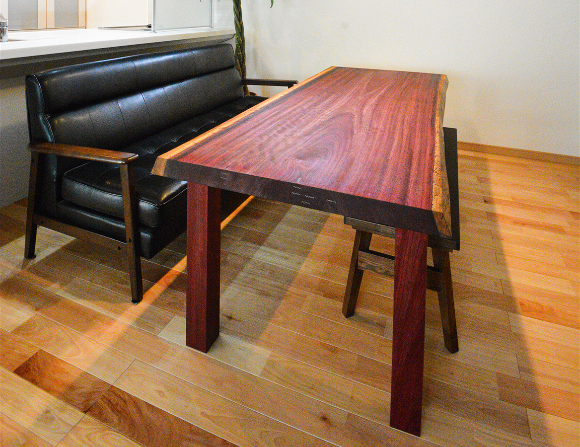 名前の通り紫色をした、珍しく個性的なパープルハート(学名:Peltogyne spp.)。別名バイオレッドウッドとも呼ばれています。日本ではなじみが薄い樹種ですが、アメリカやヨーロッパでは家具や工芸品などに広く使用されてきました。「天然の紫色をした木材」は非常にインパクトが強く、ユニークな樹種であるといえます。そうしたパープルハートは、どのような使い方が出来るのかご紹介していきます。